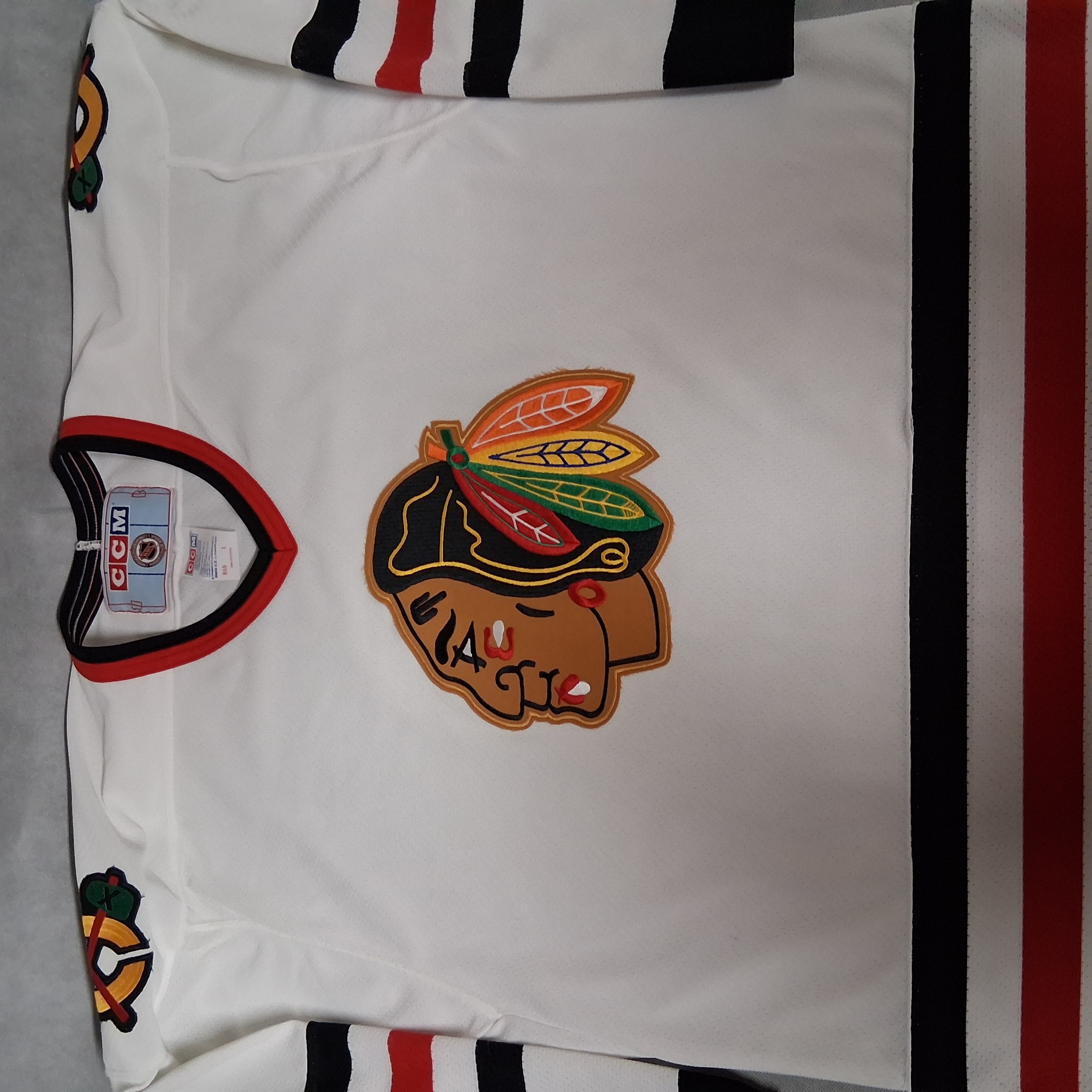 1980's CCM Chicago Blackhawks Hockey Jersey Men's Large White Stitched CCM Logo