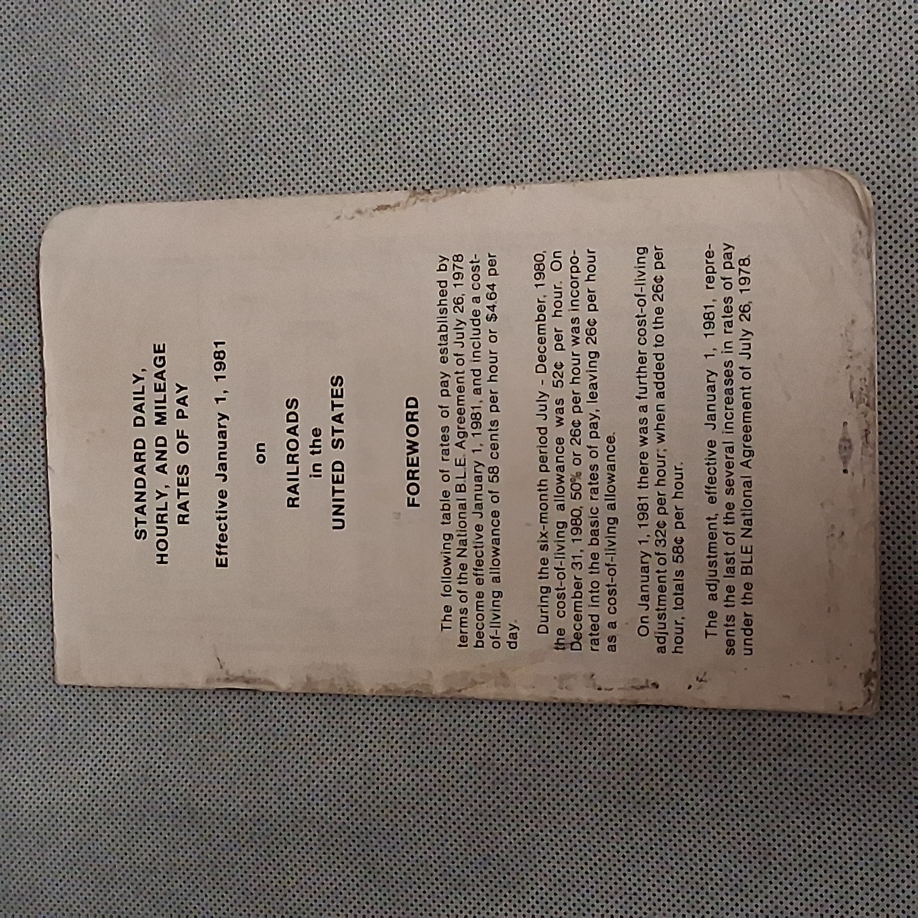 1981 Standard Daily Hourly Daily Mileage Rates of Pay Railroads United States