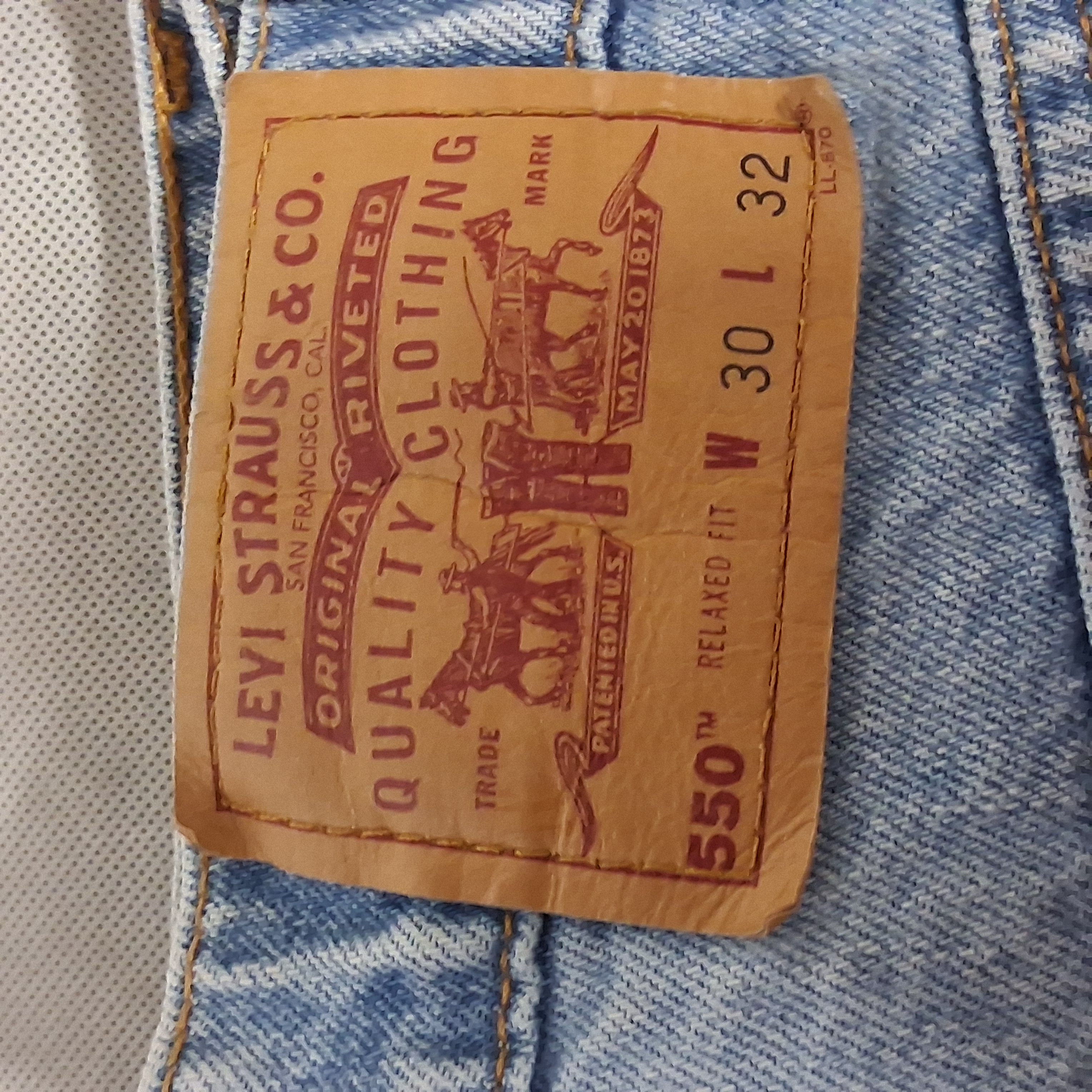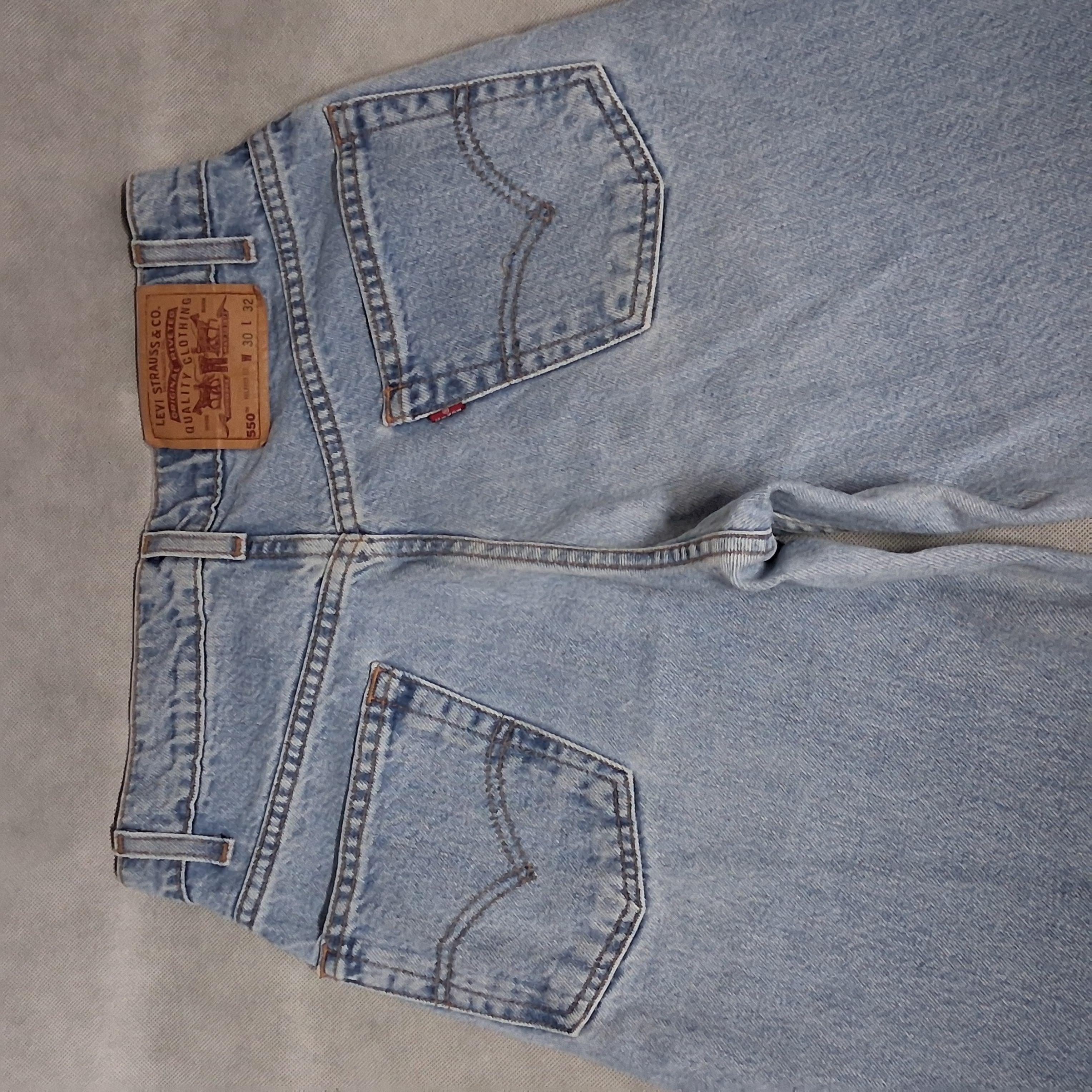 1990's Levi's 550 Blue Jeans Men's 30x32 Relaxed Fit Light Washed Faint Spotting