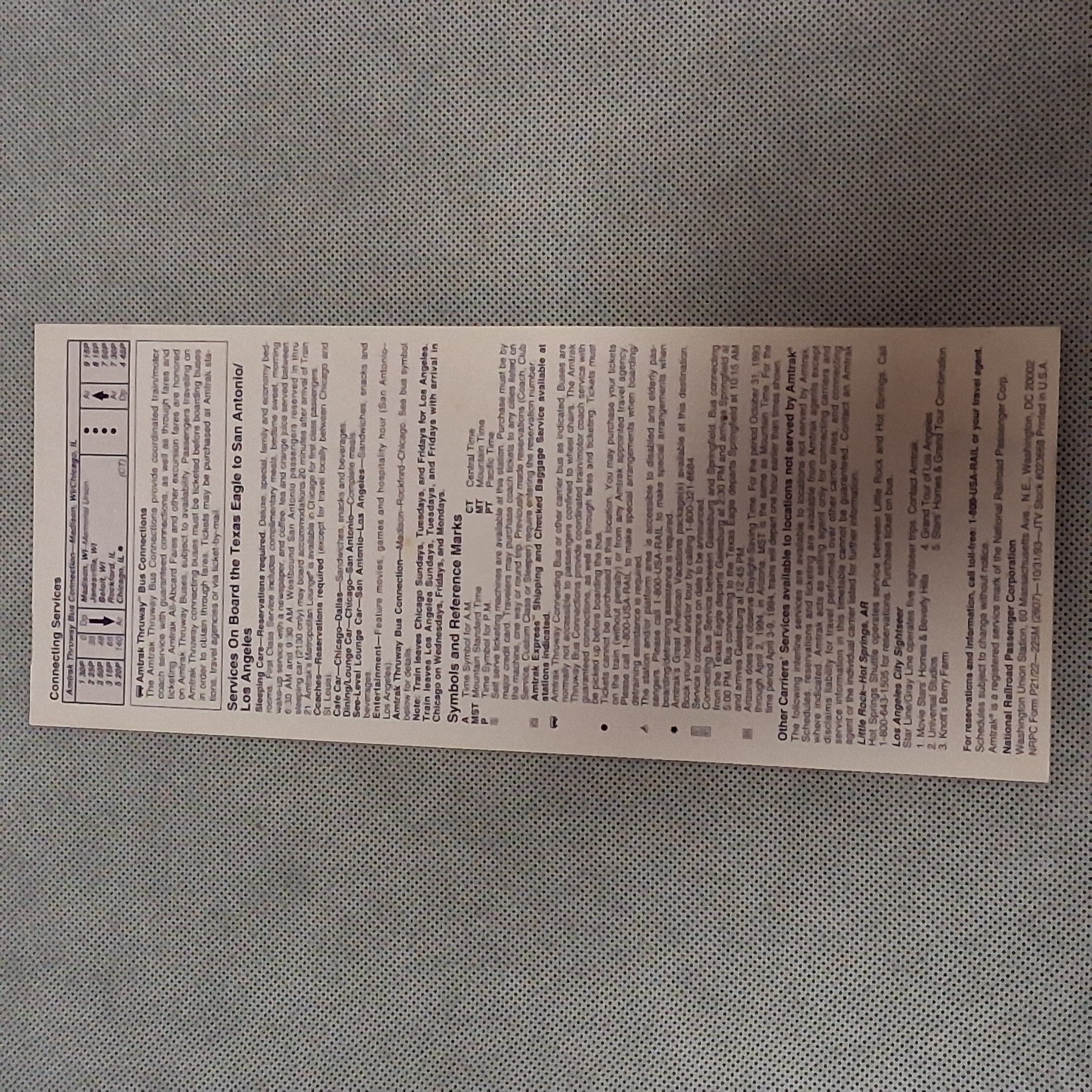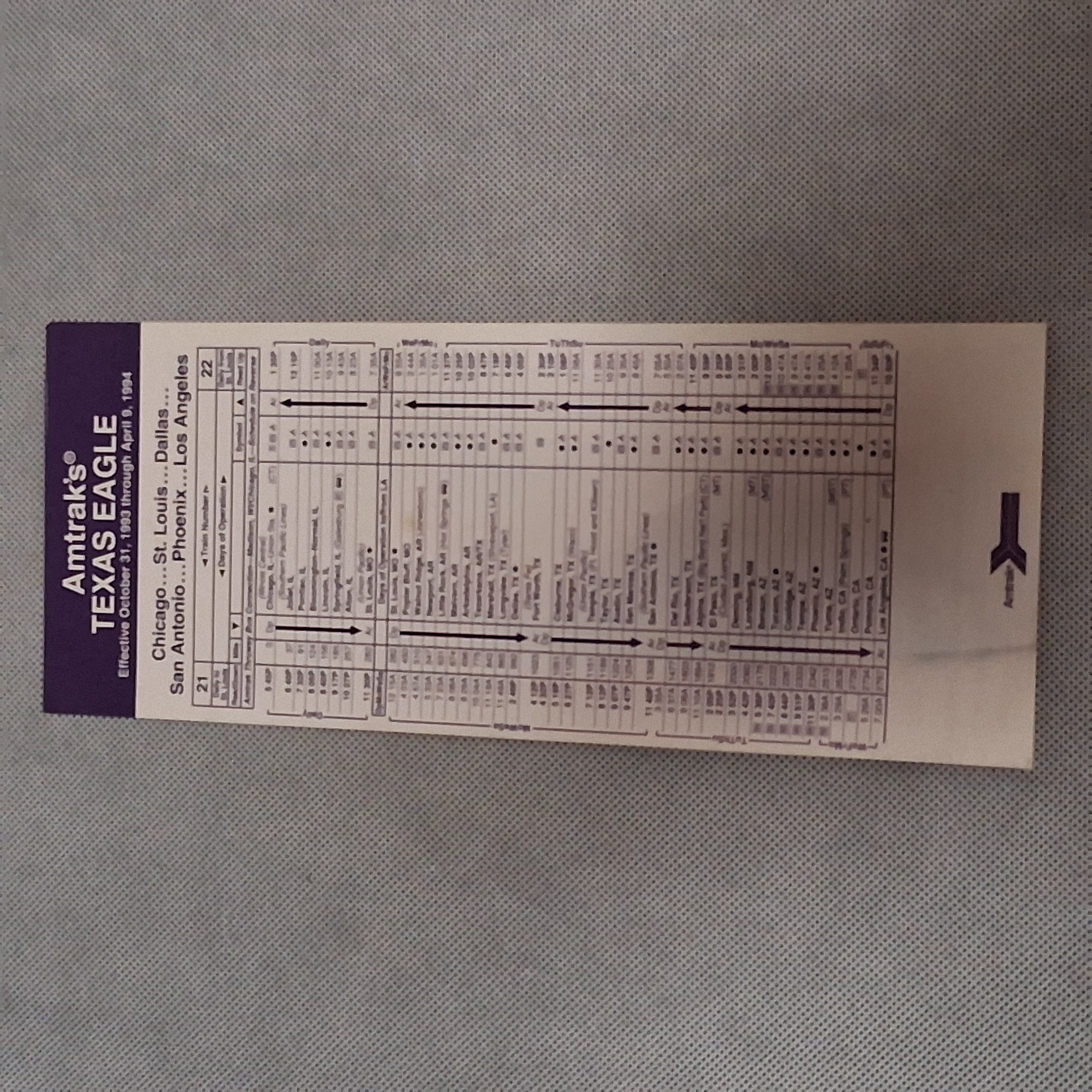 1993 Amtrak Texas Eagle Timetable Card Chicago Dallas San Antonio Los Angeles