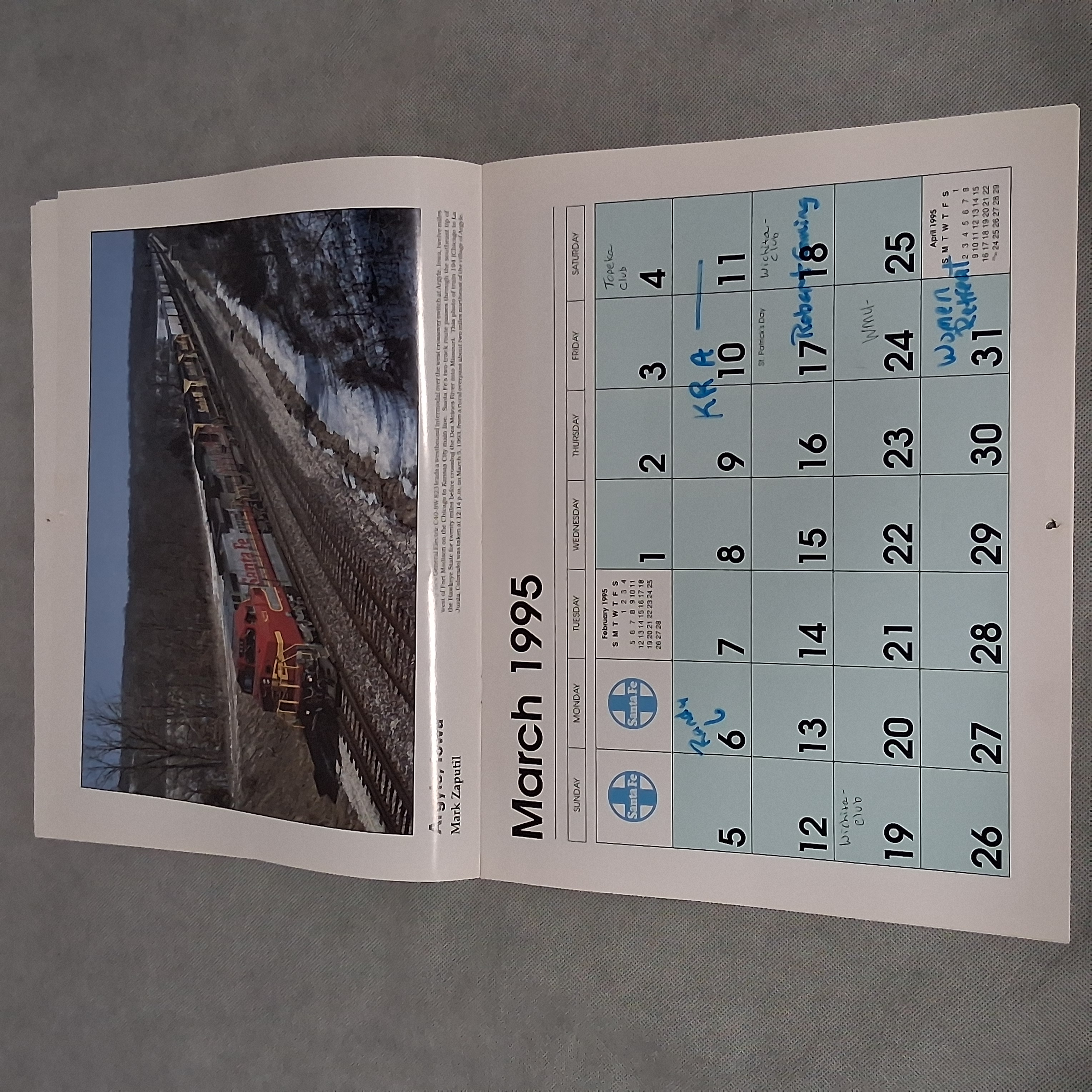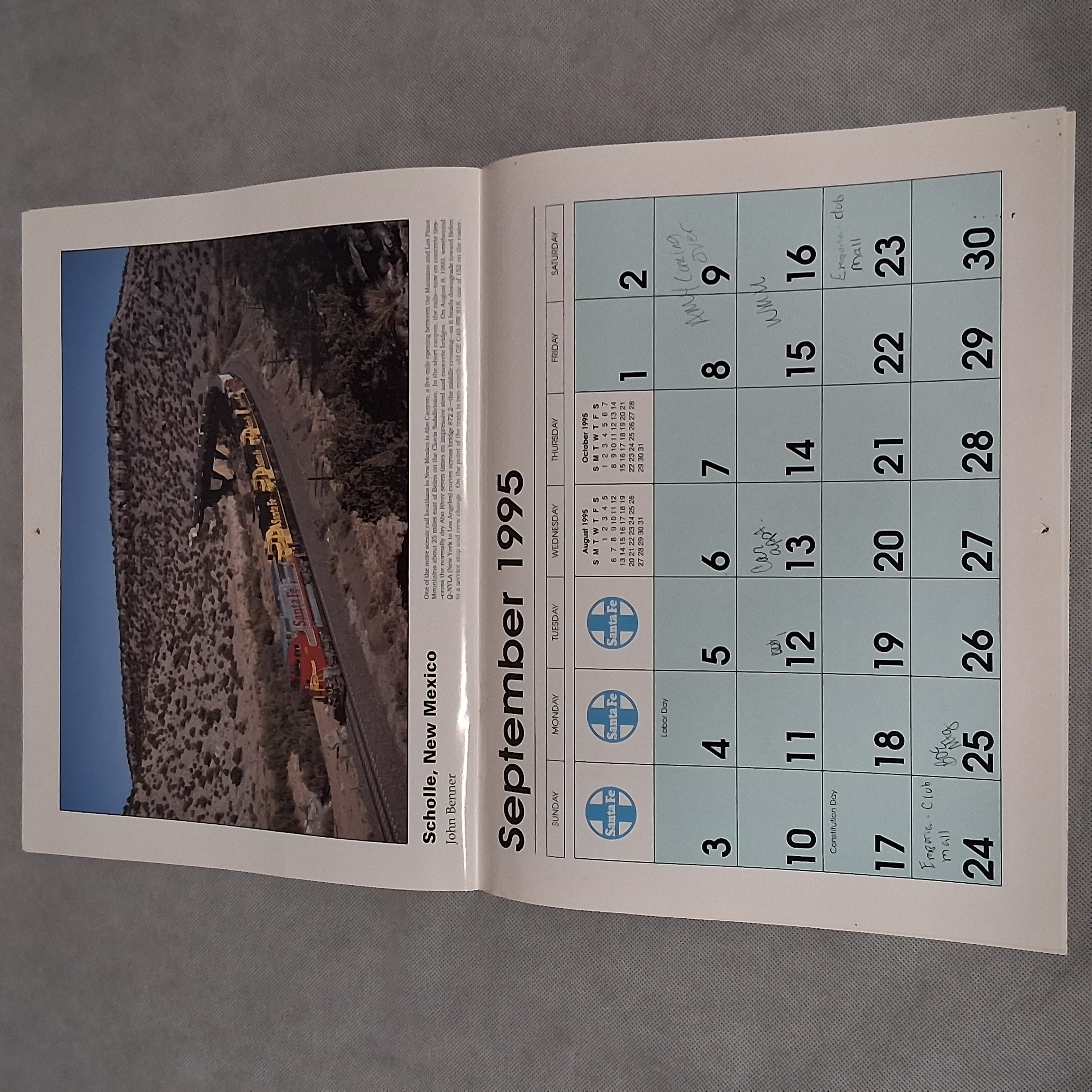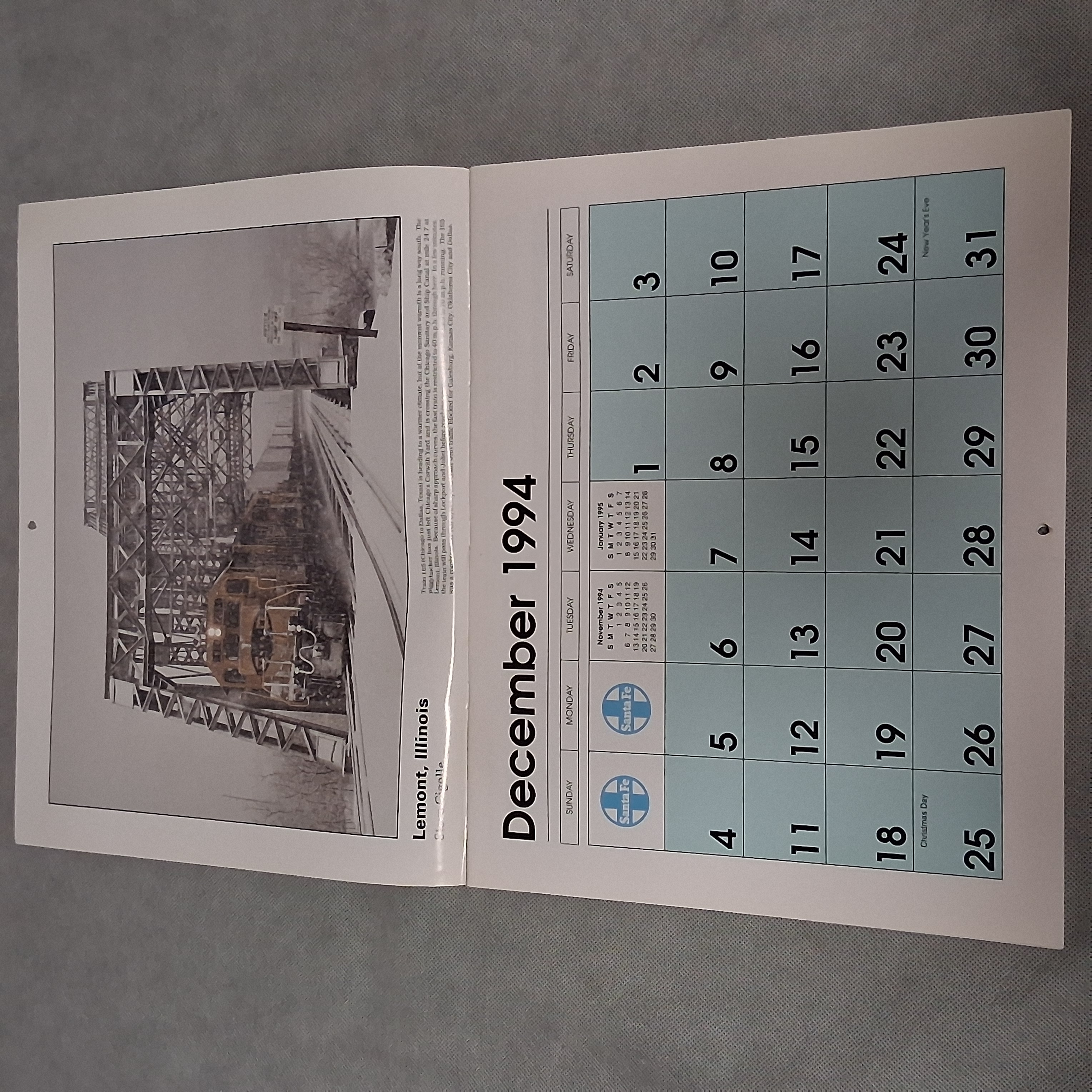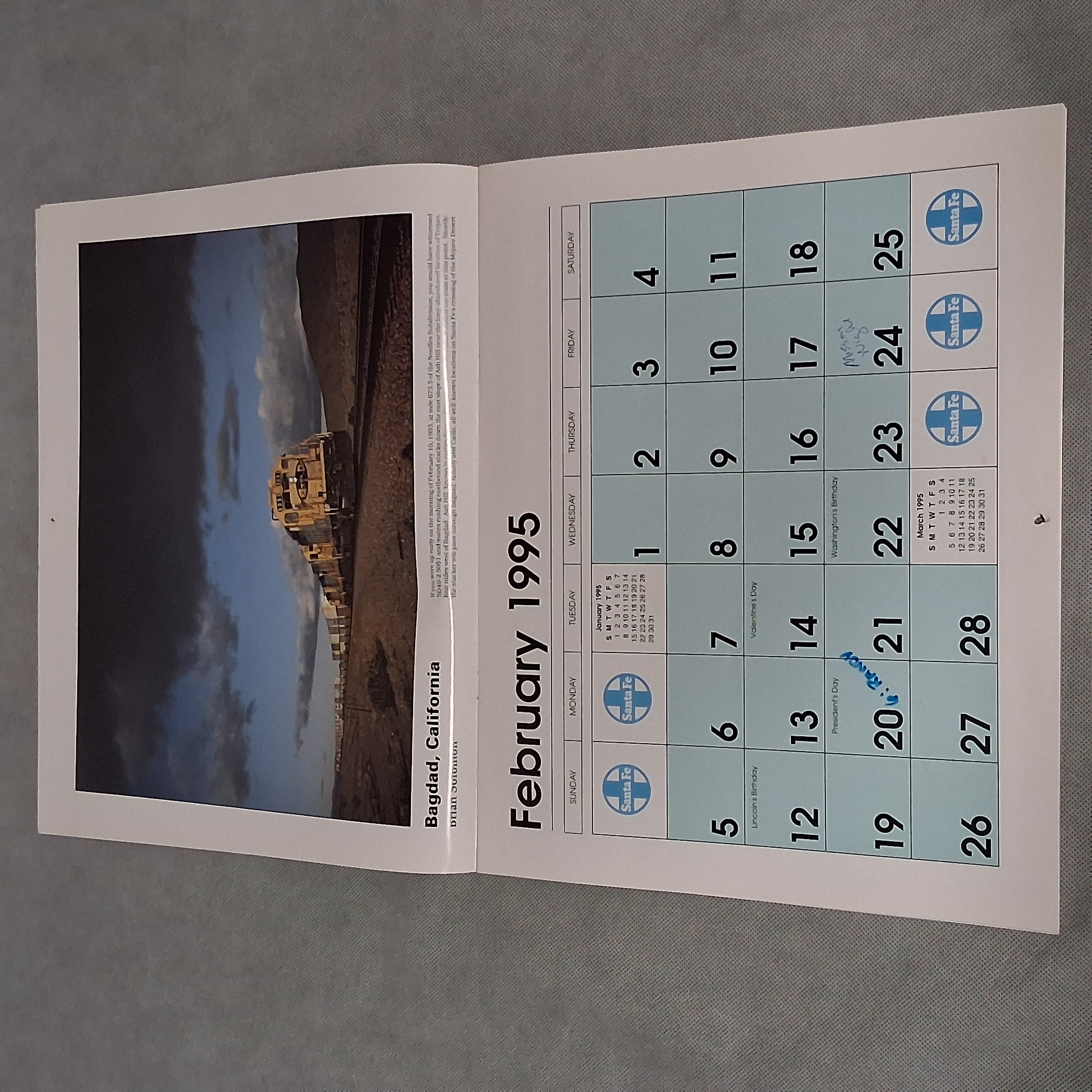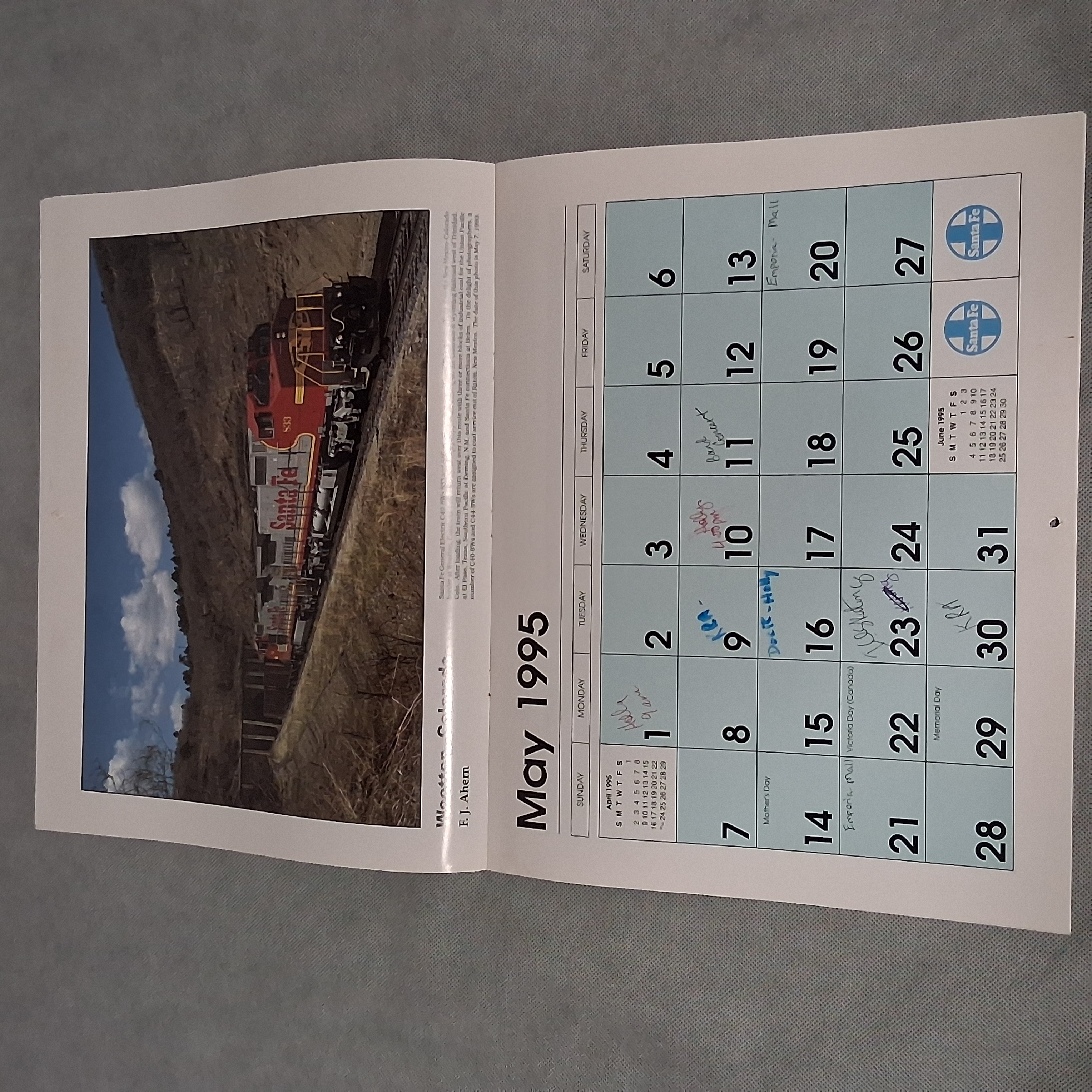 1995 Santa Fe Railroad Wall Calendar Works For 2034 2045 2051