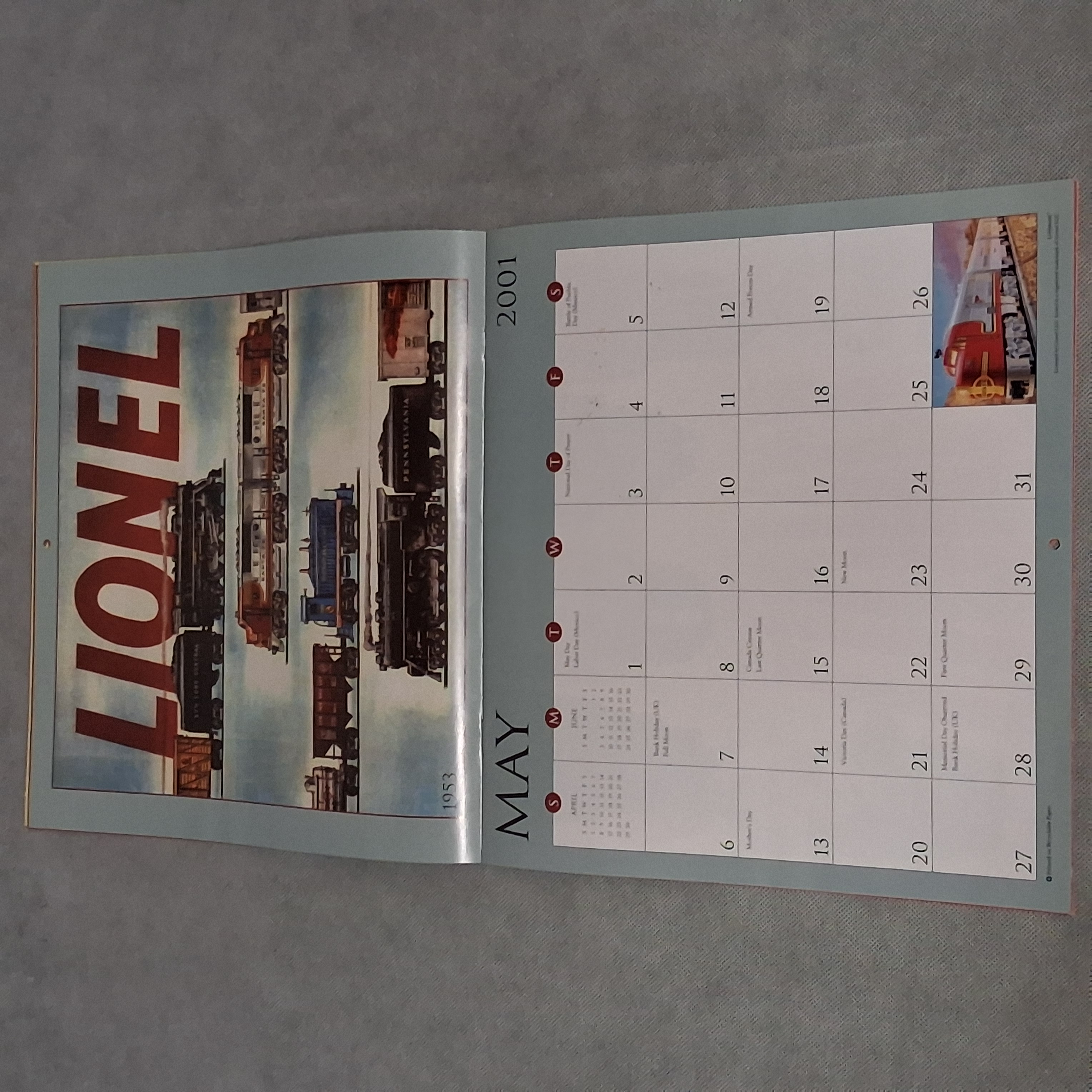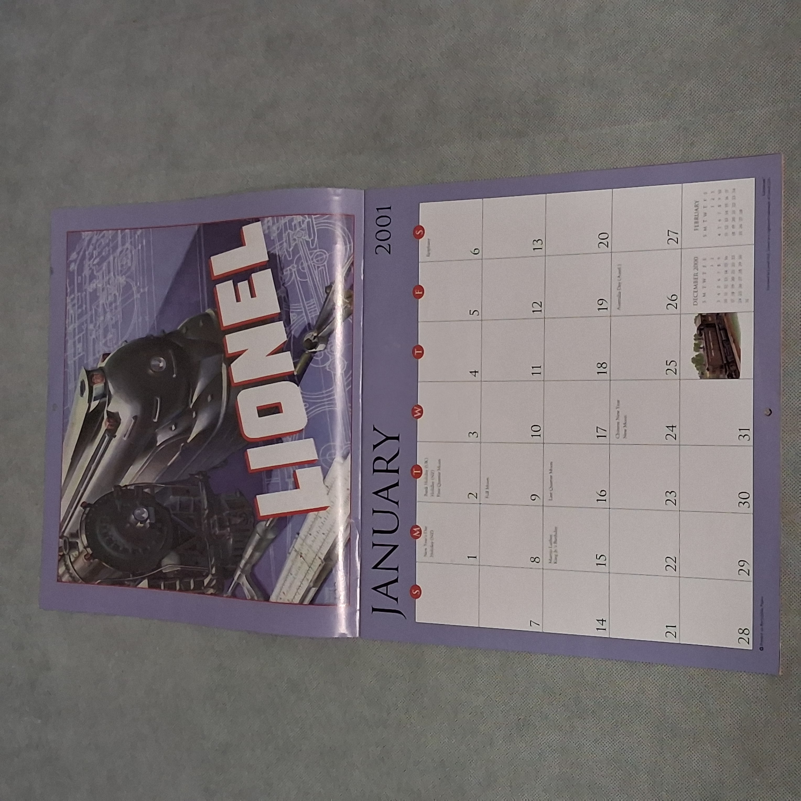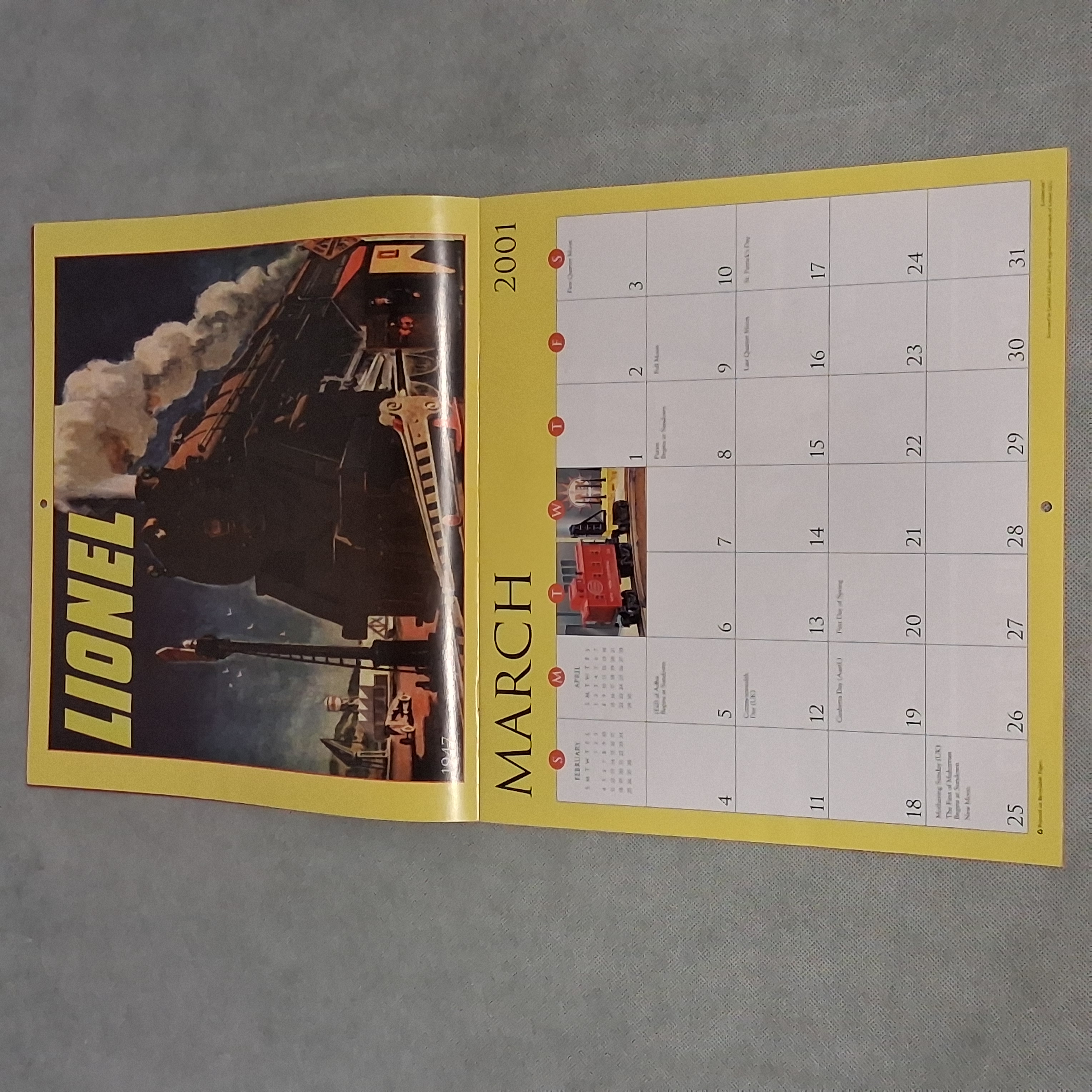 2001 Lionel Trains Calendar Works for 2029 2035 2046 Incomplete Condition