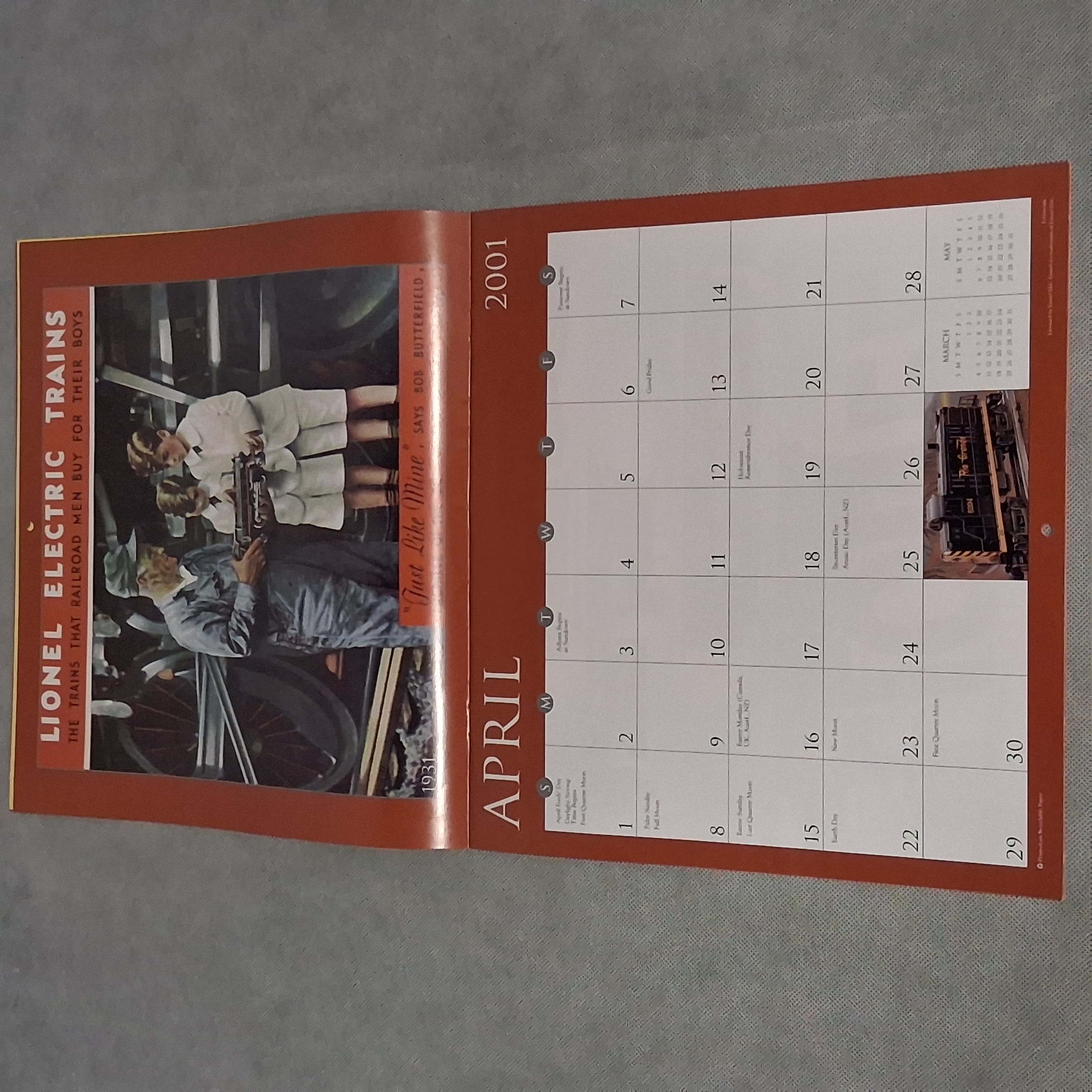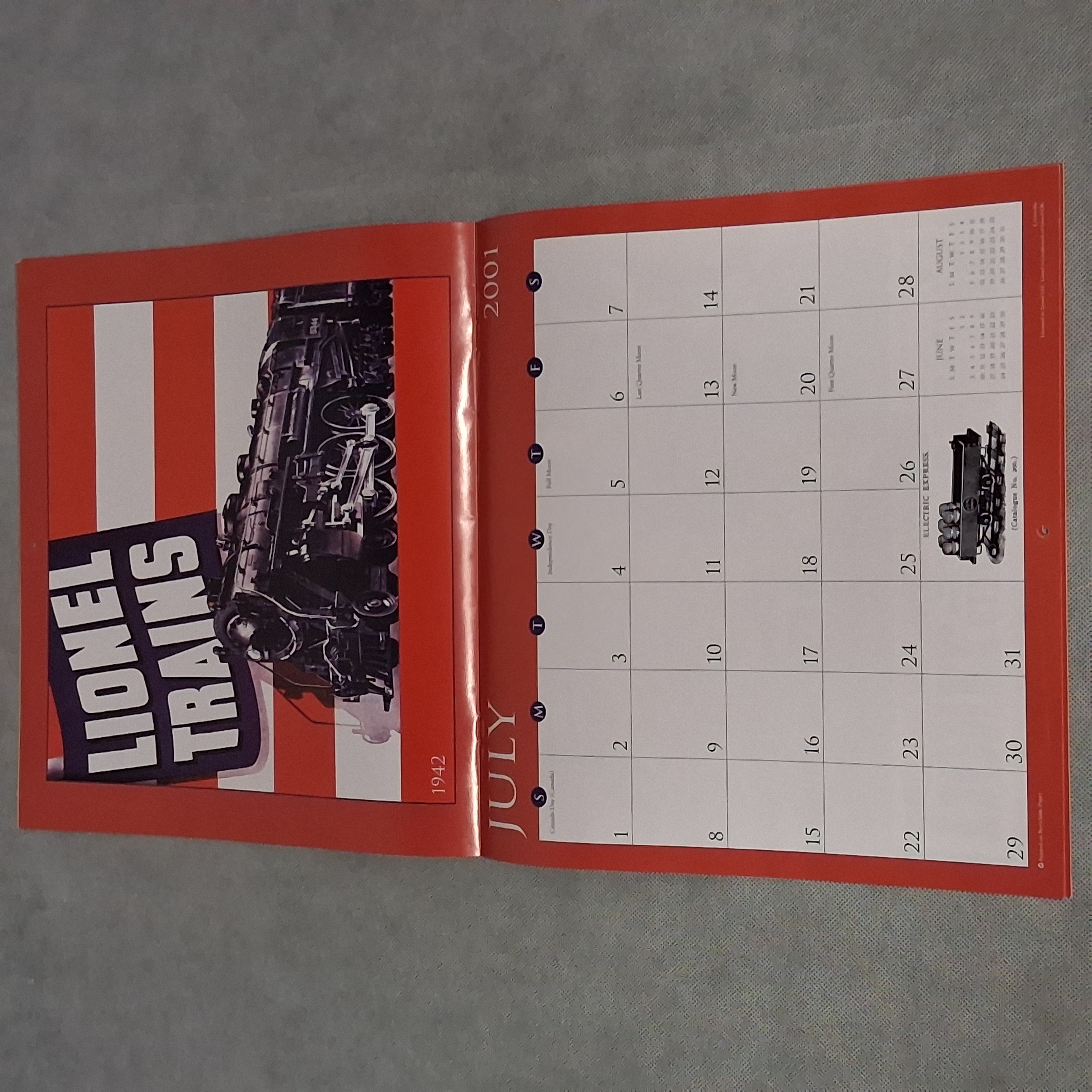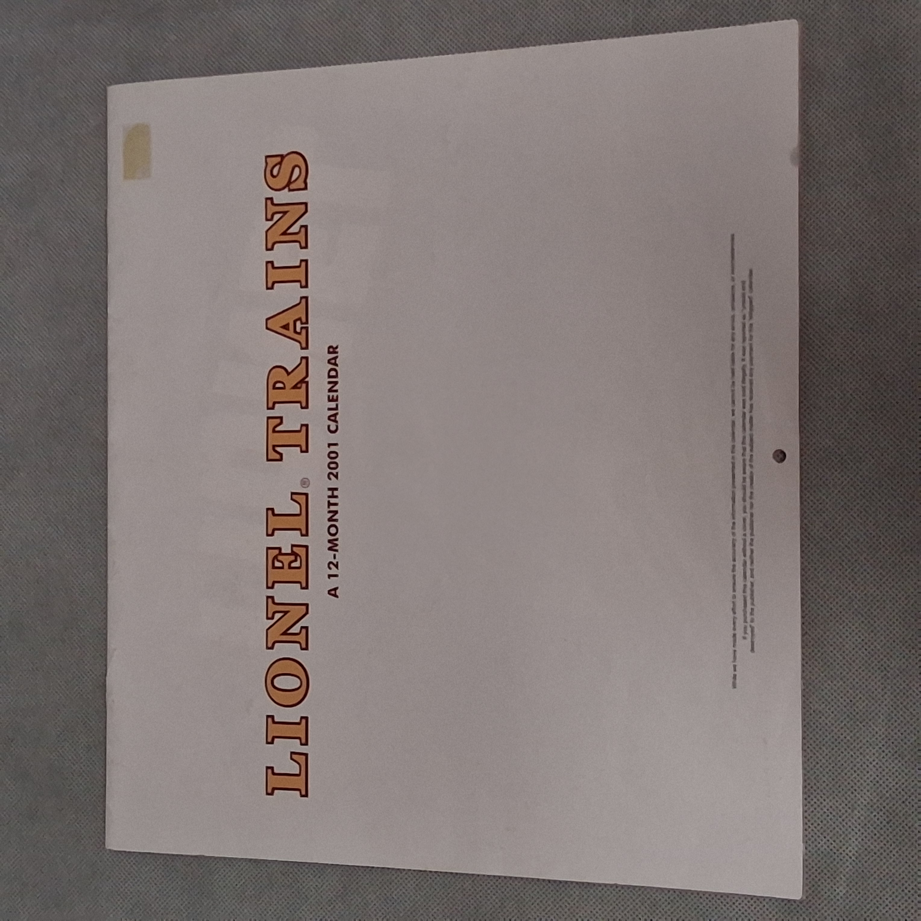 2001 Lionel Trains Calendar Works for 2029 2035 2046 Incomplete Condition