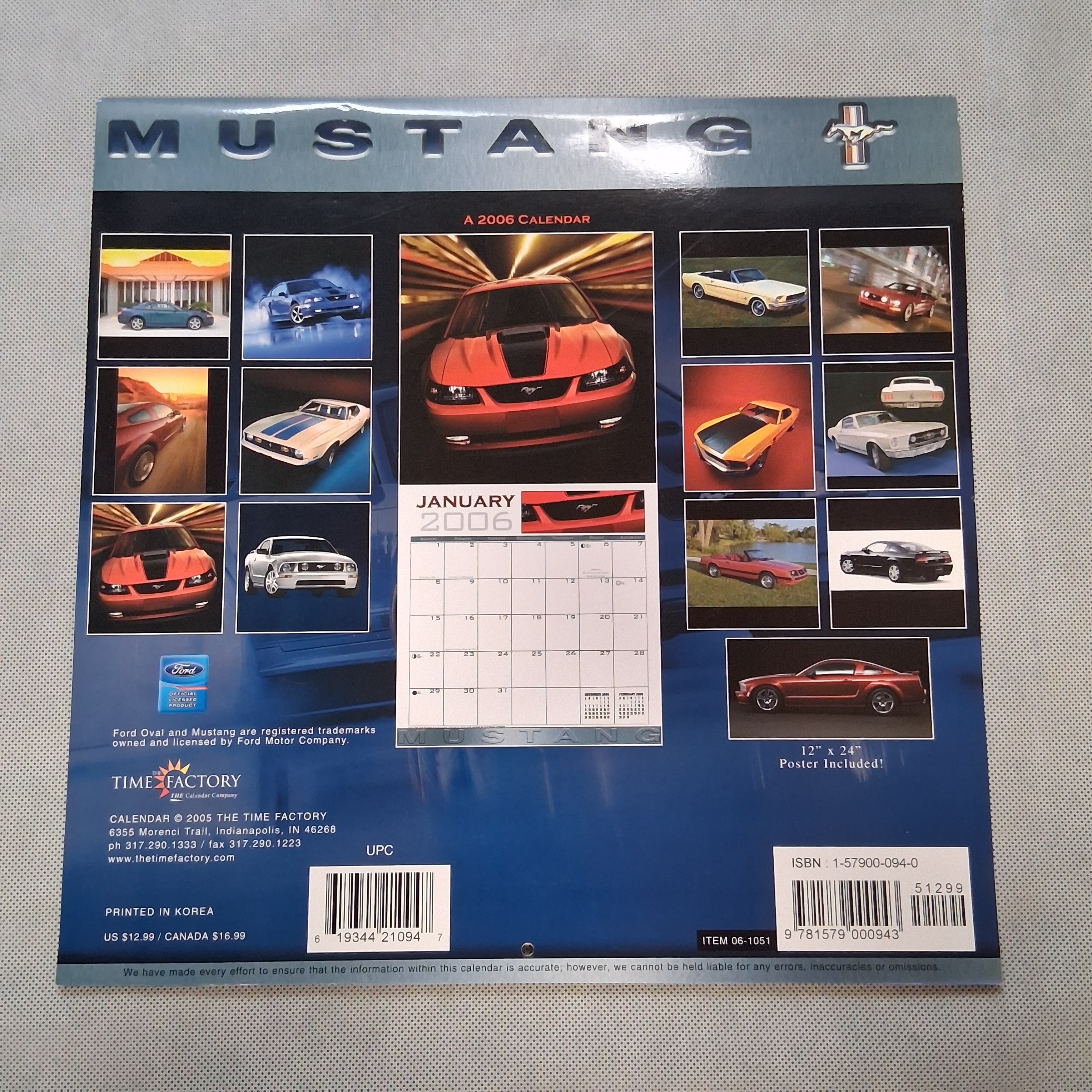 2006 Mustang Wall Calendar Works for 2034 2045 2051