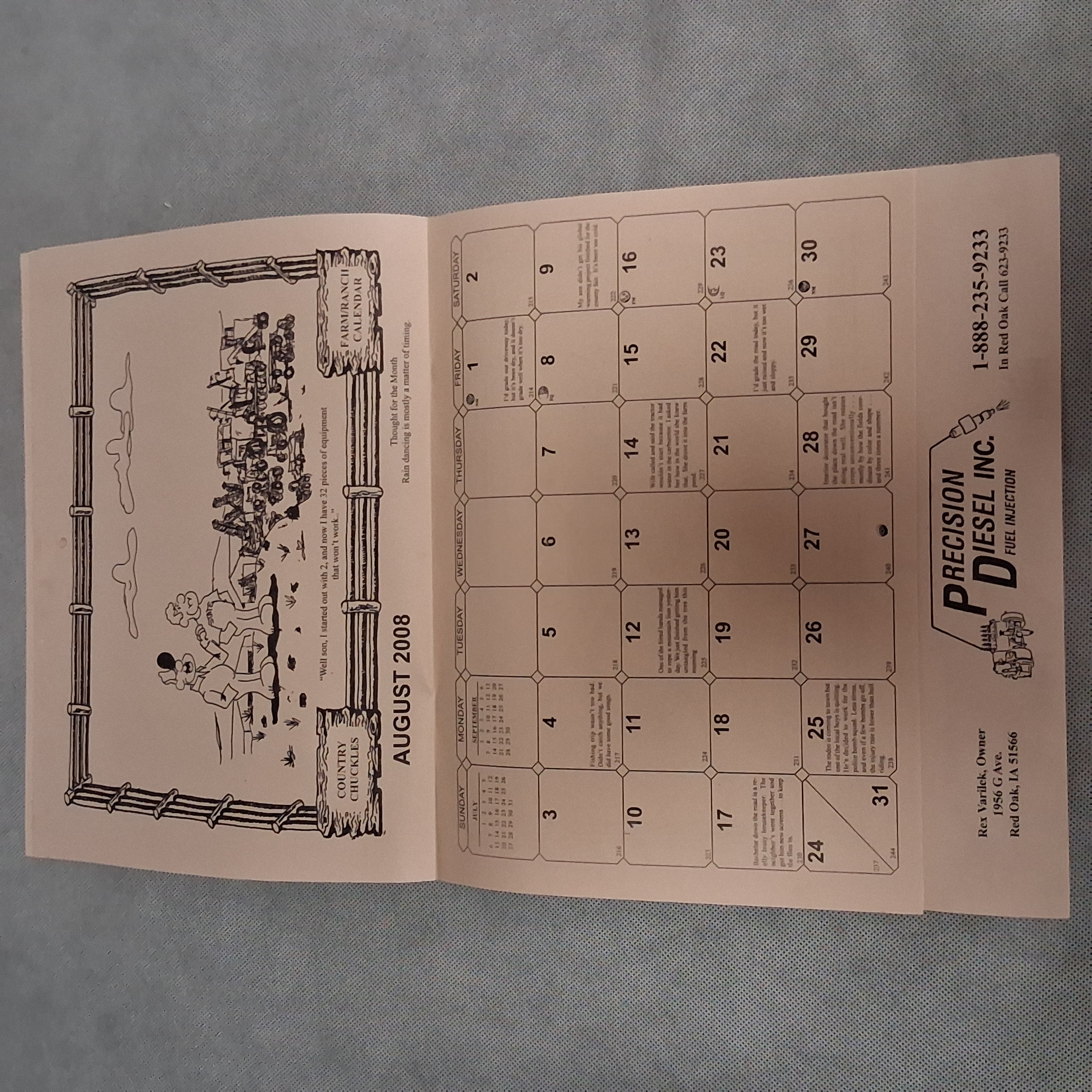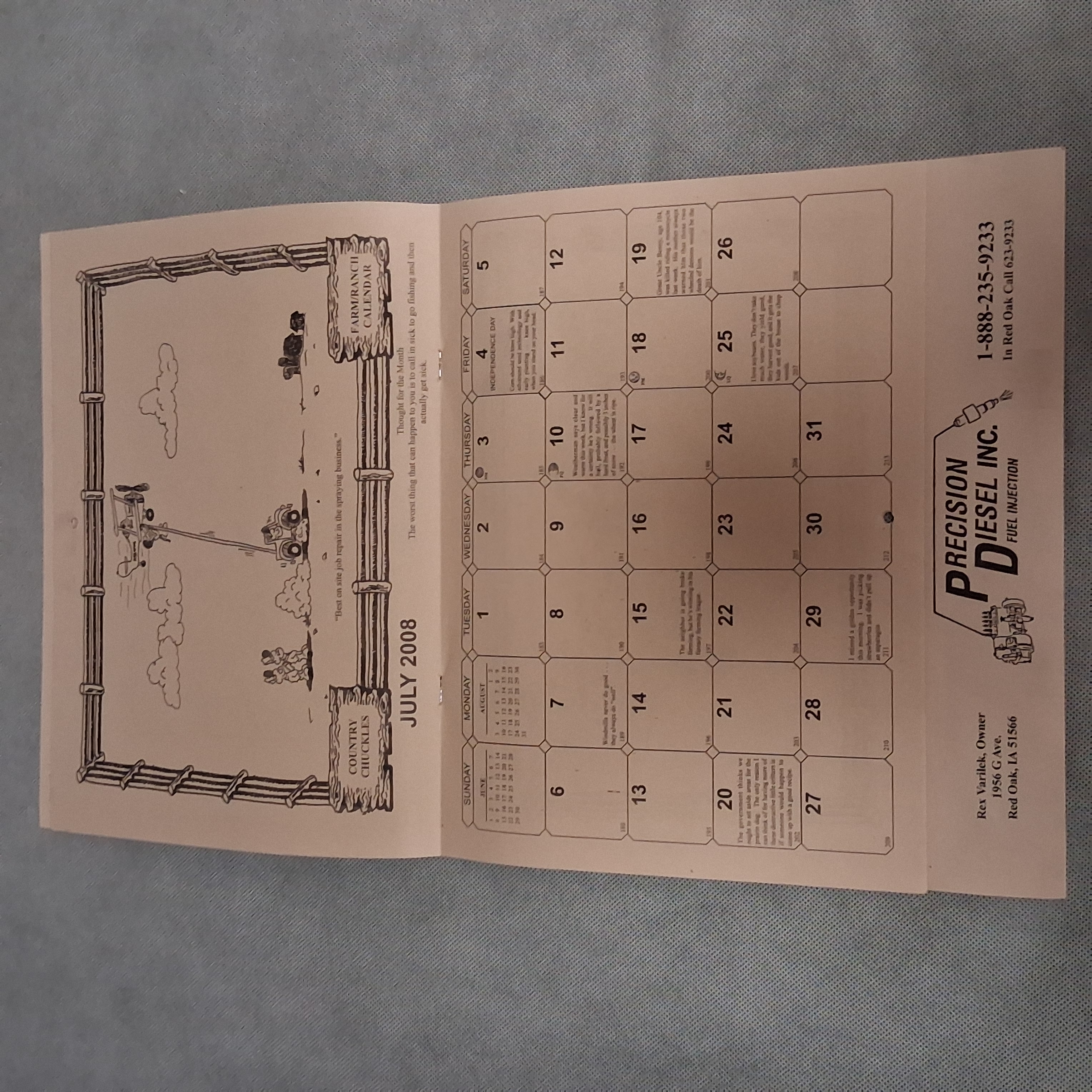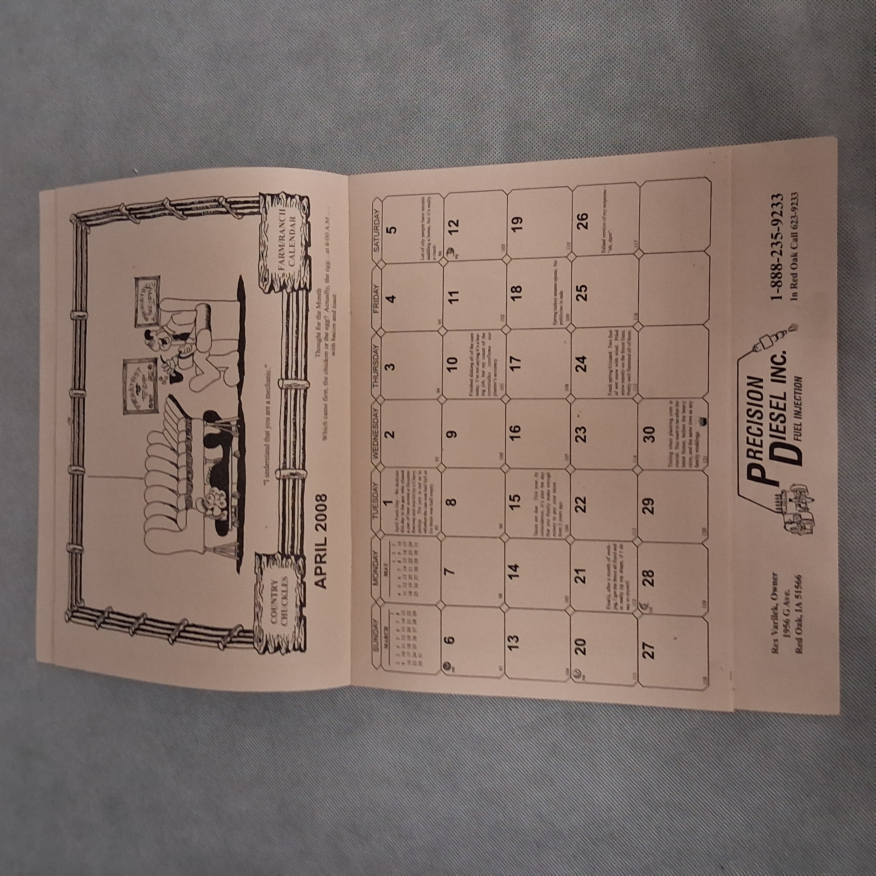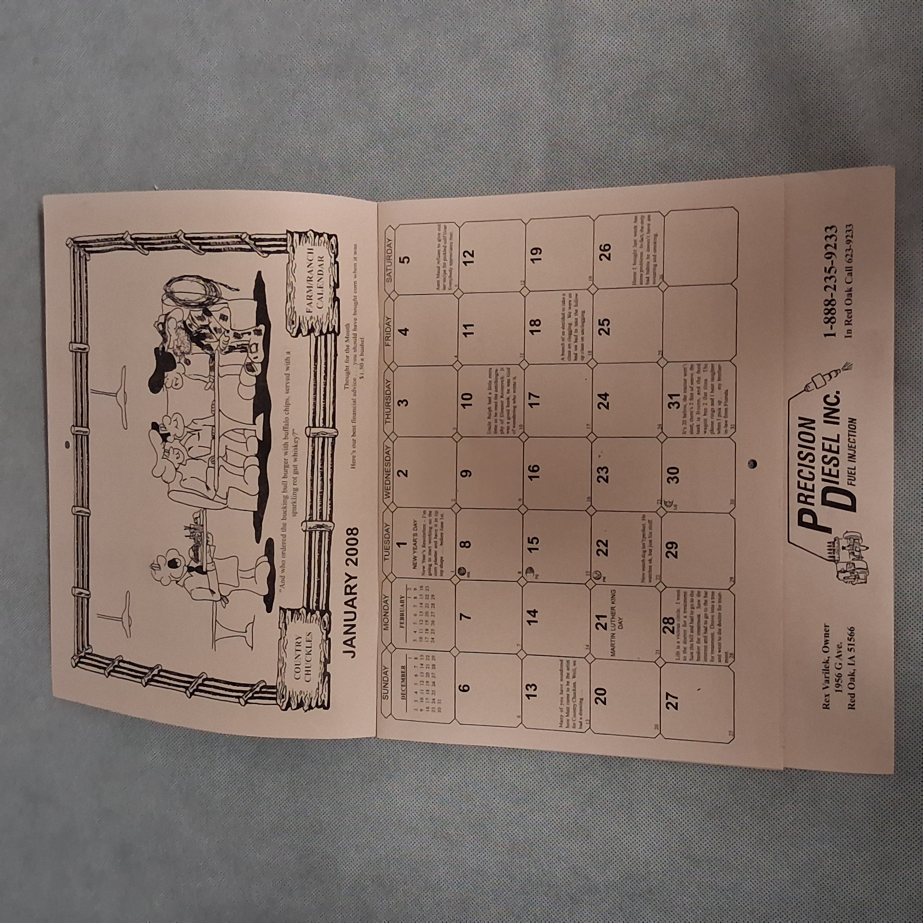 2008 Country Chuckles Wall Calendar Advertising Precision Diesel Red Oak IA 2036