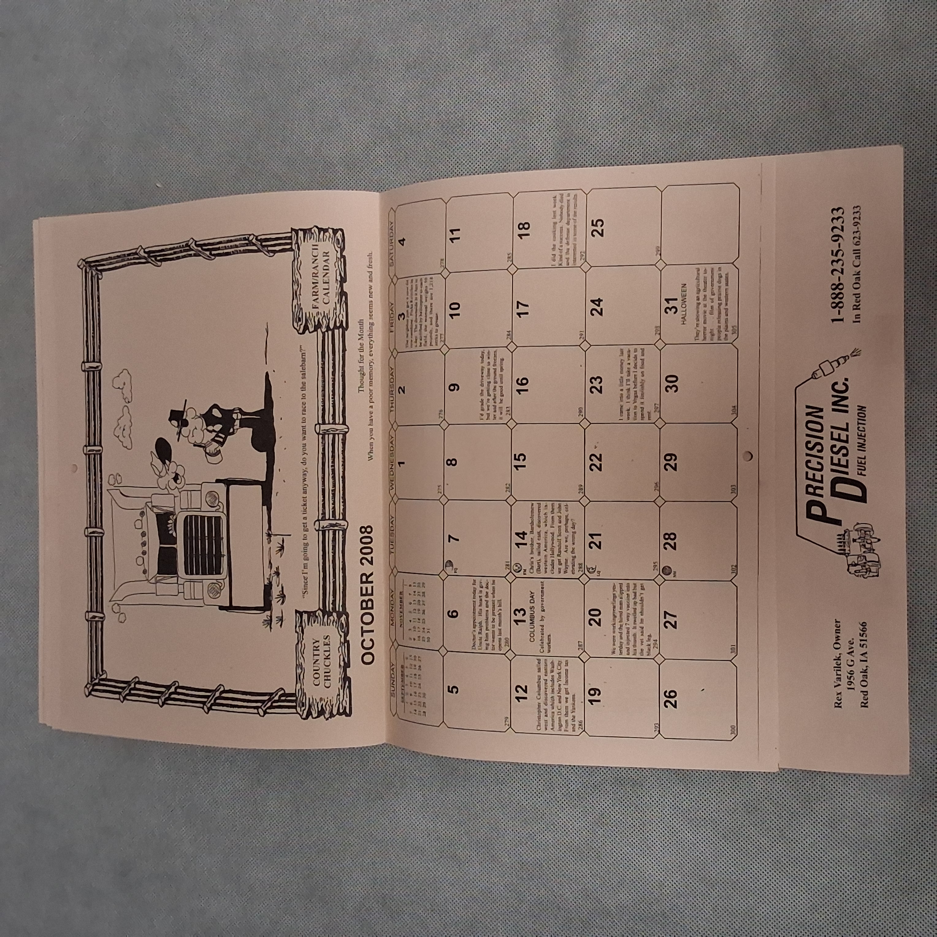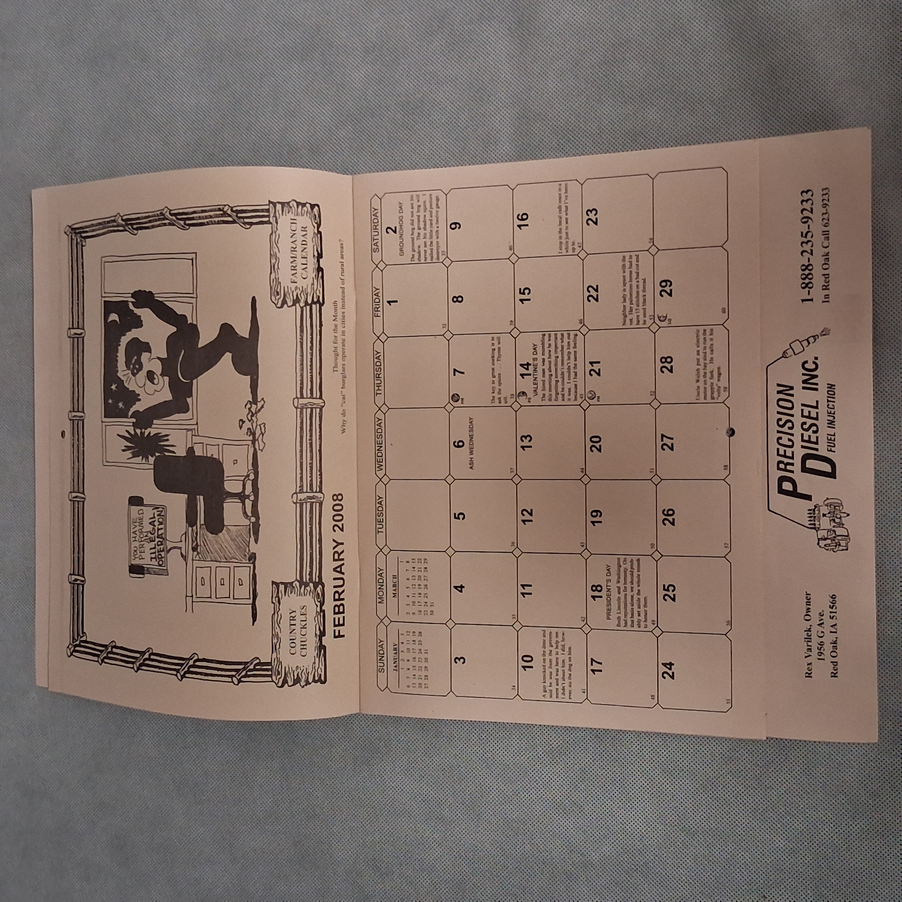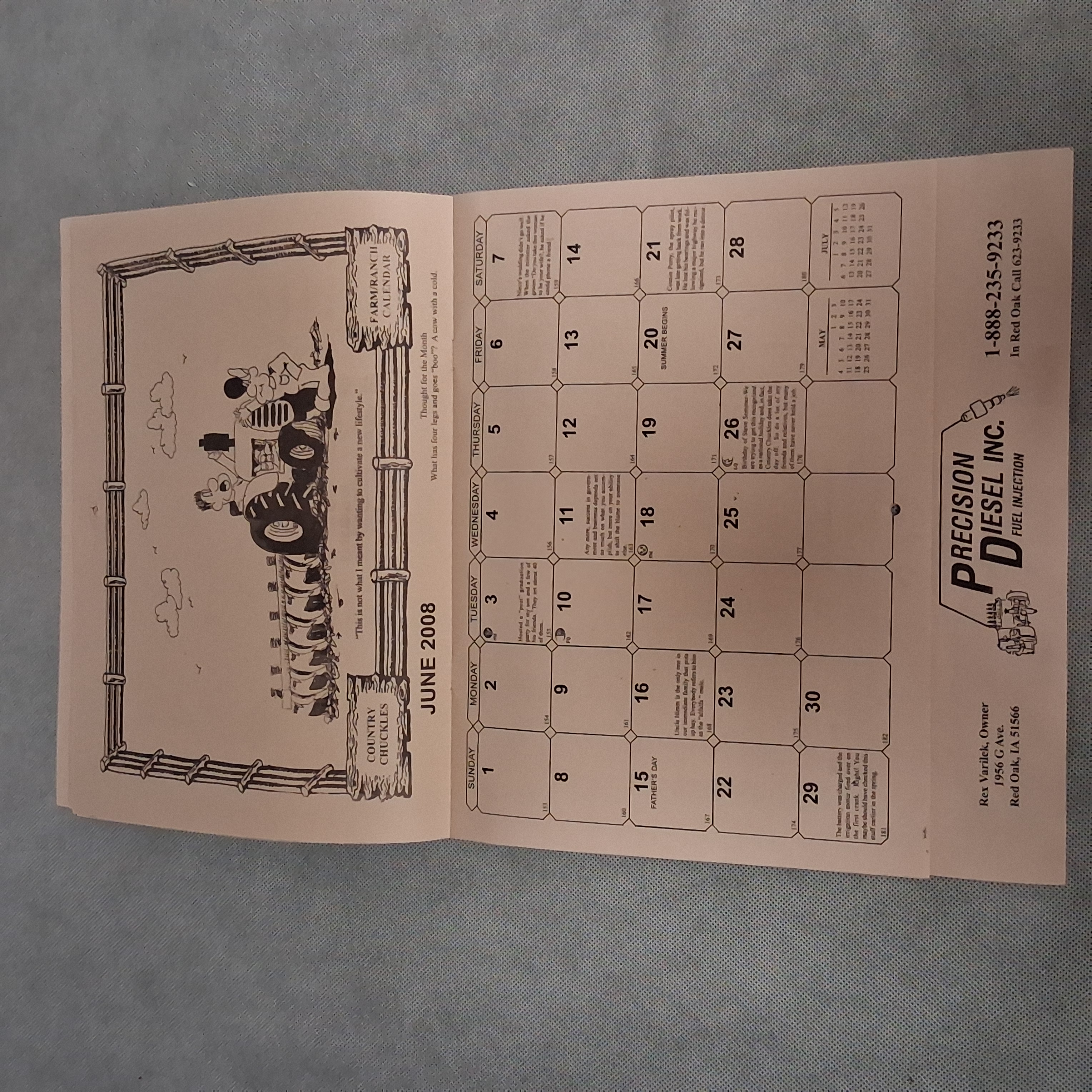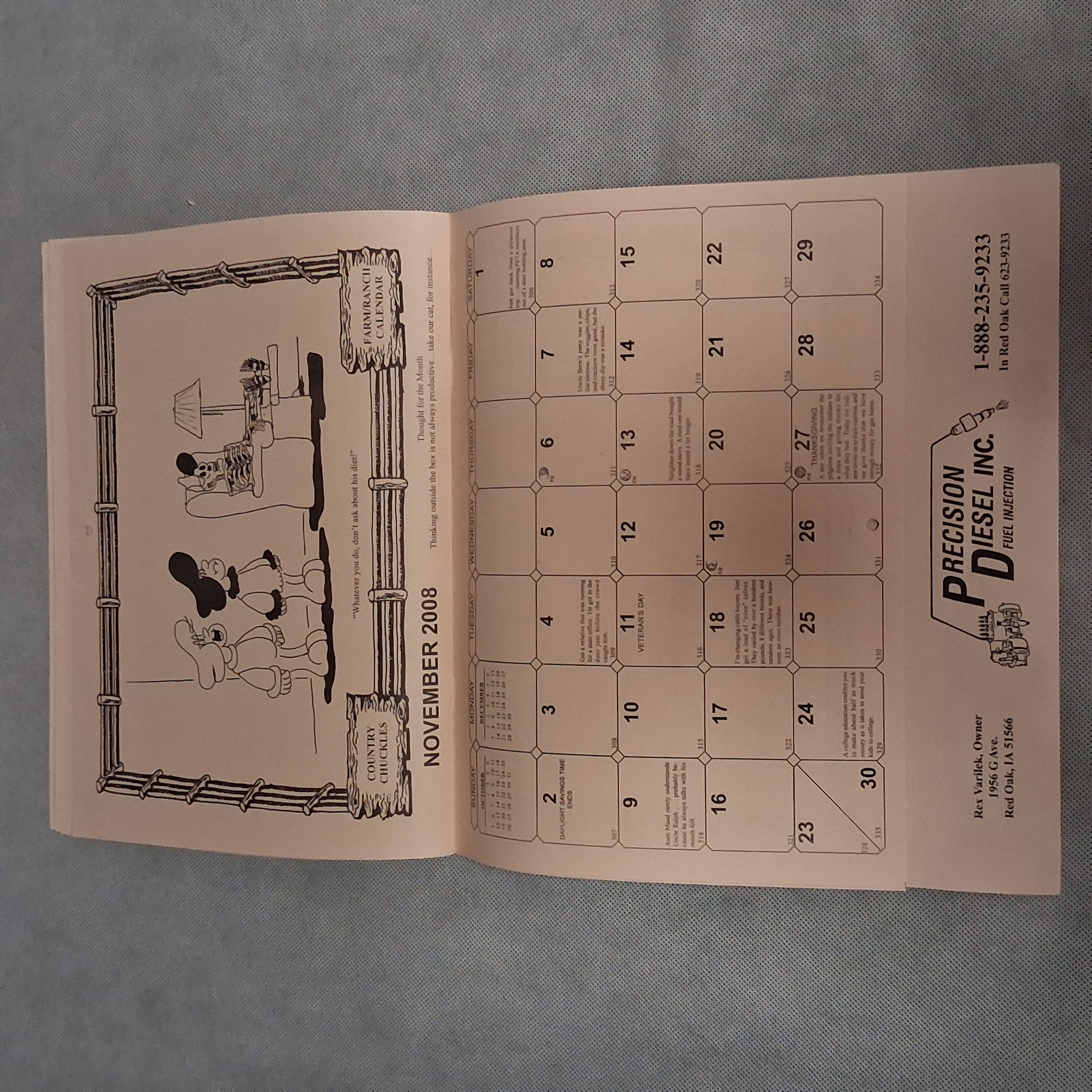 2008 Country Chuckles Wall Calendar Advertising Precision Diesel Red Oak IA 2036