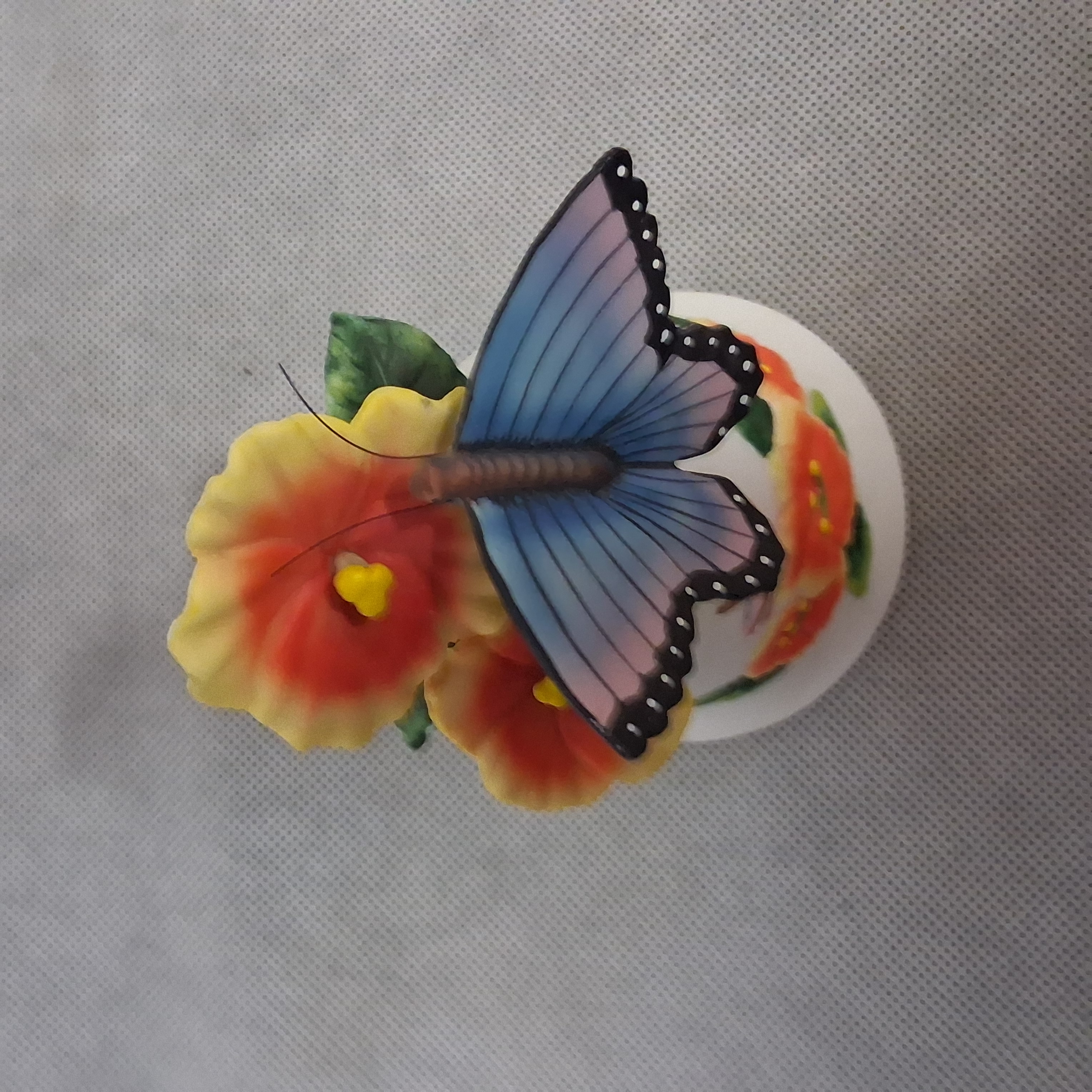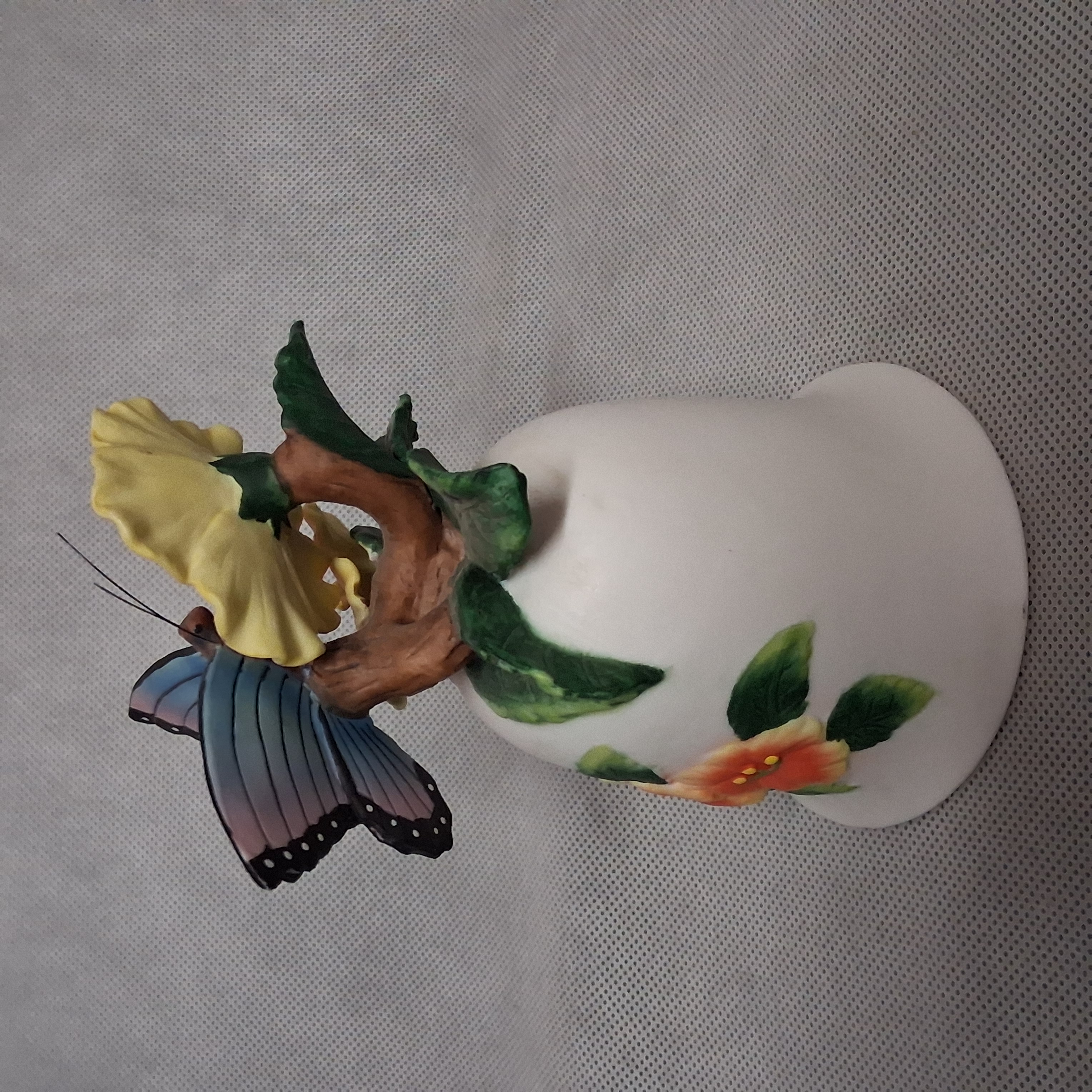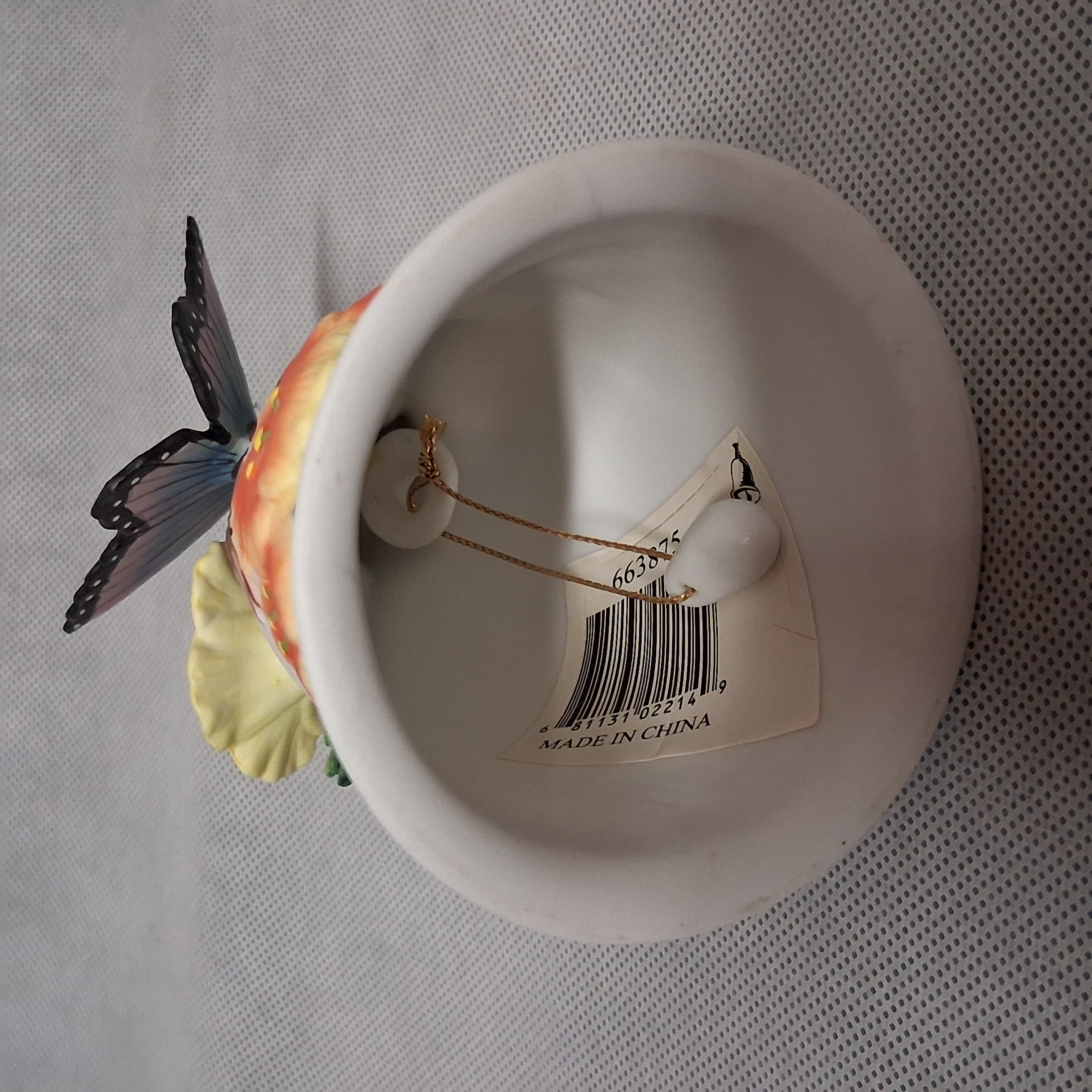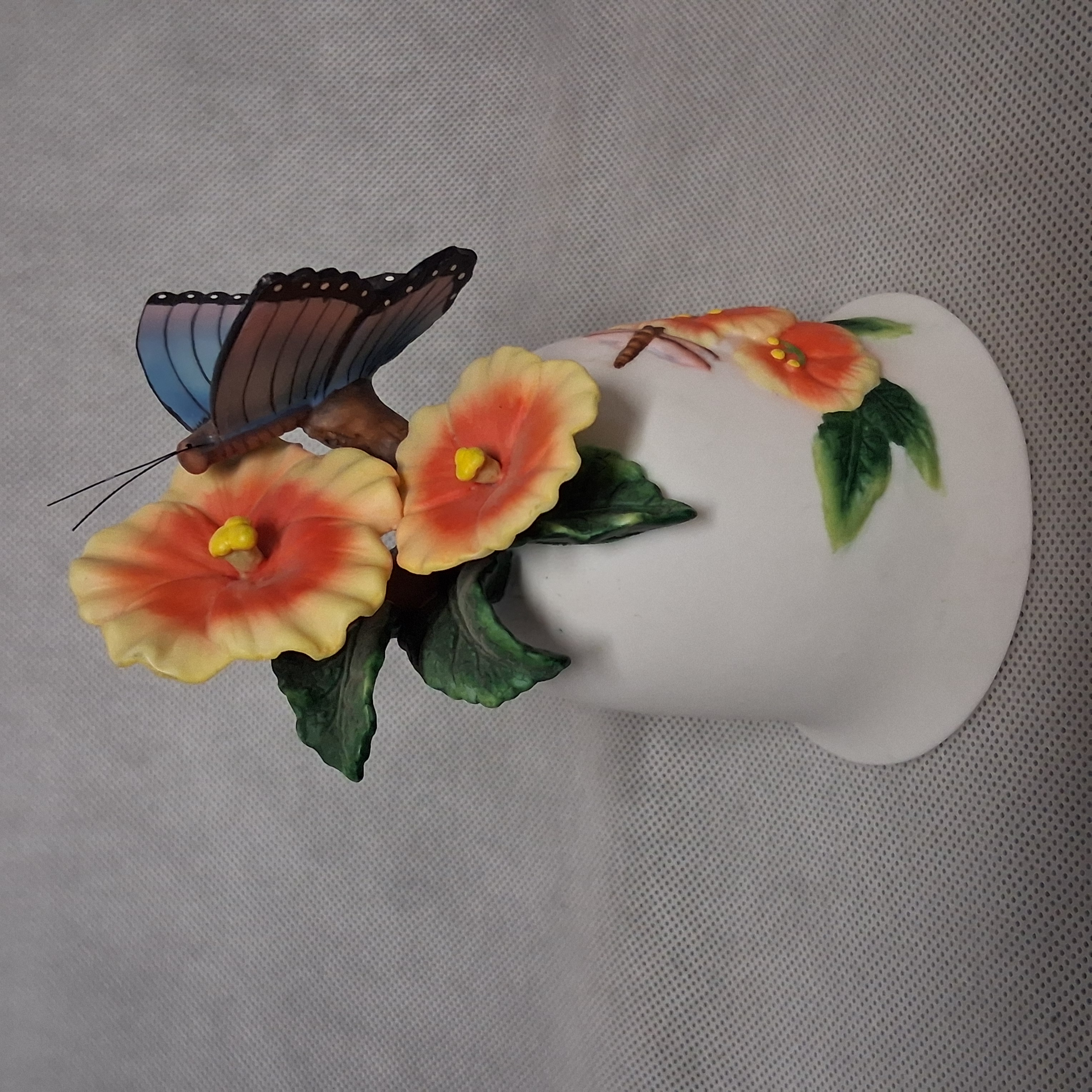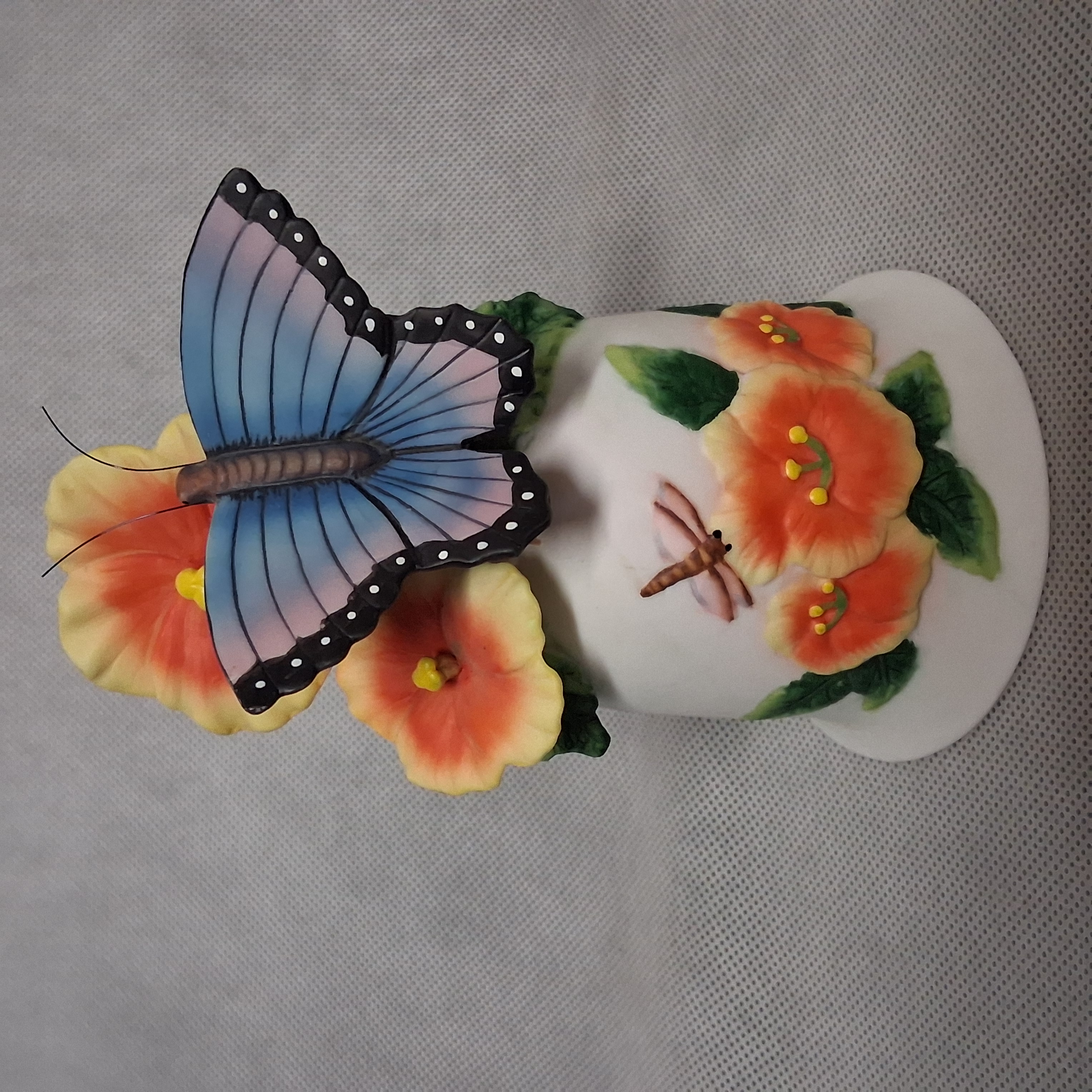 3D Figural Butterfly Hibiscus Flowers Bell Dragonfly Porcelain 5" Tall