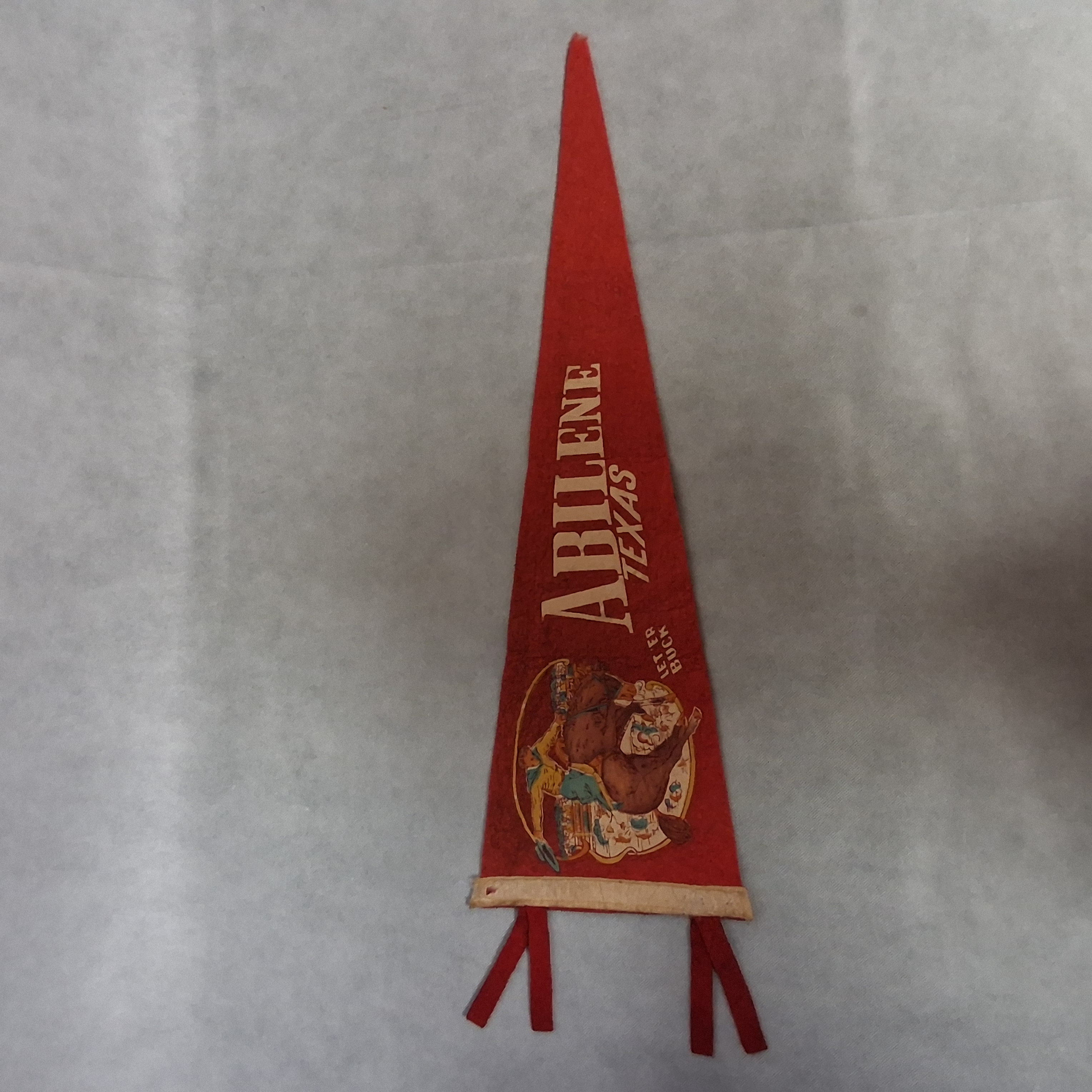 Abeline Texas Red Felt Pennant 24 1/2" (28 1/4" With Ties) x 8 1/2" Vintage