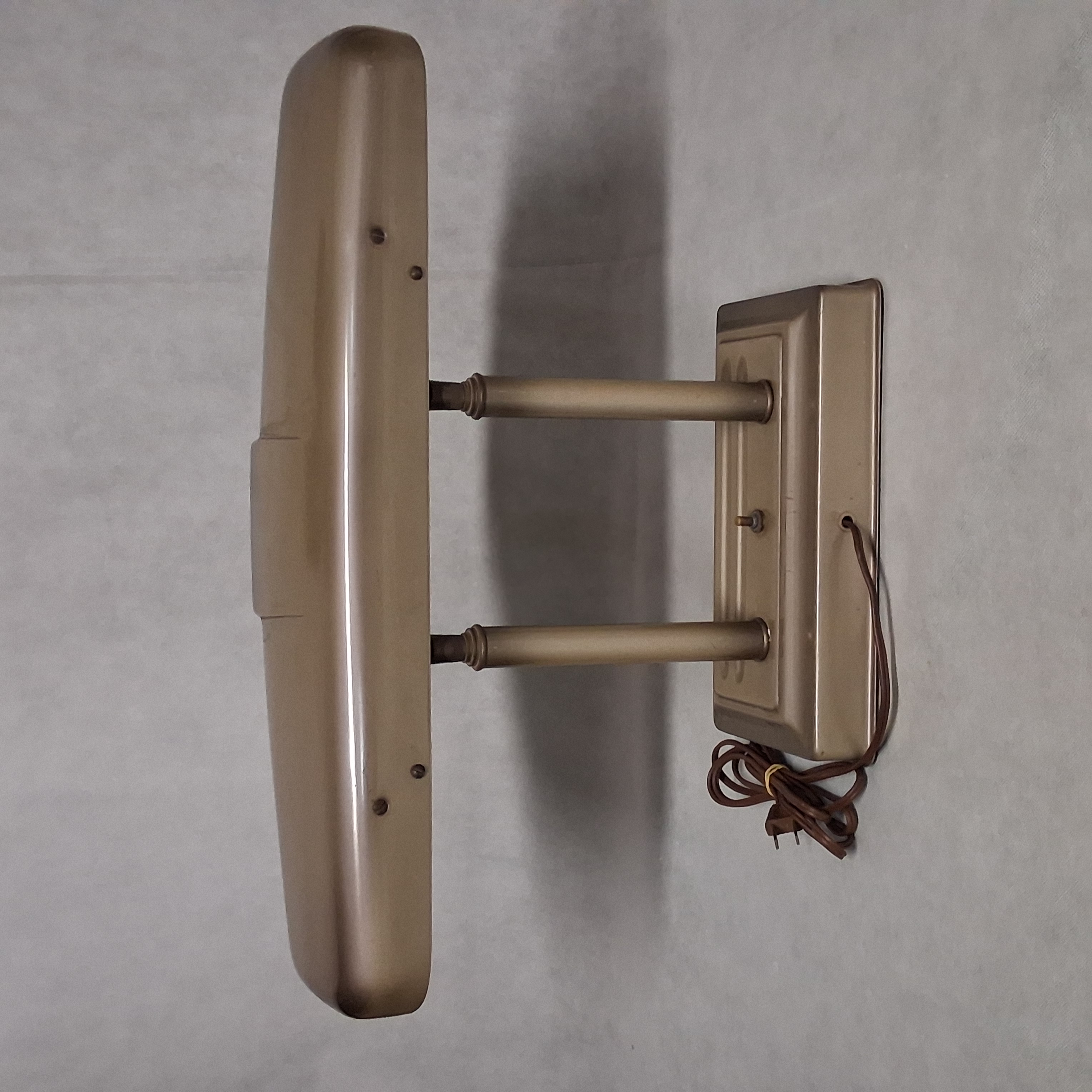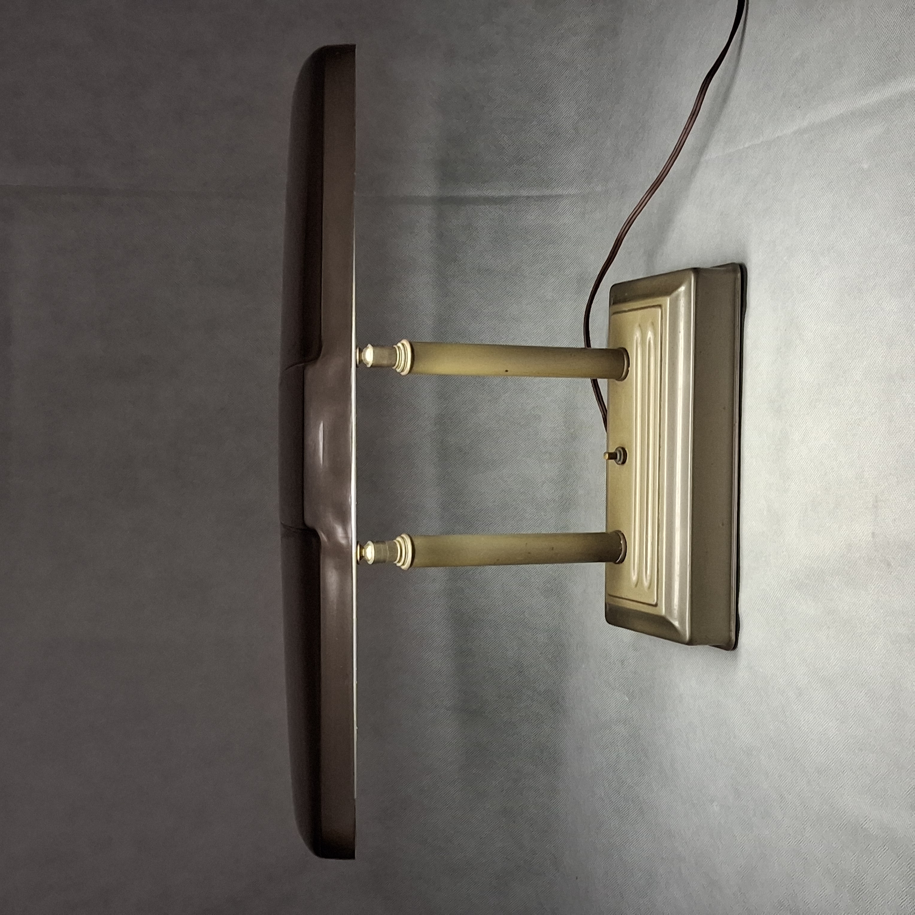 Art Deco Brown Fluorescent Desk Lamp 20" Double Pillar Post Adjustable Hood