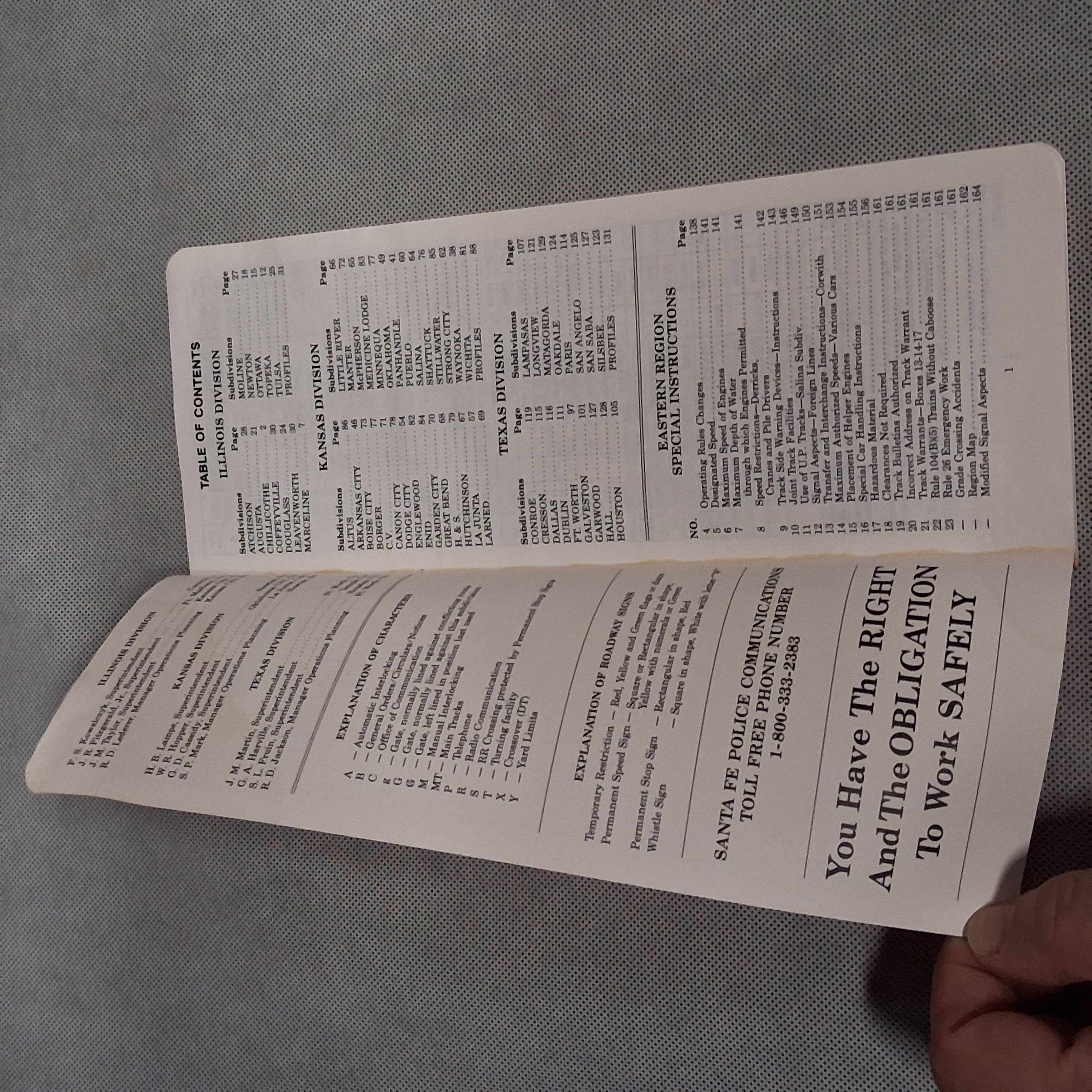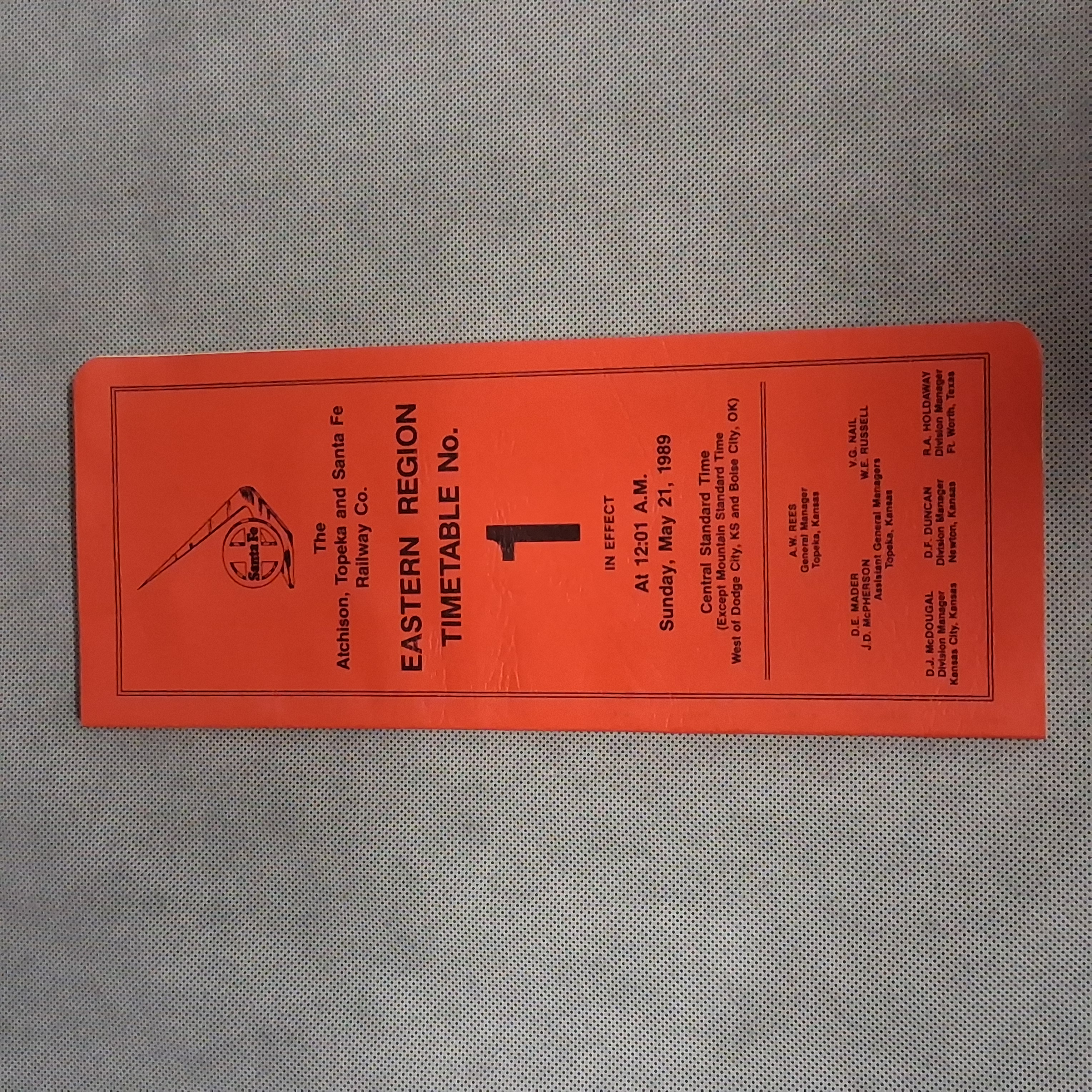 Atchison Topeka Santa Fe Railway Employee Timetable No 1 1989 Eastern Region