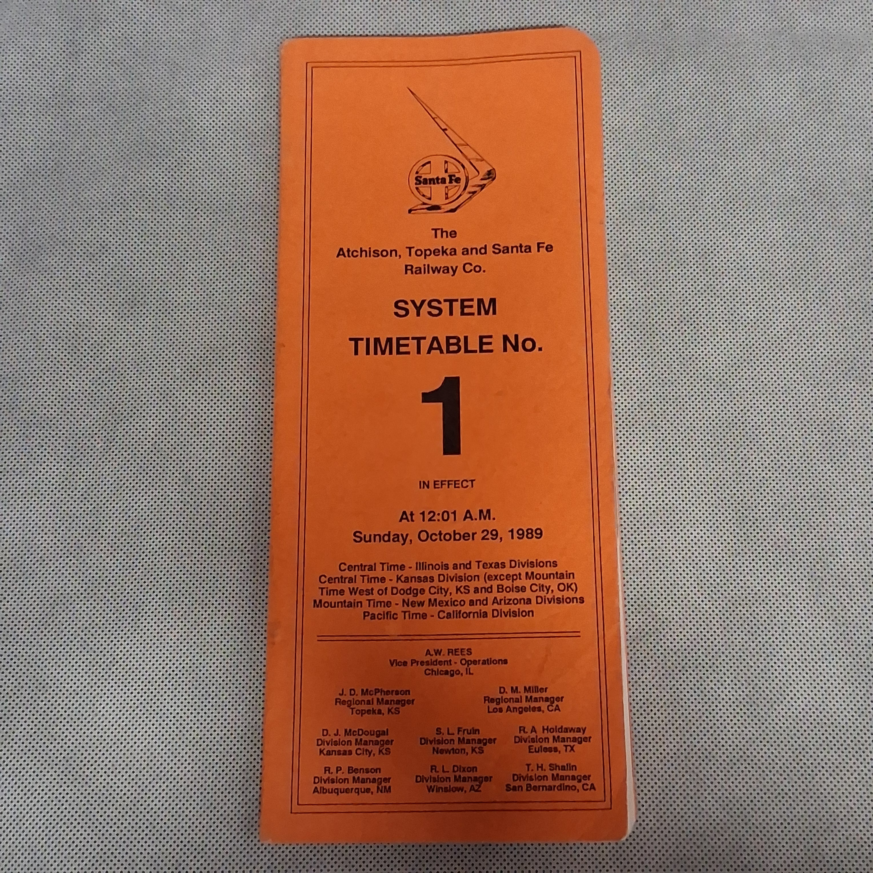 Atchison Topeka Santa Fe Railway System Timetable No 1 1989