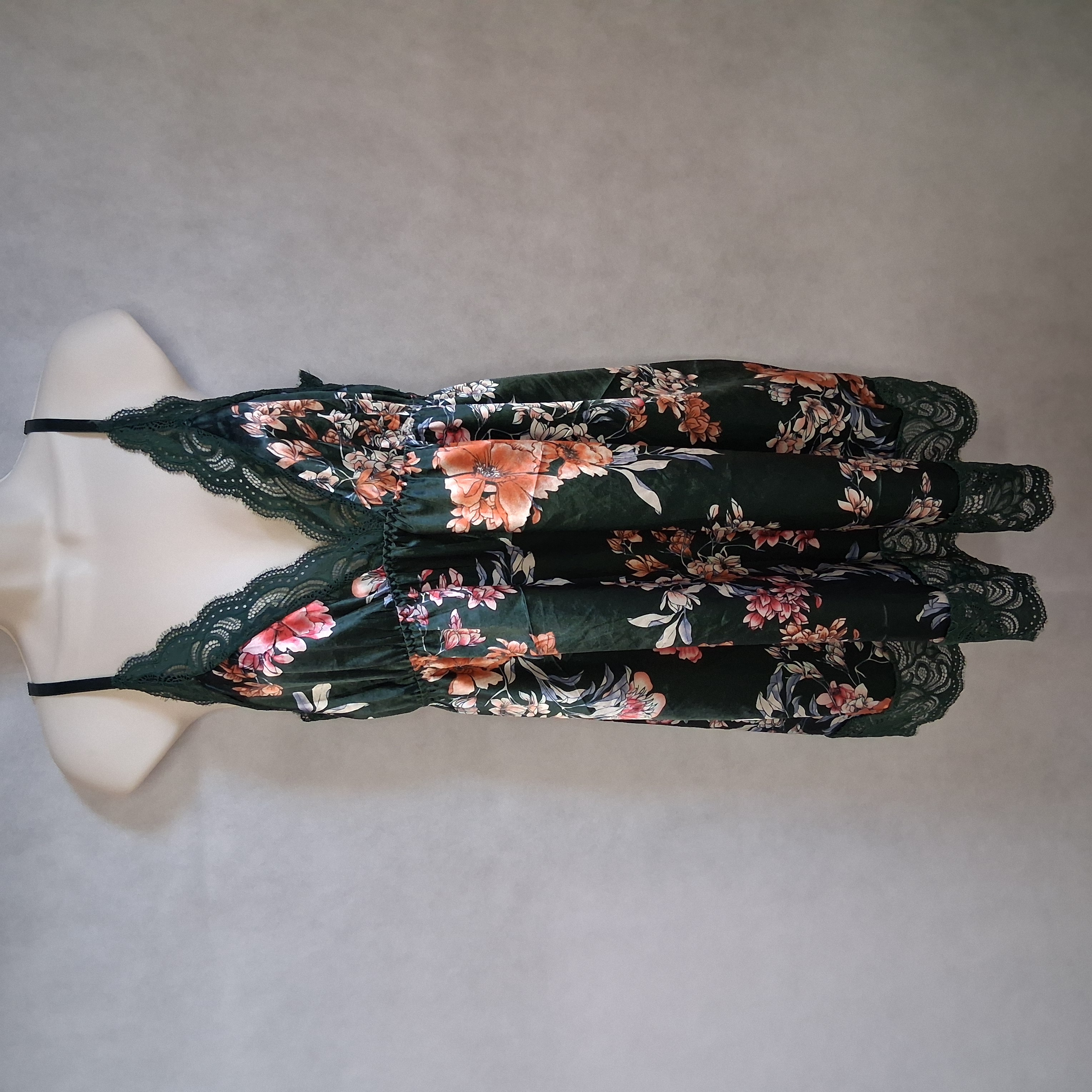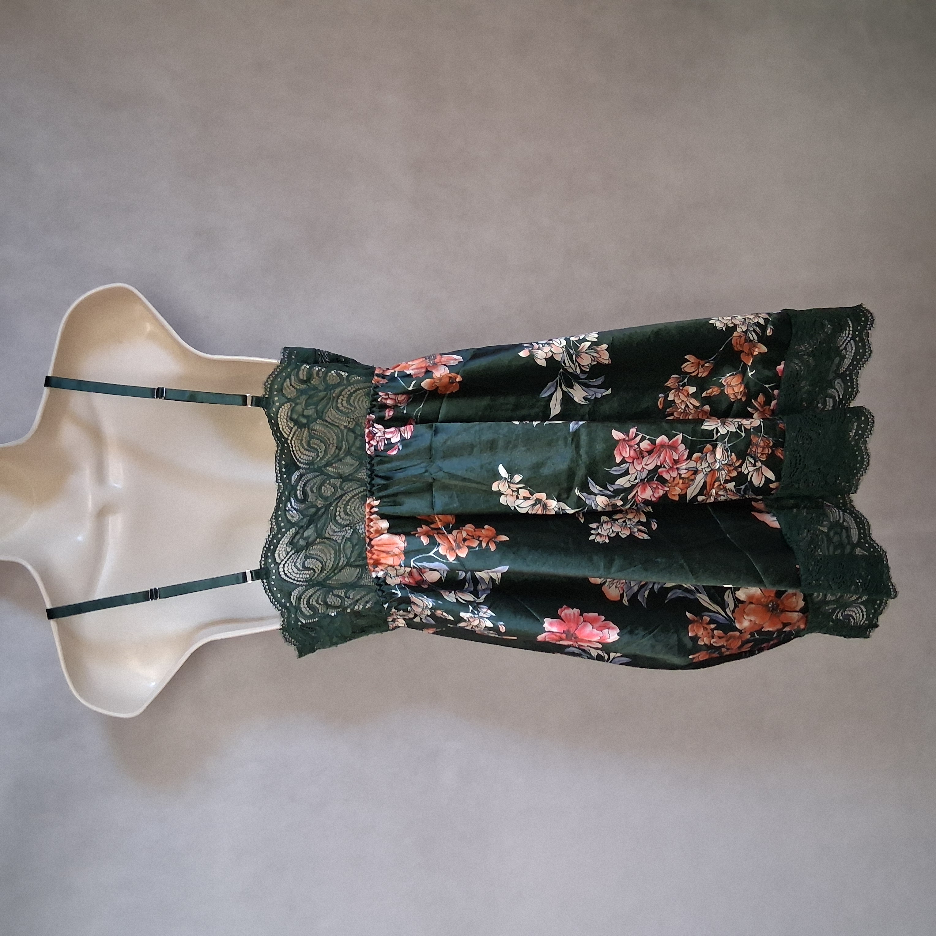 AvidLove Sleep Babydoll Chemise Night Dress Medium Green Floral Lingerie Lace