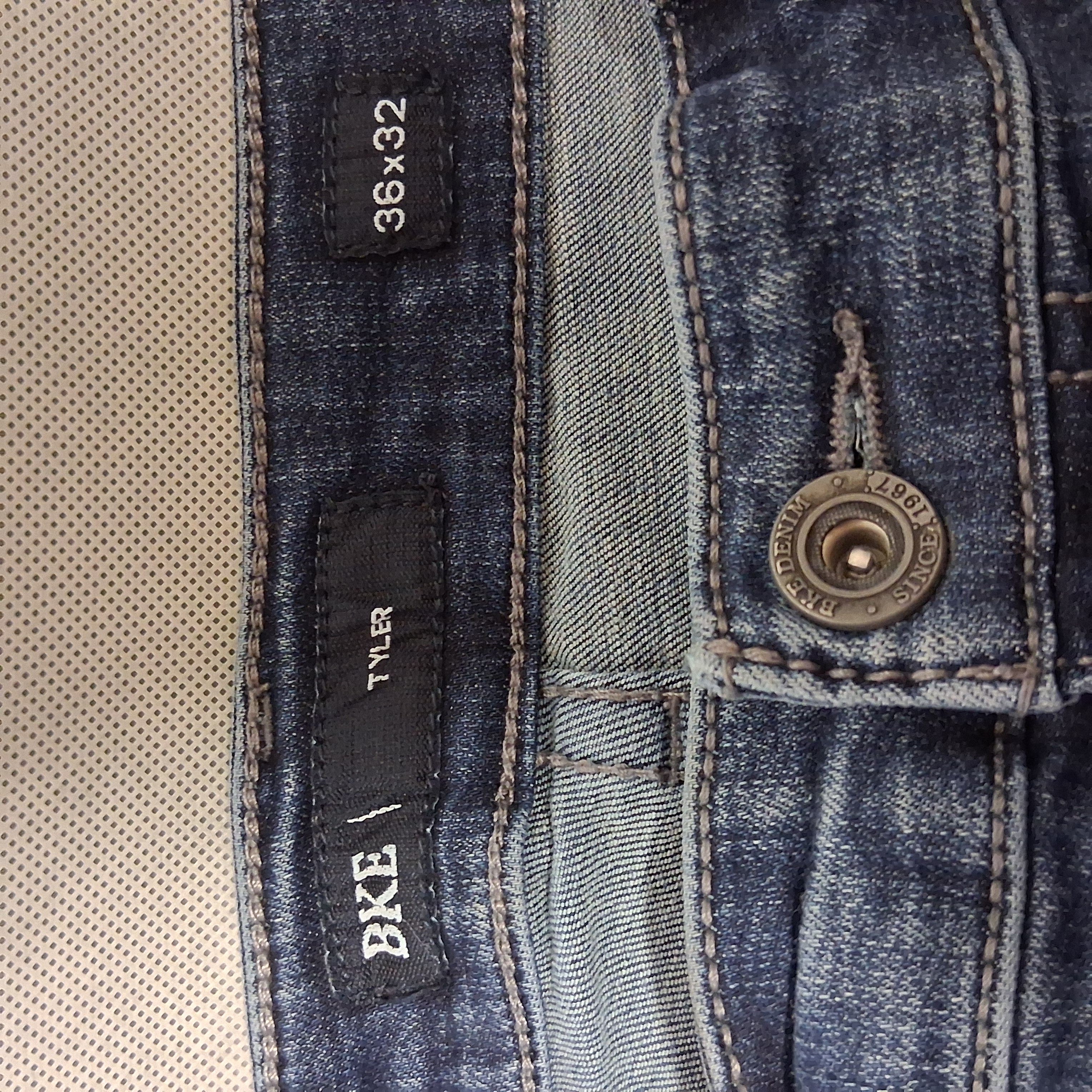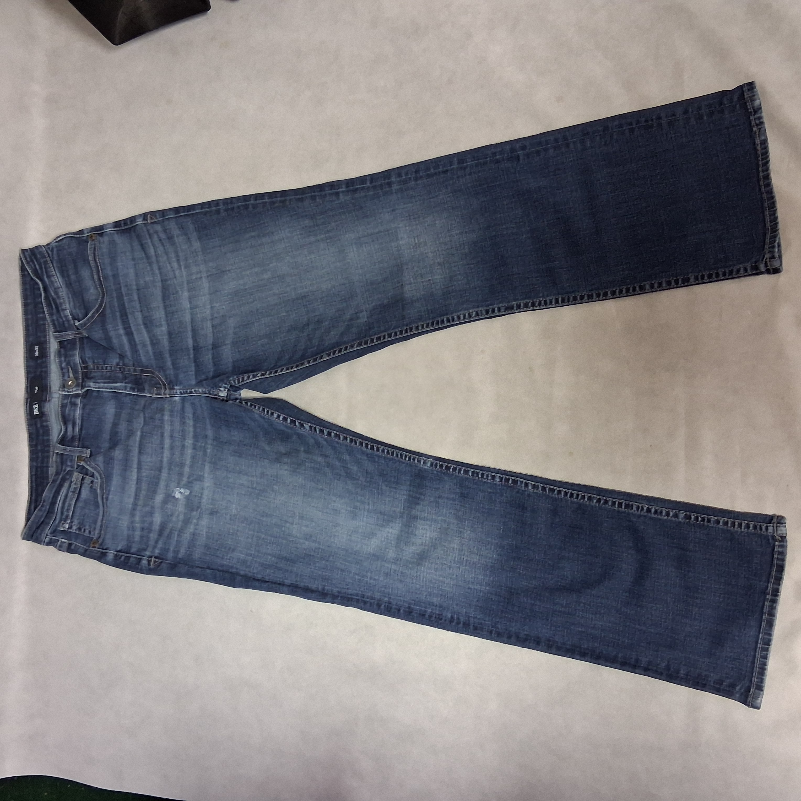 BKE Tyler Blue Jeans 36x32 Straight Leg Relaxed Fit Medium Washed Denim Hole