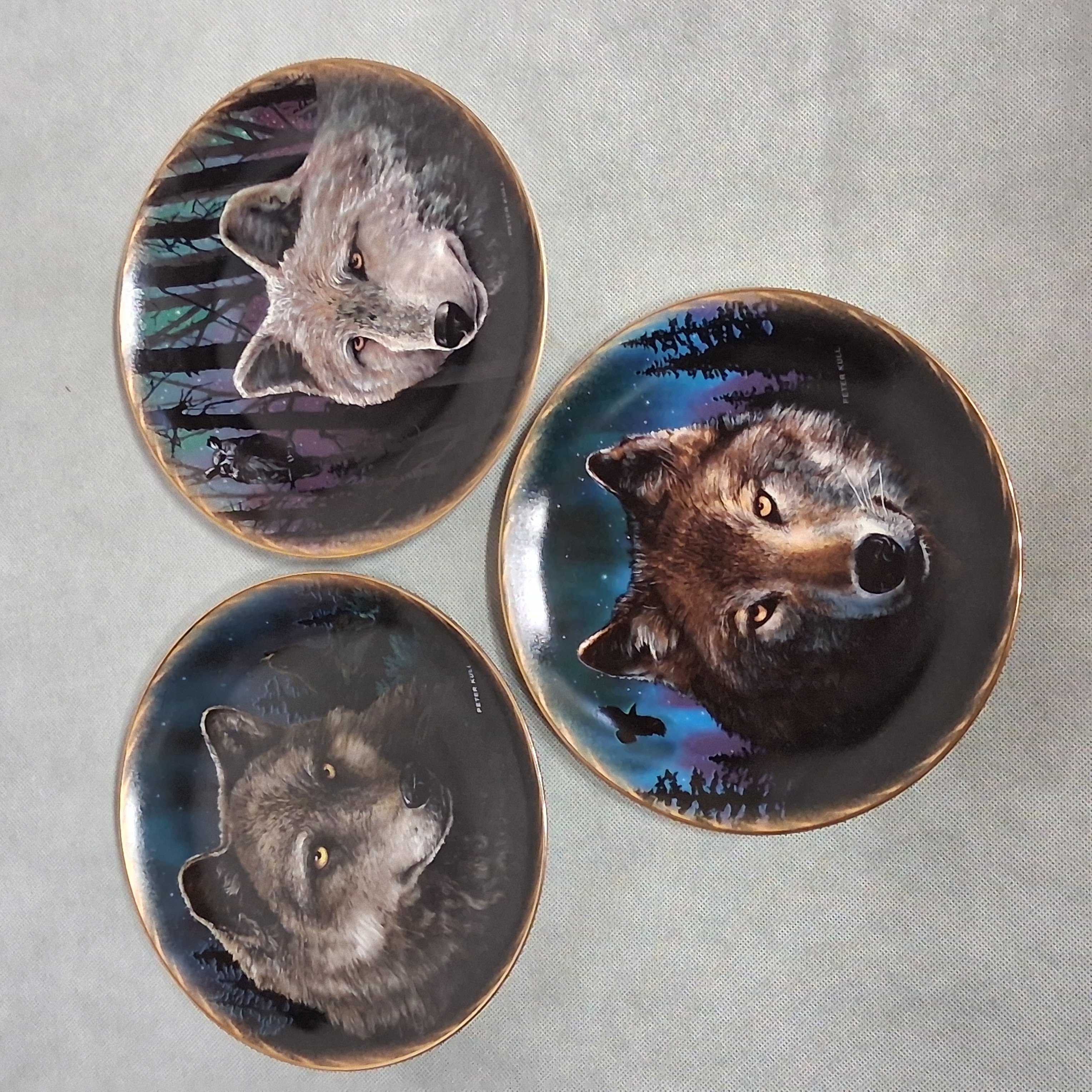 Bradford Exchange Wolf Plates 3 (1-3) Profiles of the Night by Peter Kull 8"