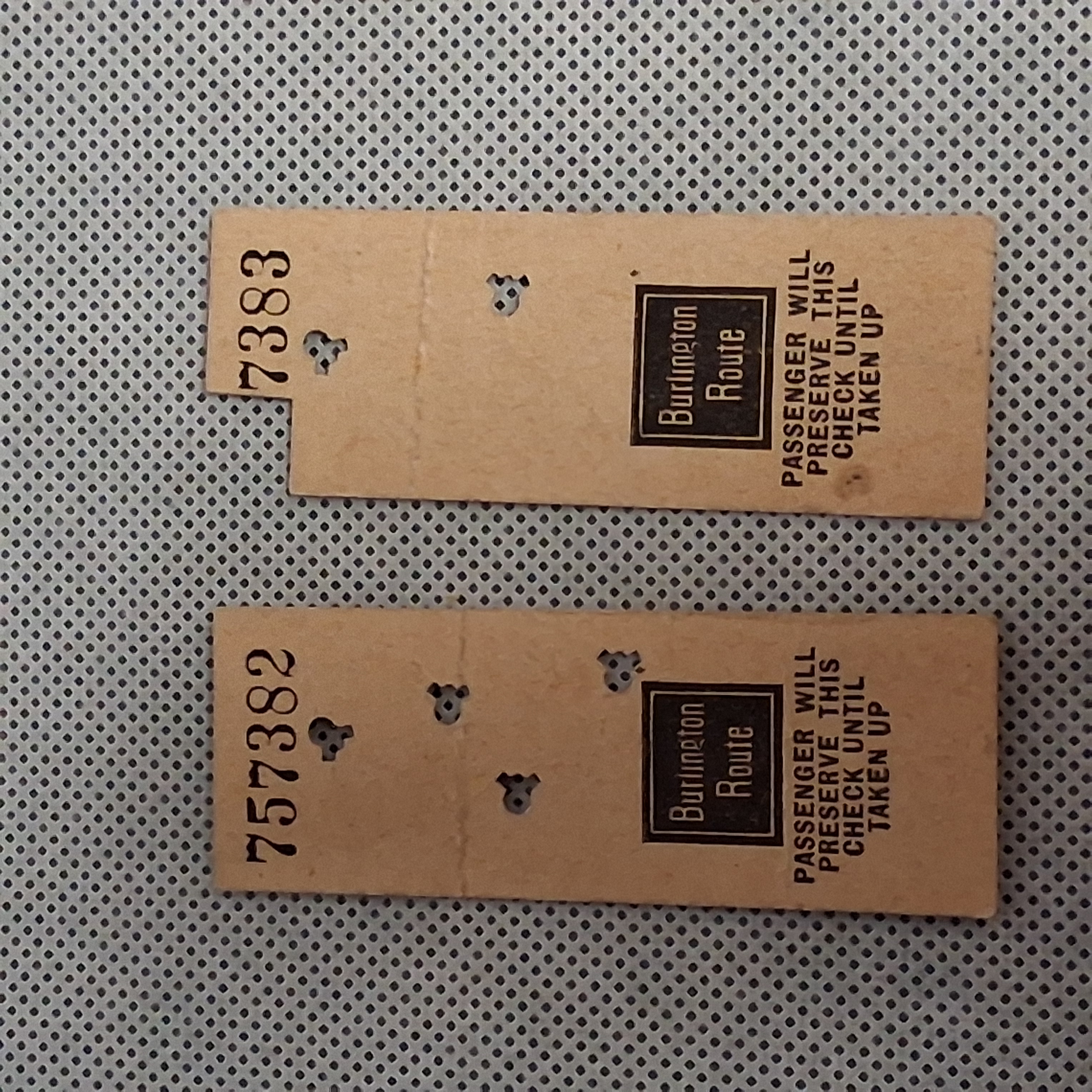 Burlington Route Ticket Check Stubs 757382 757383