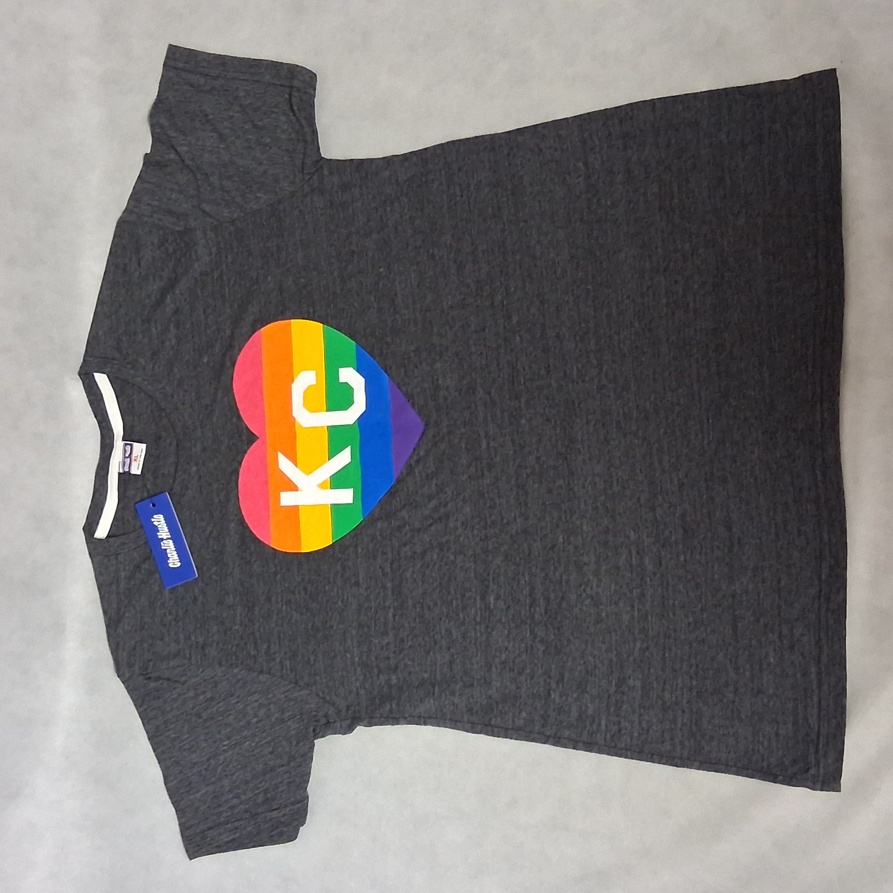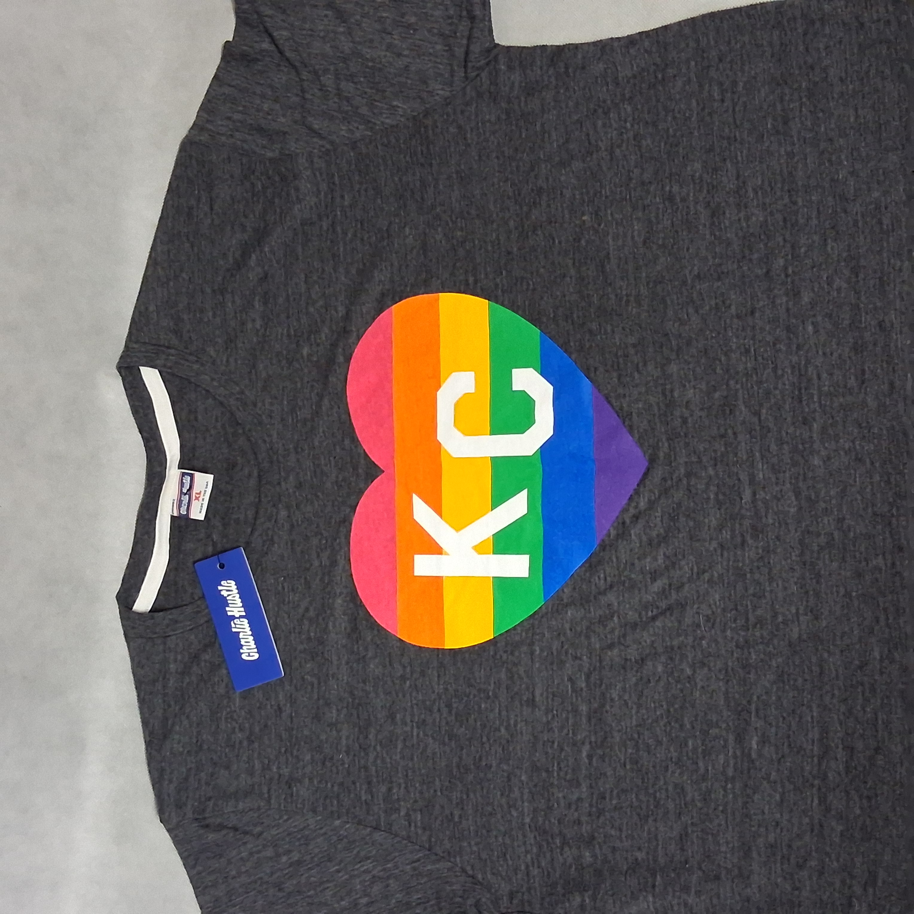 Charle Hustle KC Pride Heart T-Shirt XL Gray New With Tags