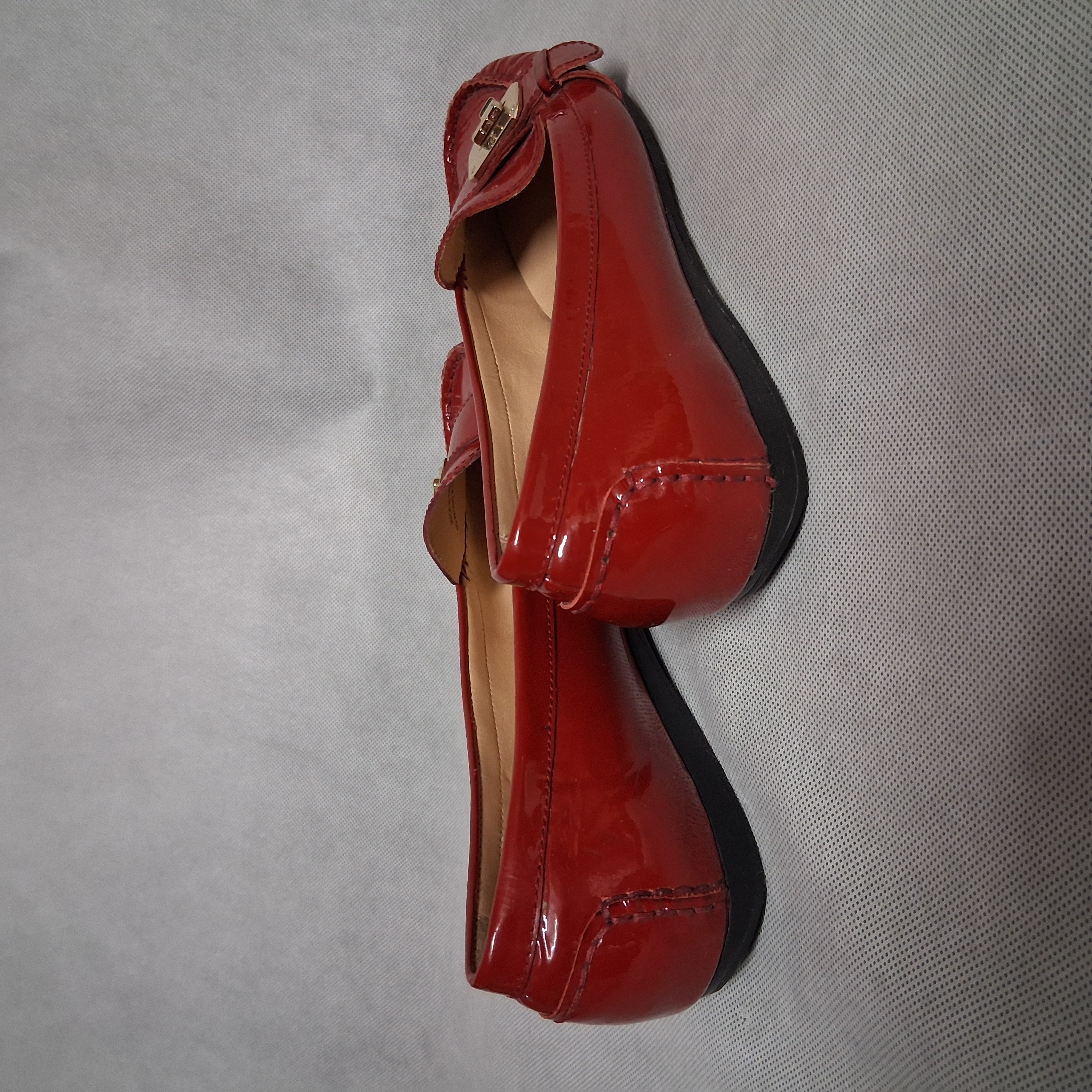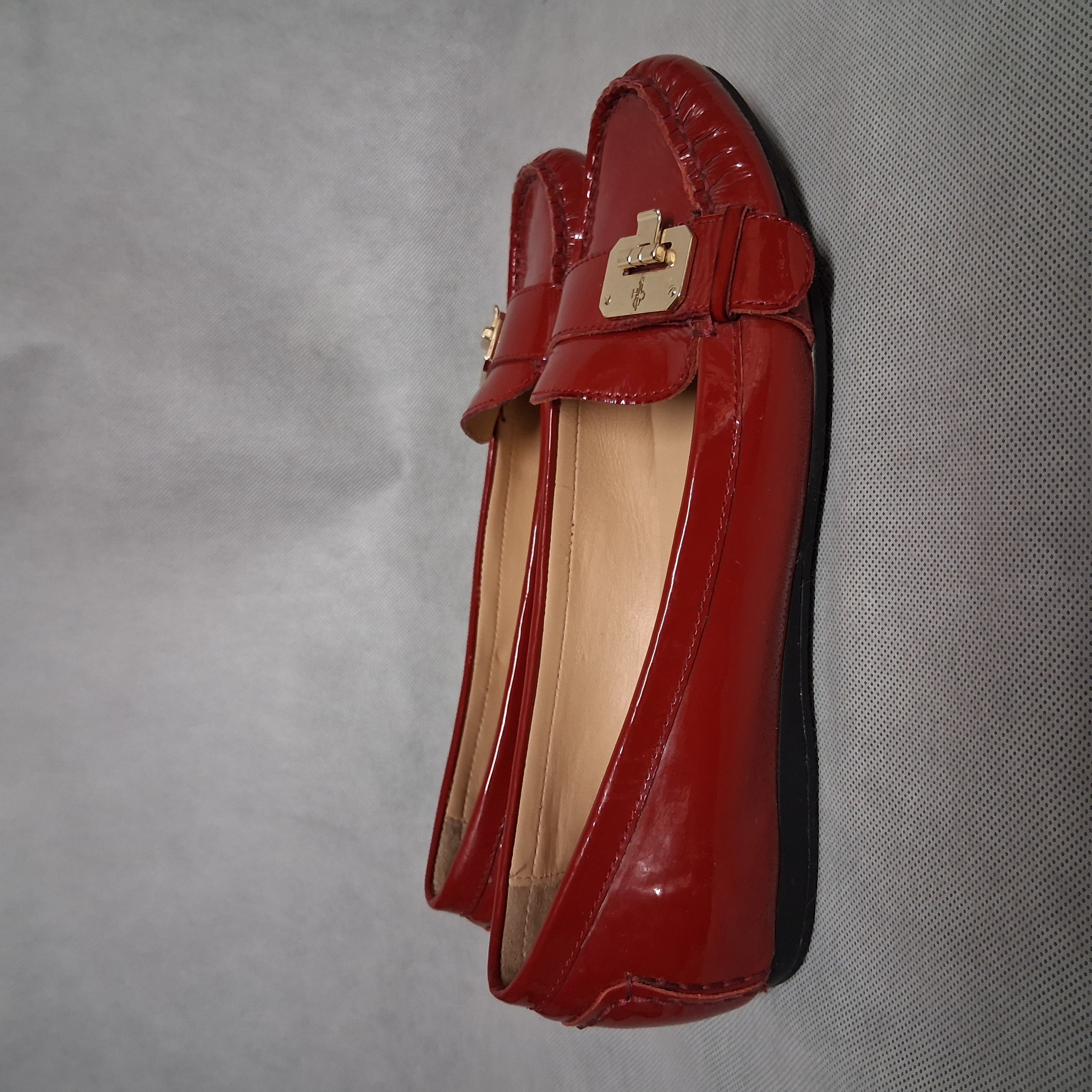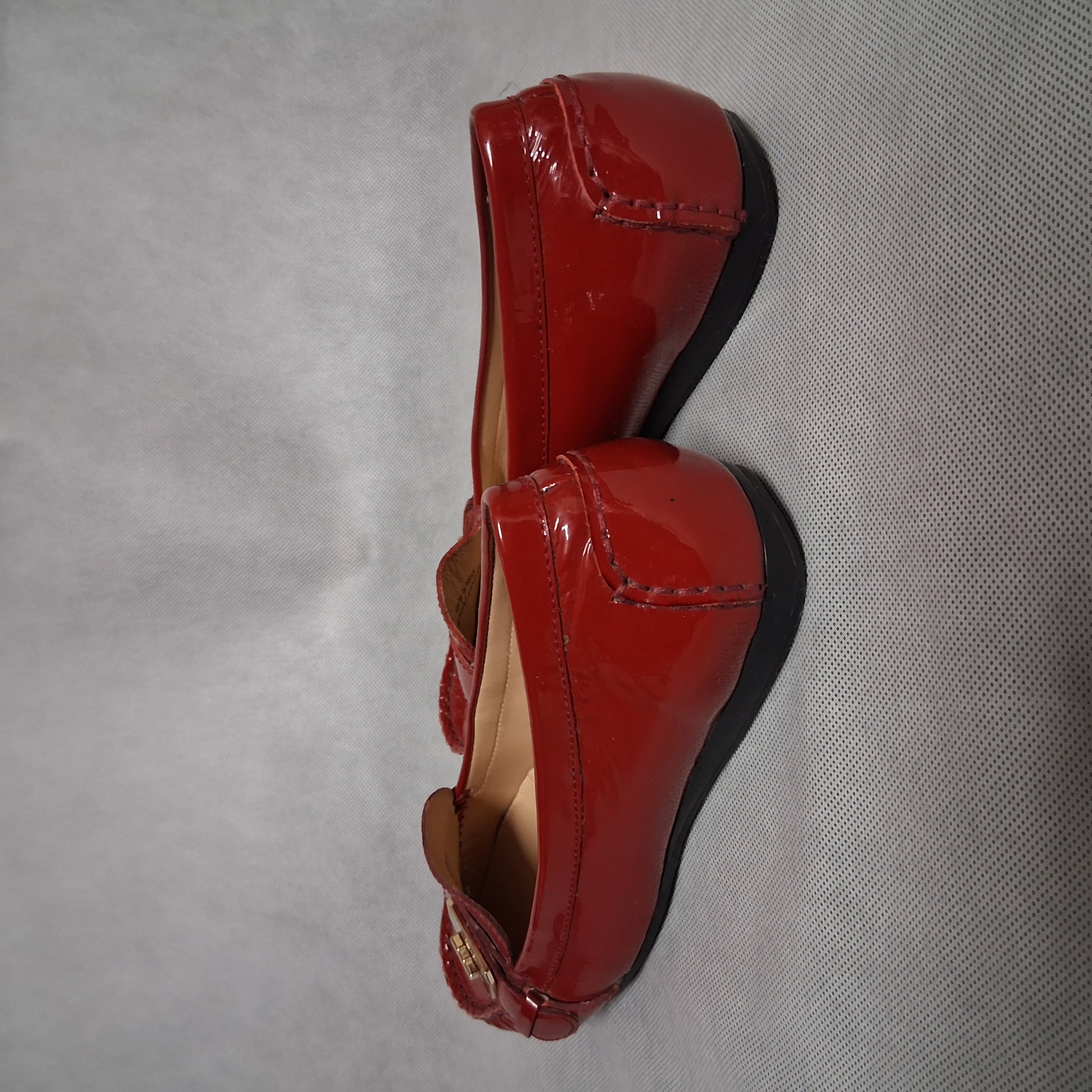 Cole Haan Red Patent Leather Driving Loafers 8.5B Gold Buckle NikeAir Sole