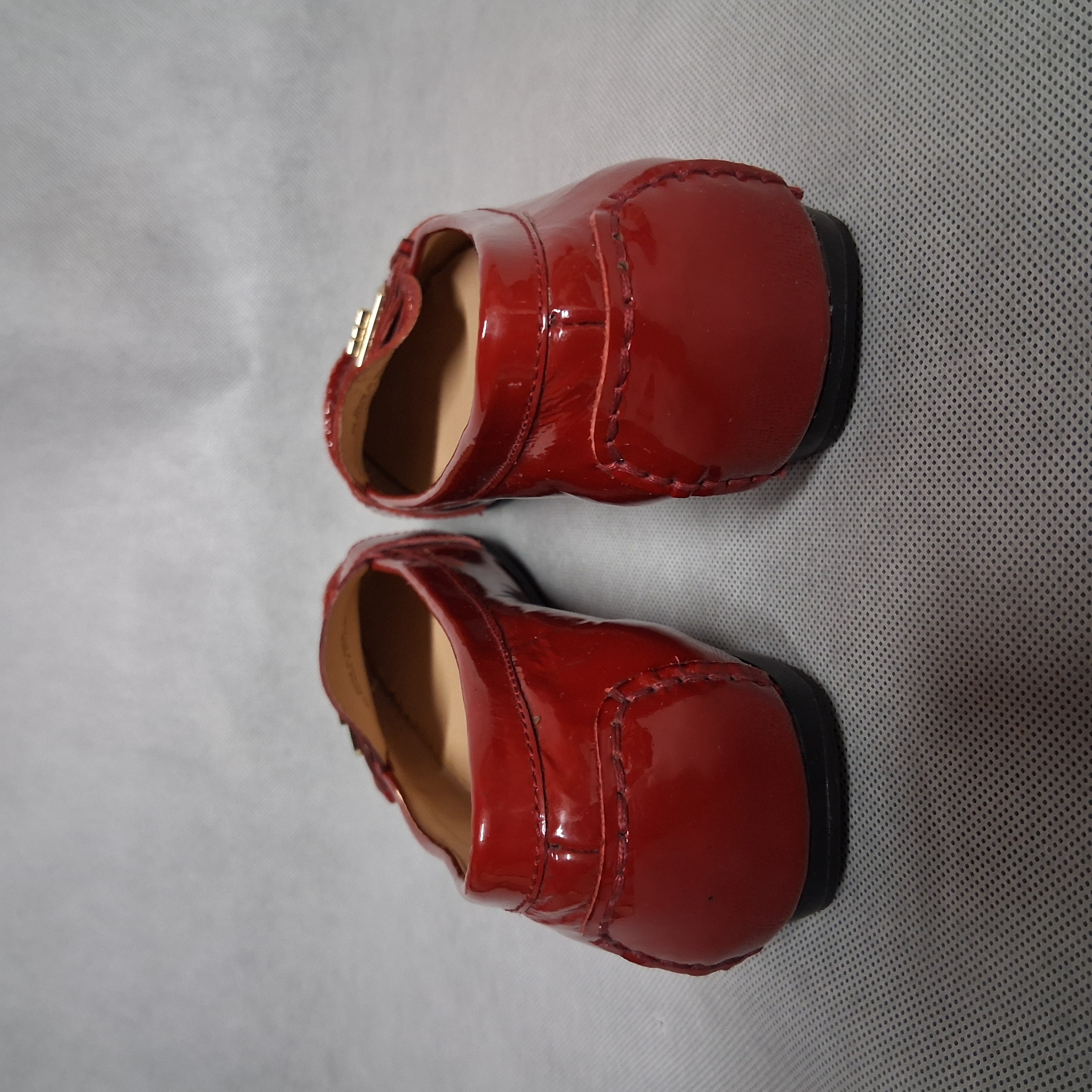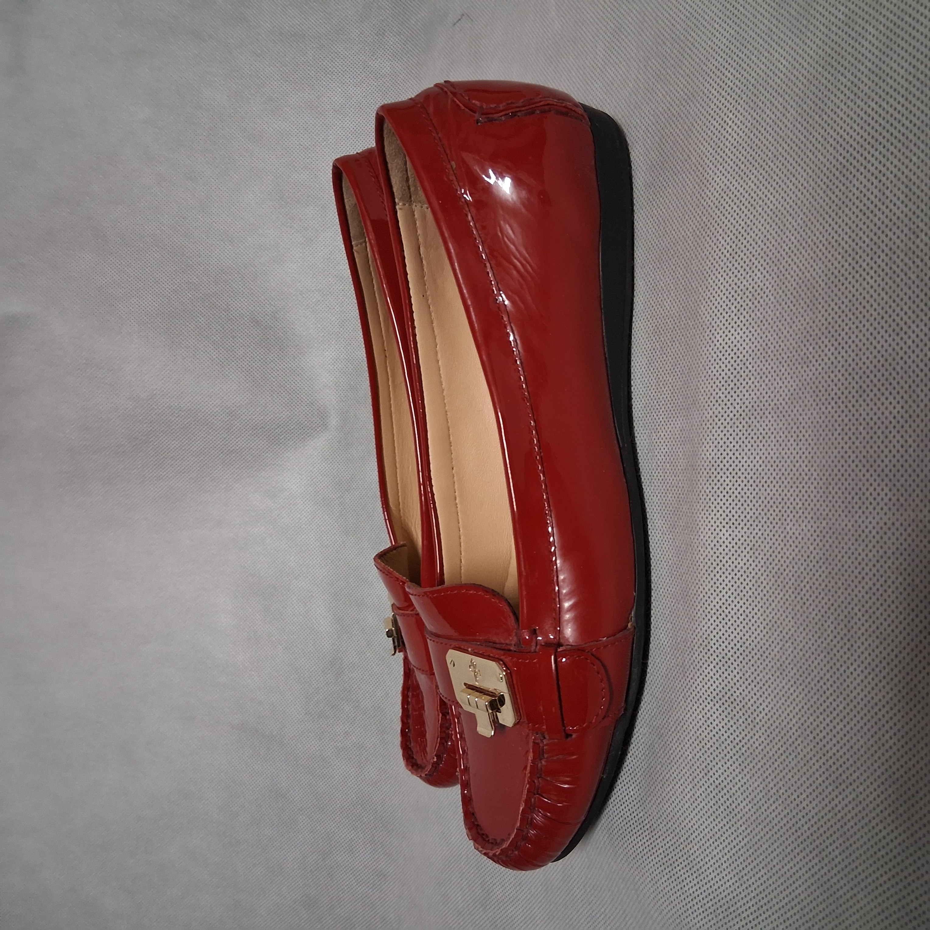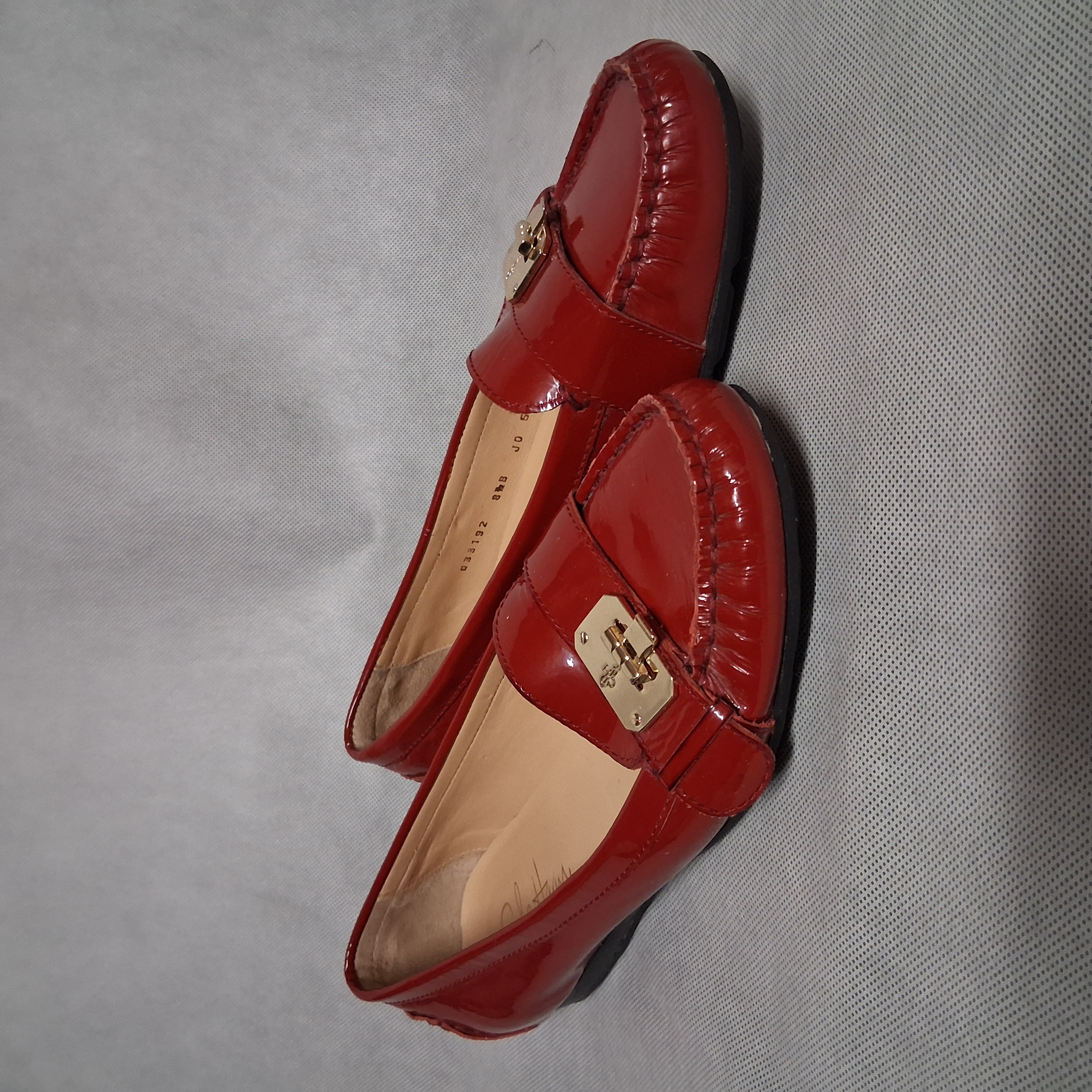 Cole Haan Red Patent Leather Driving Loafers 8.5B Gold Buckle NikeAir Sole