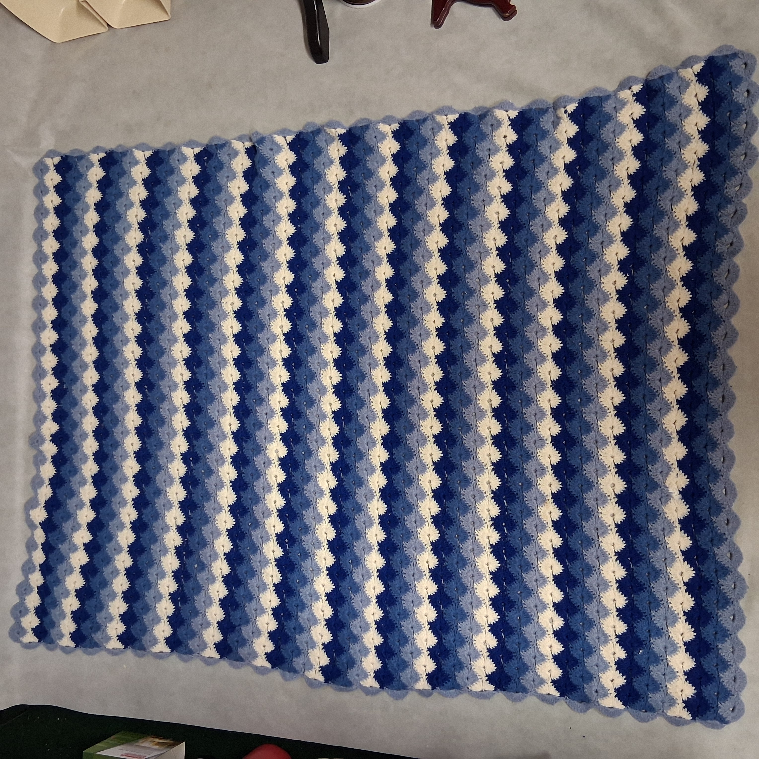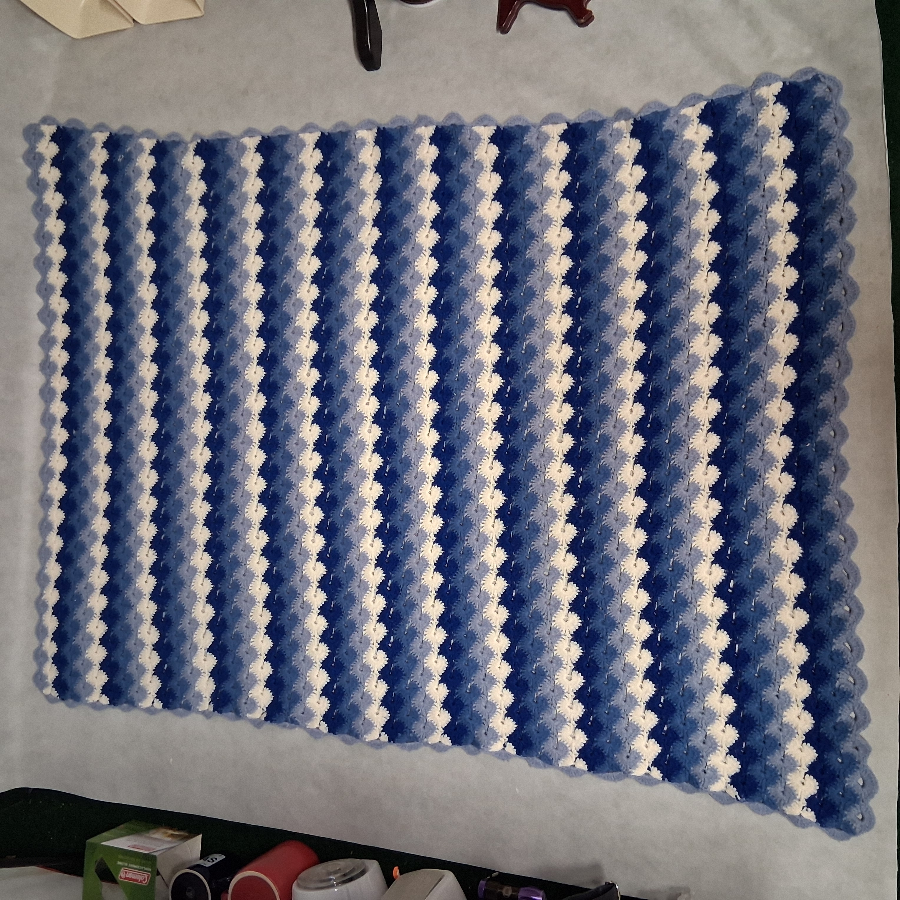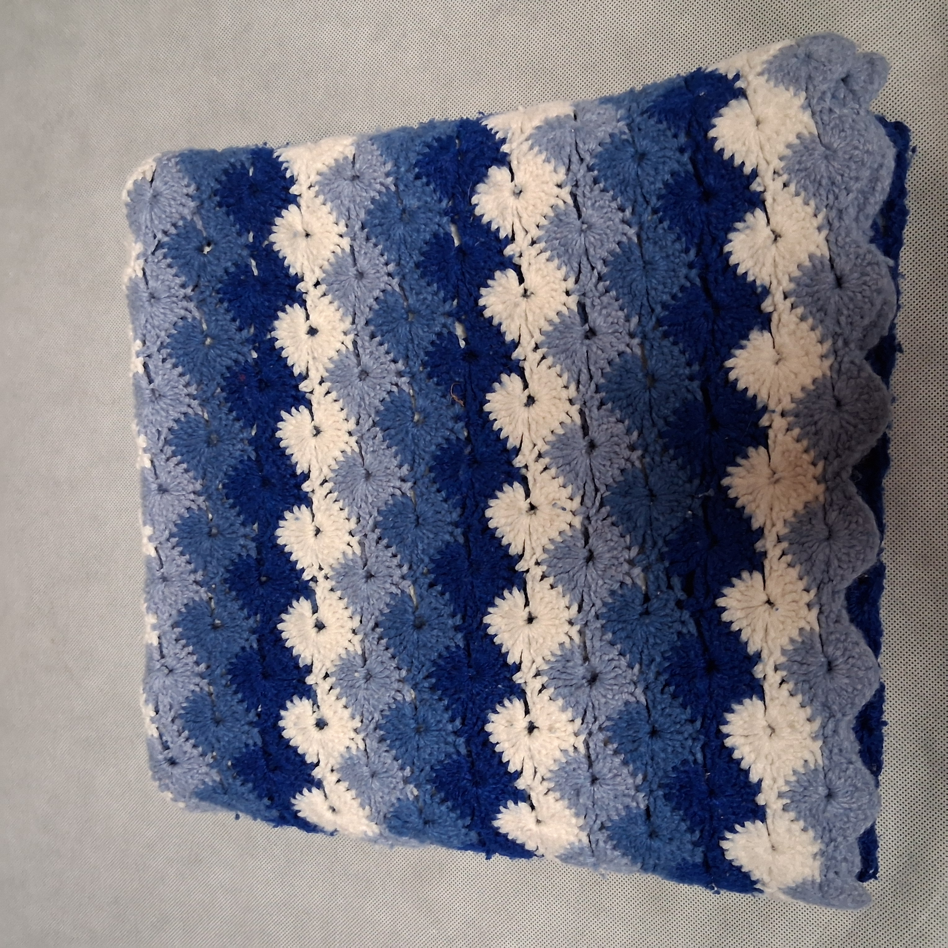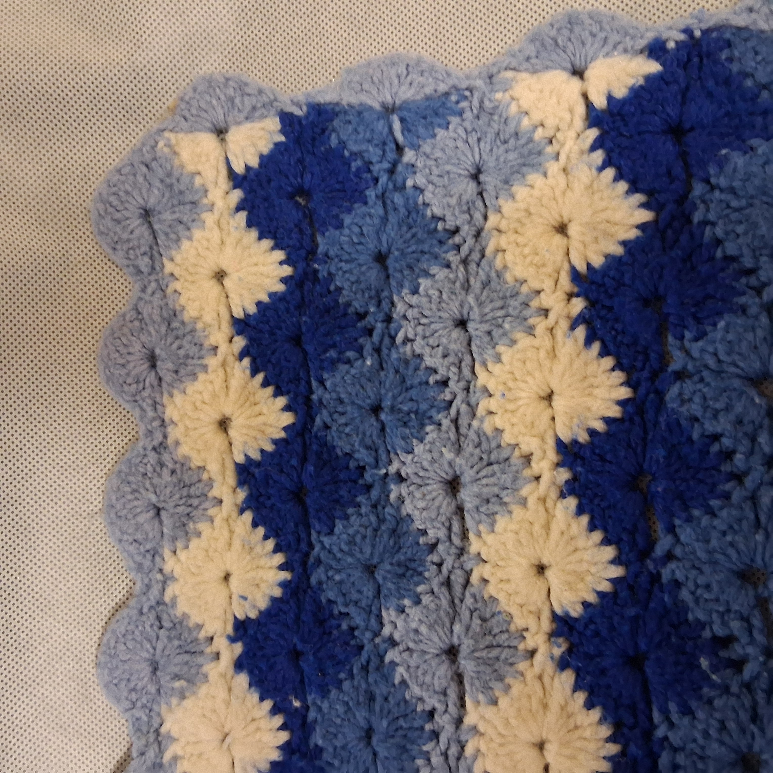 Hand Stitched Striped Afghan 38" x 52" Blue White
