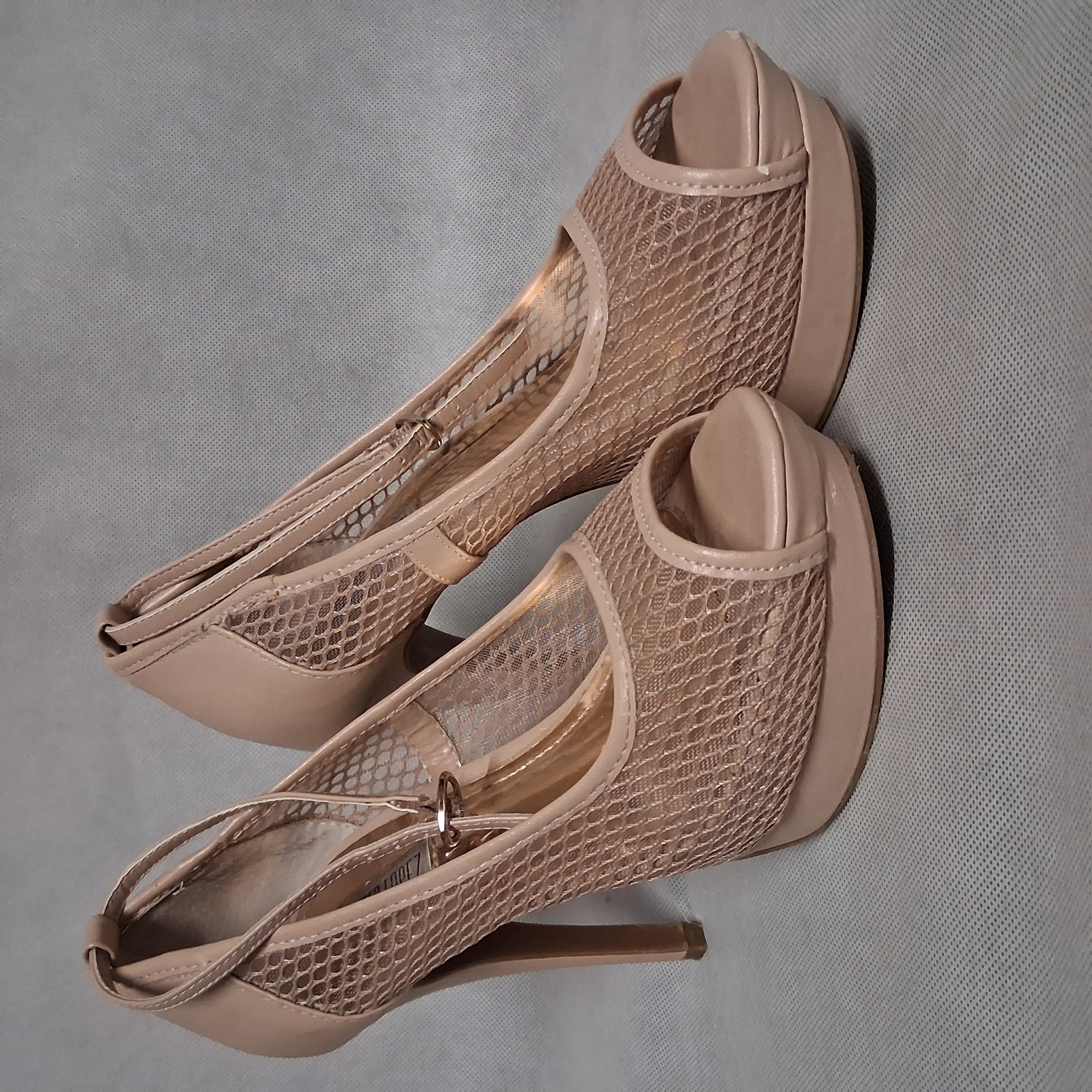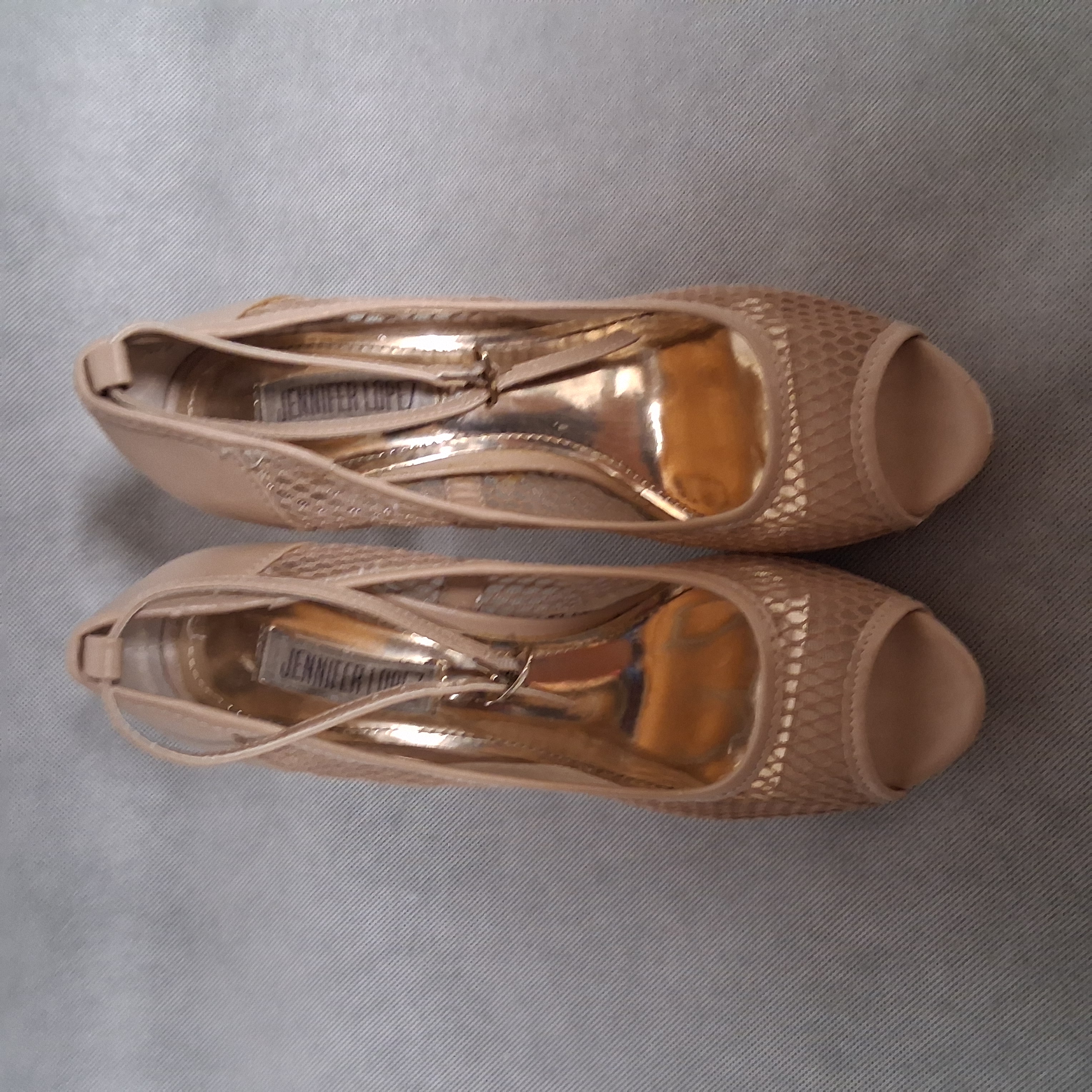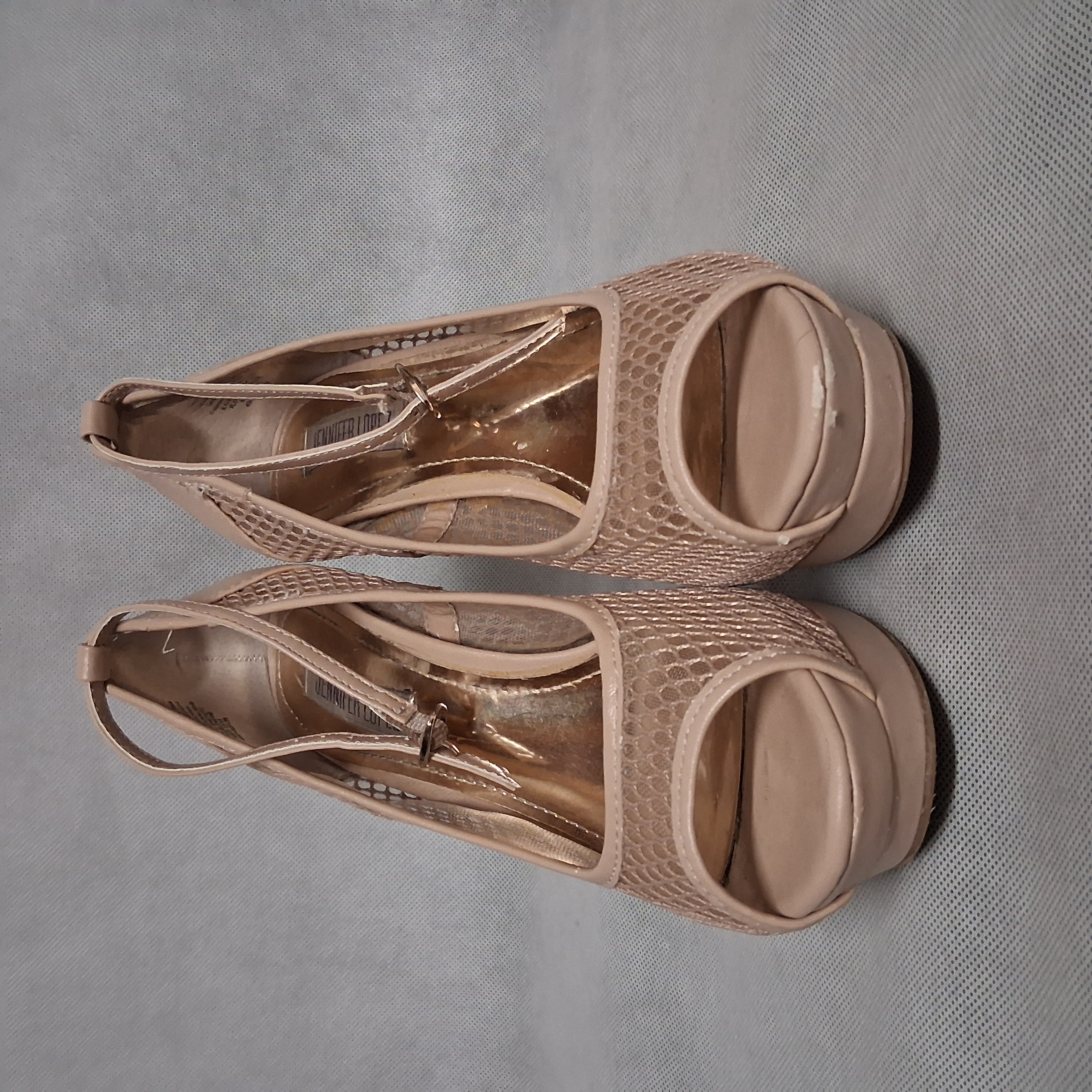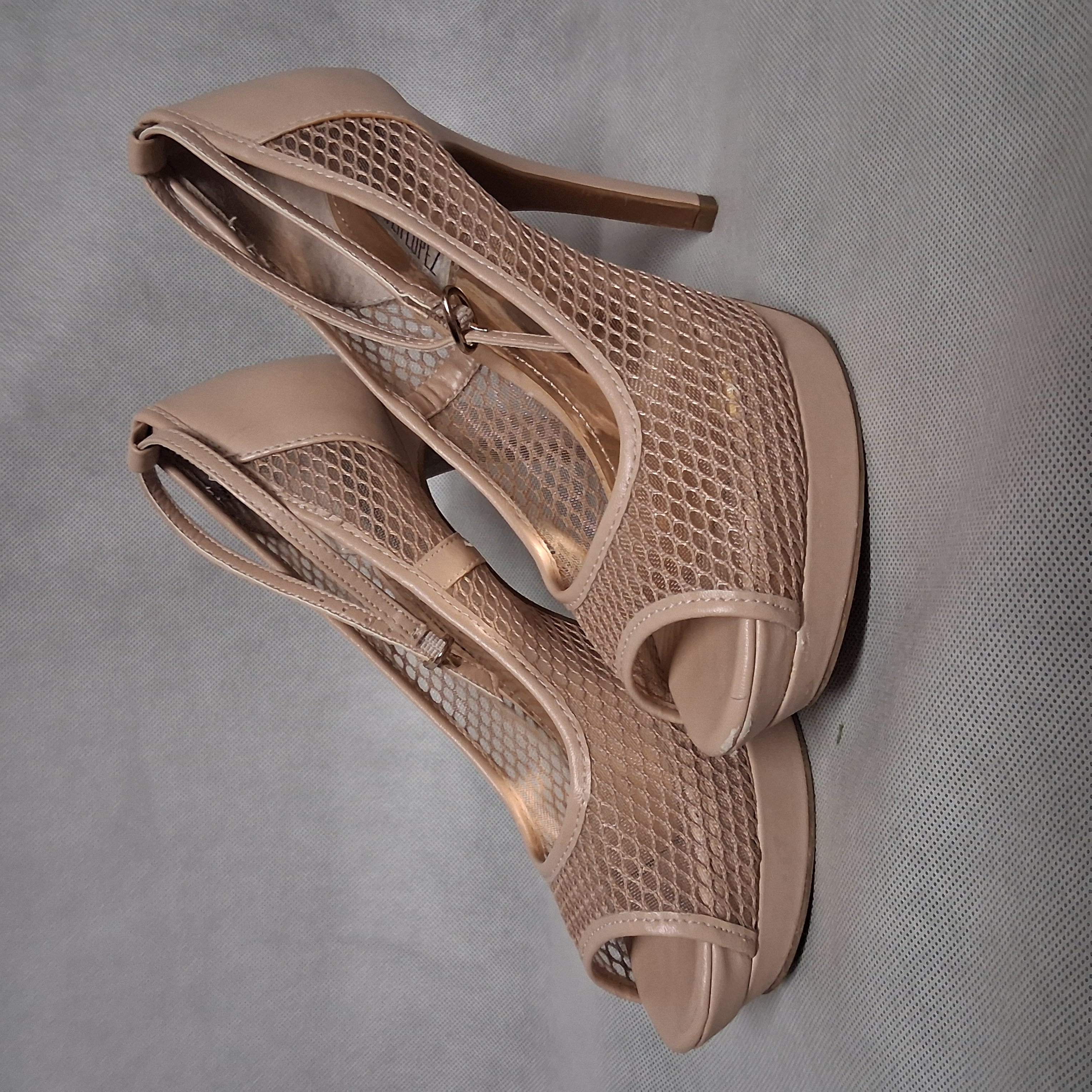 Jennifer Lopez Star Nude Peep Toe Platform Stiletto Pumps Heels 6.5 Ankle Strap