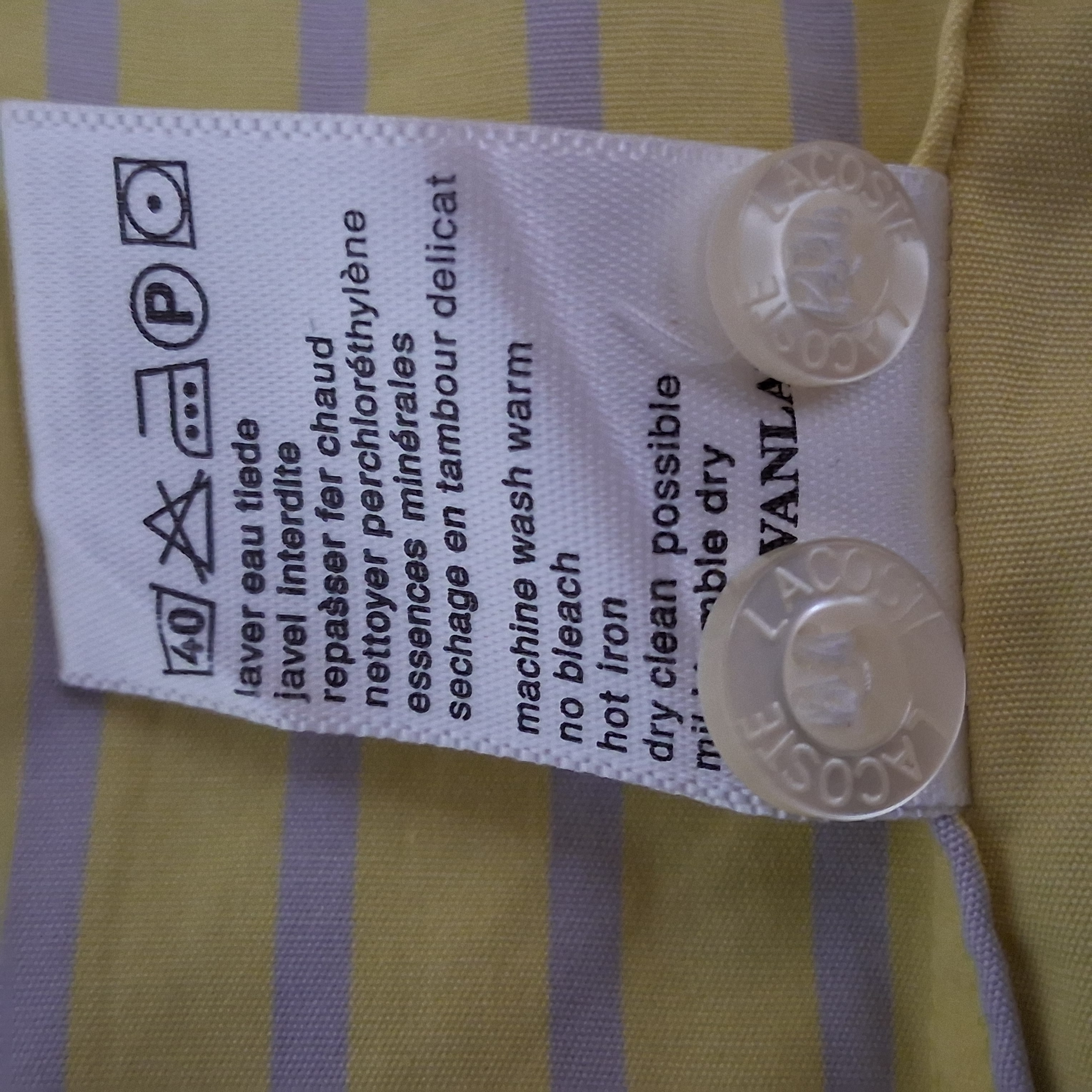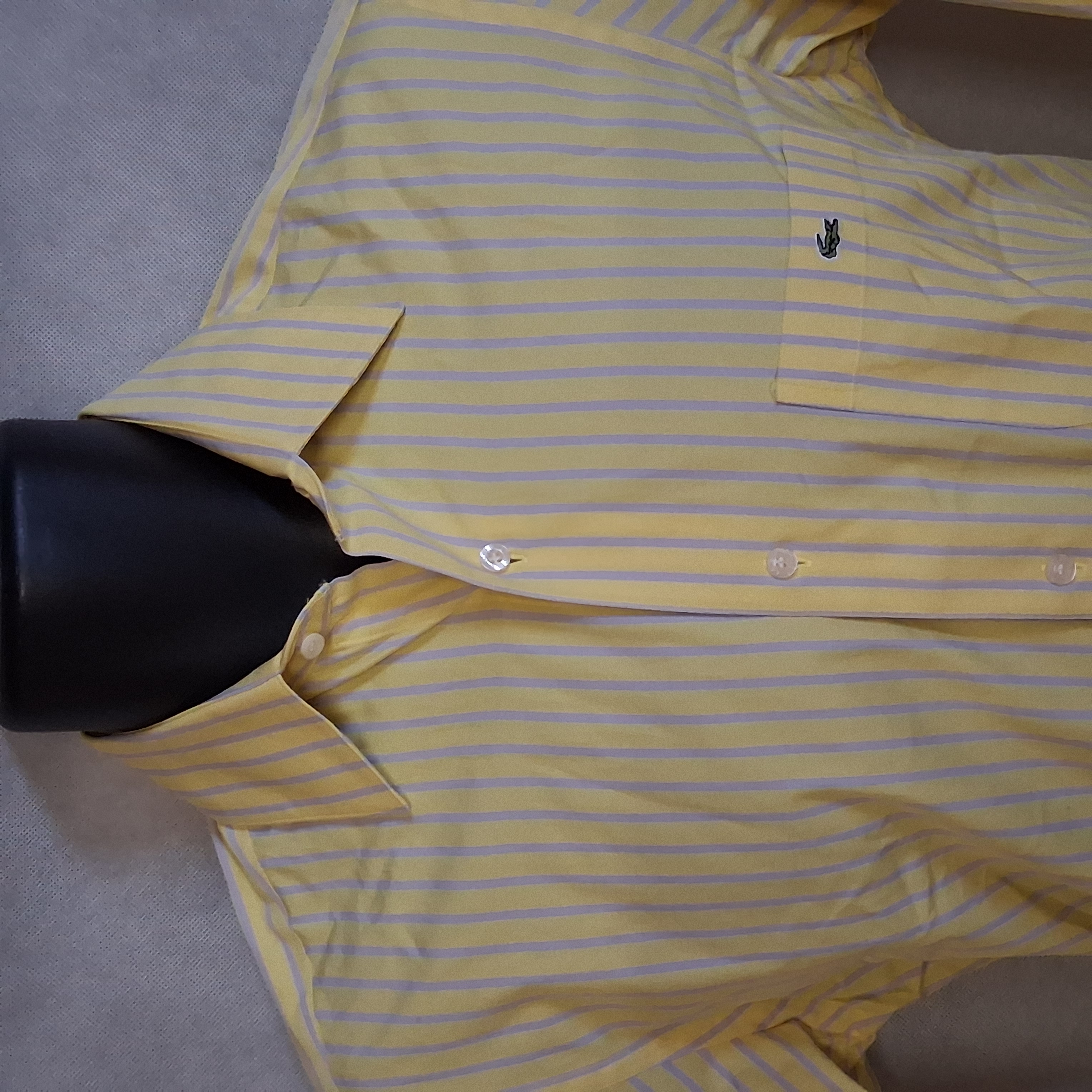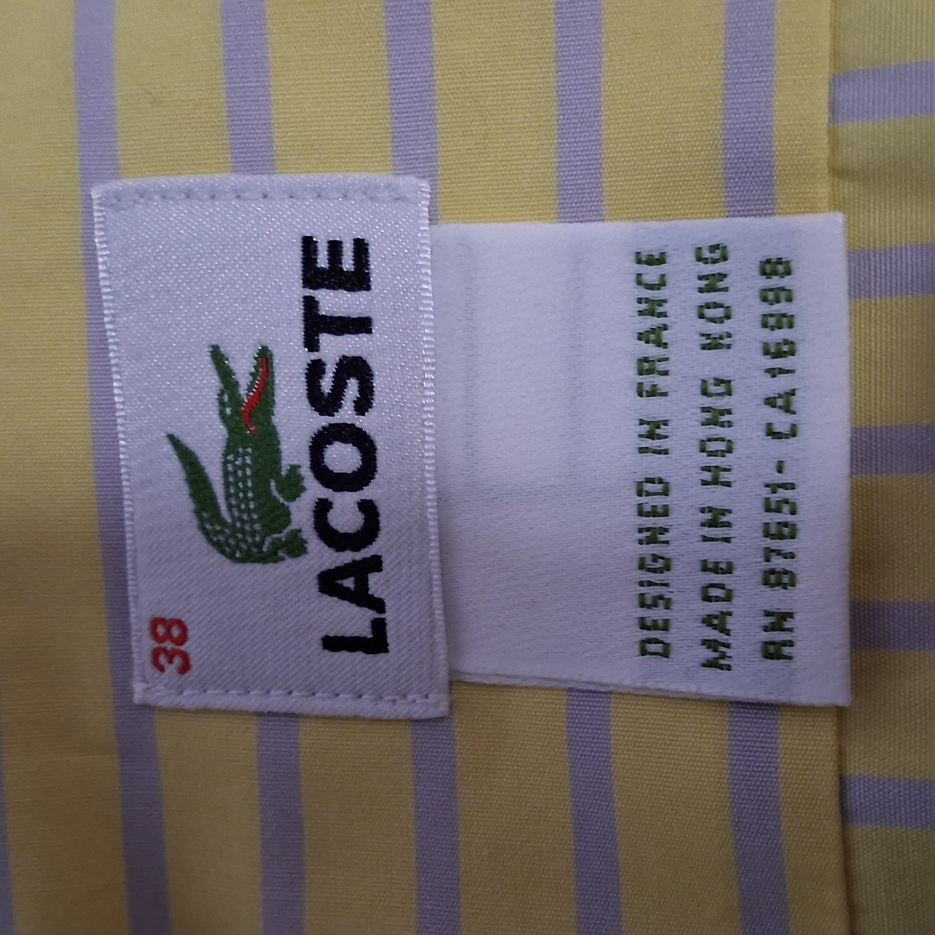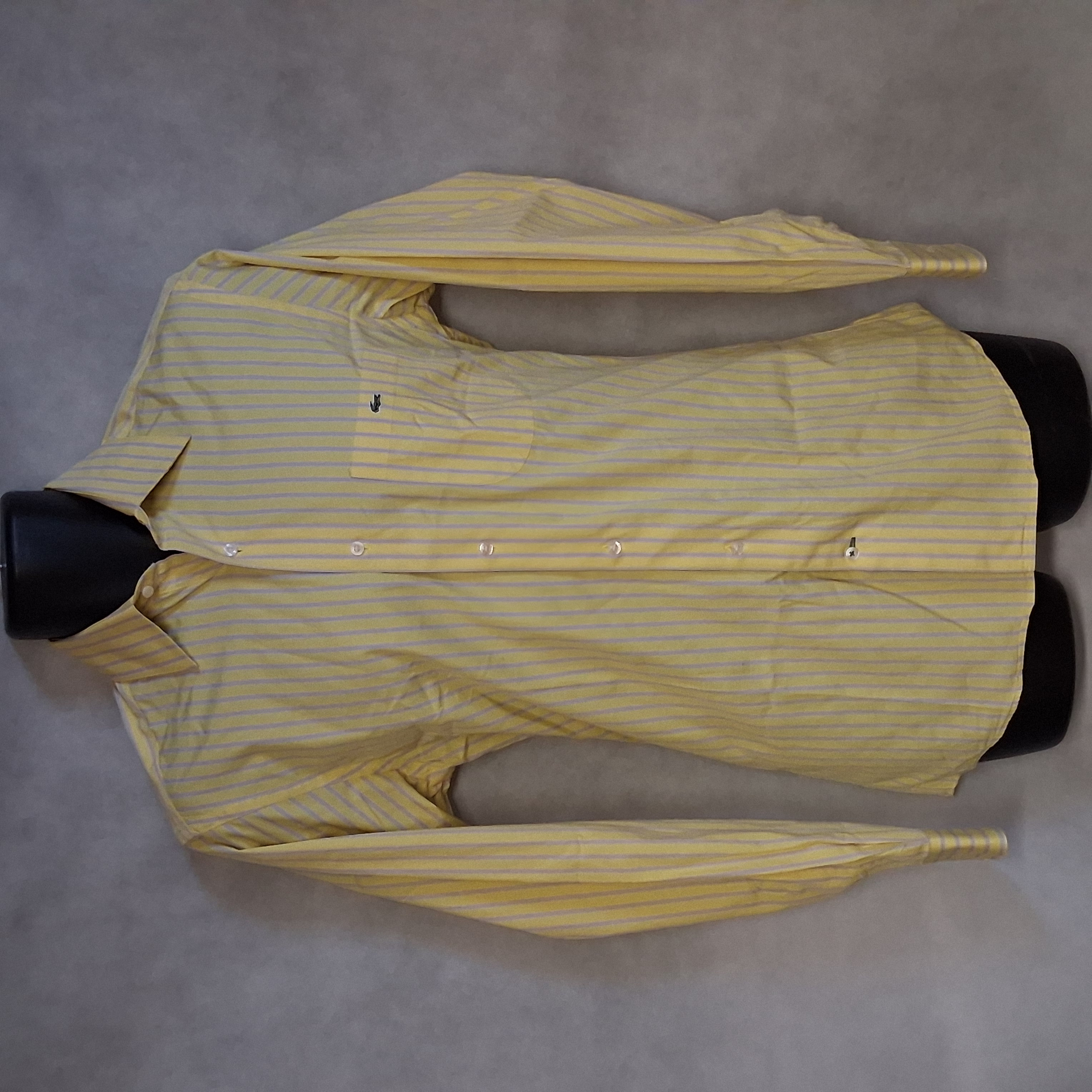 Lacoste Button Up Shirt Men's Small 38 Yellow Striped Long Sleeves