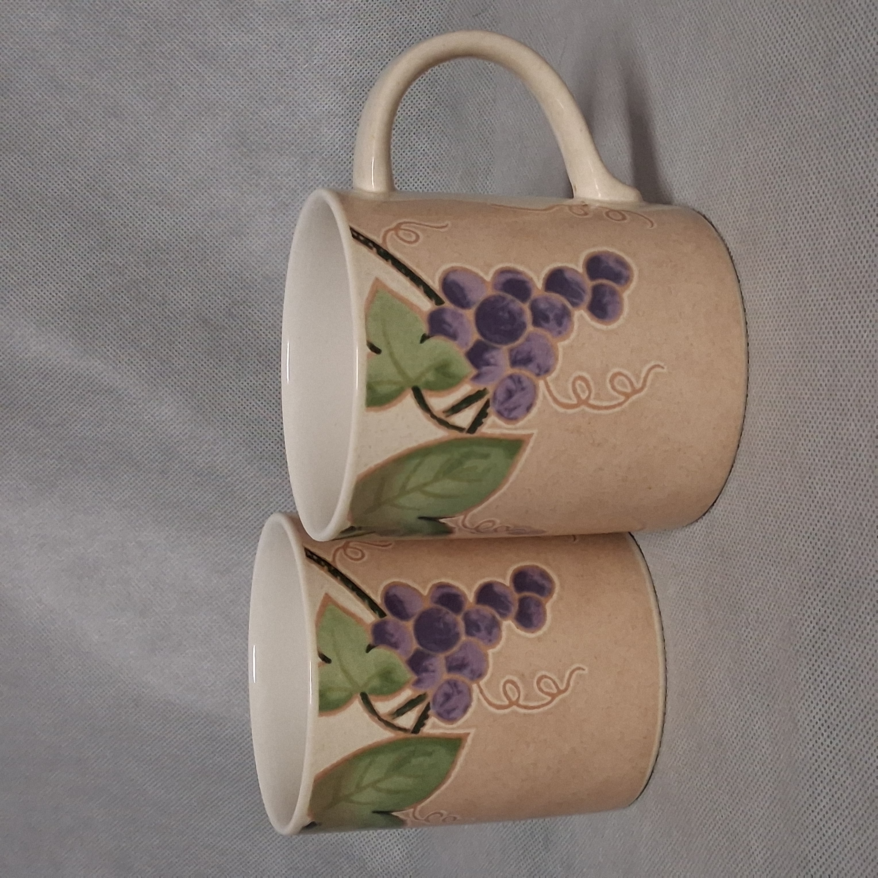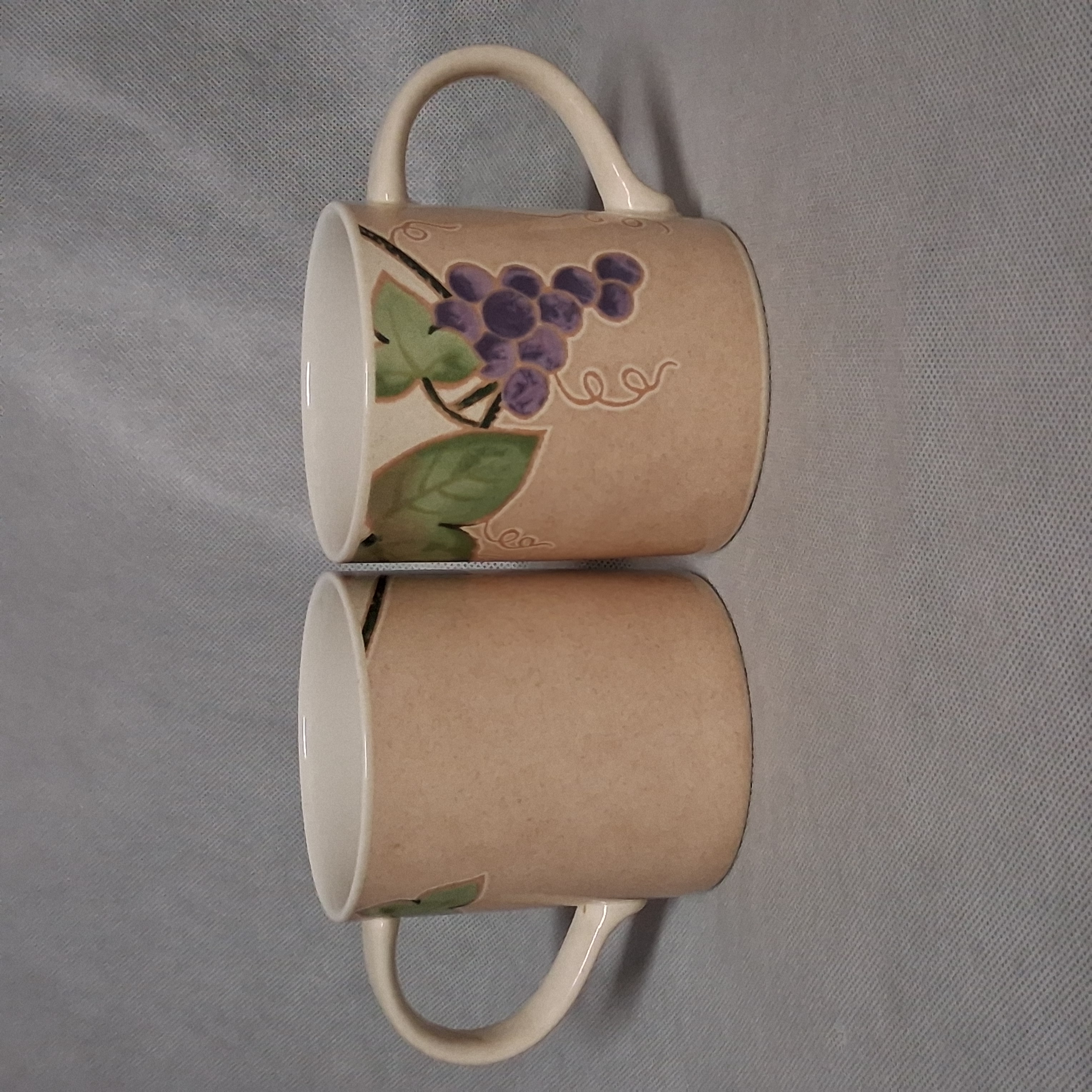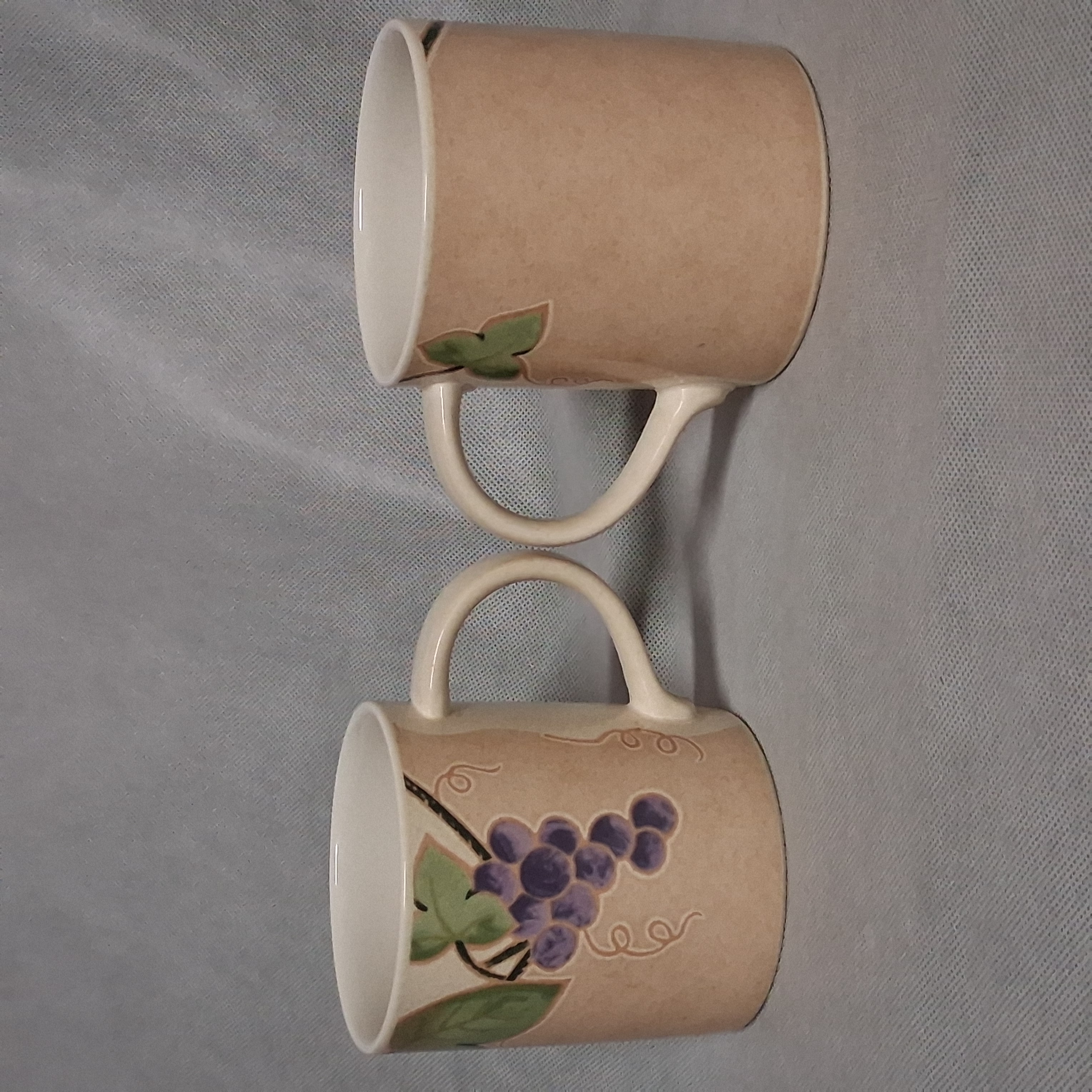 Mikasa Chablis Coffee Mugs 2 Beige Grape 4" Tall CW409
