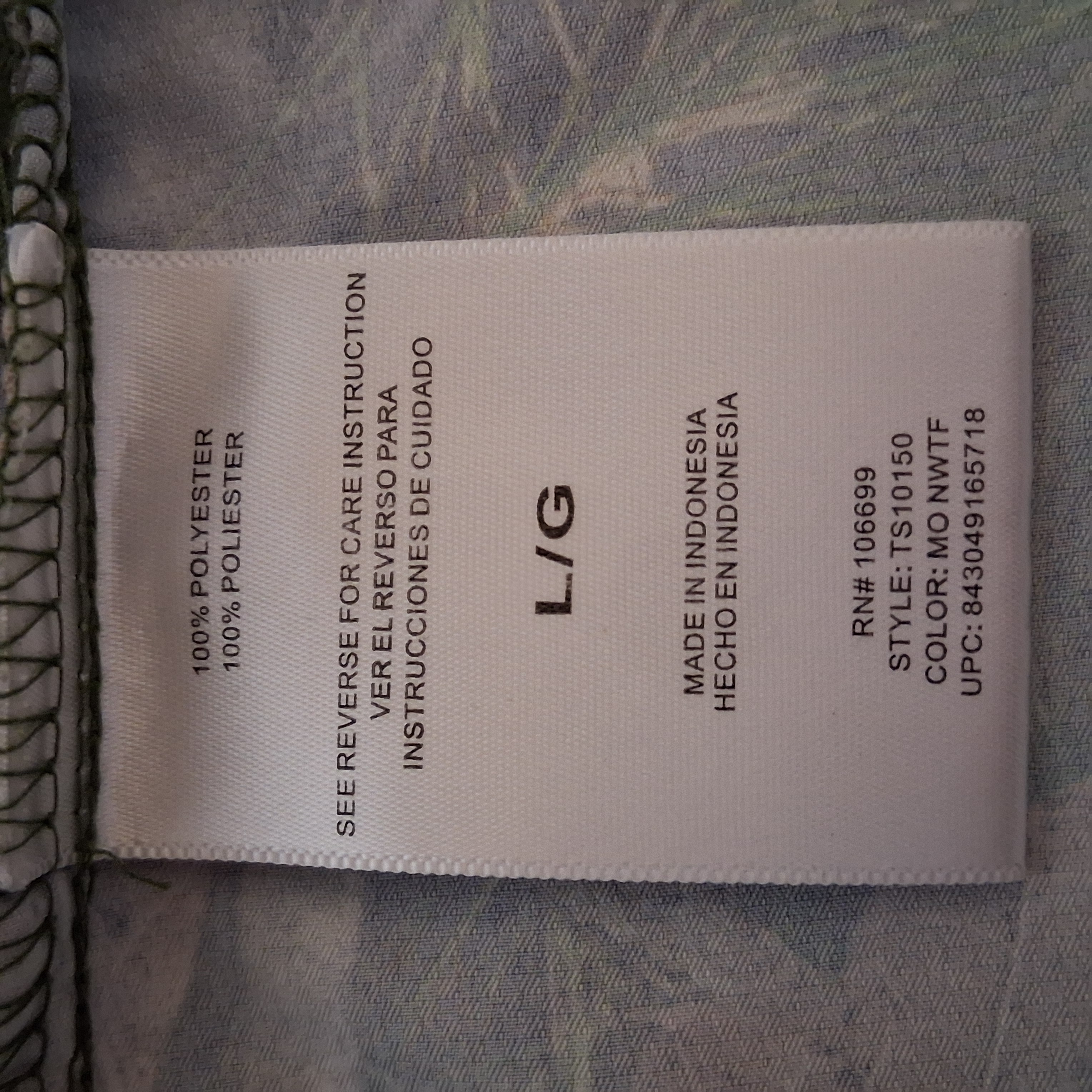 Mossy Oak Camo Shirt Men's Large Button Front Vented Back Long Sleeve Camouflage