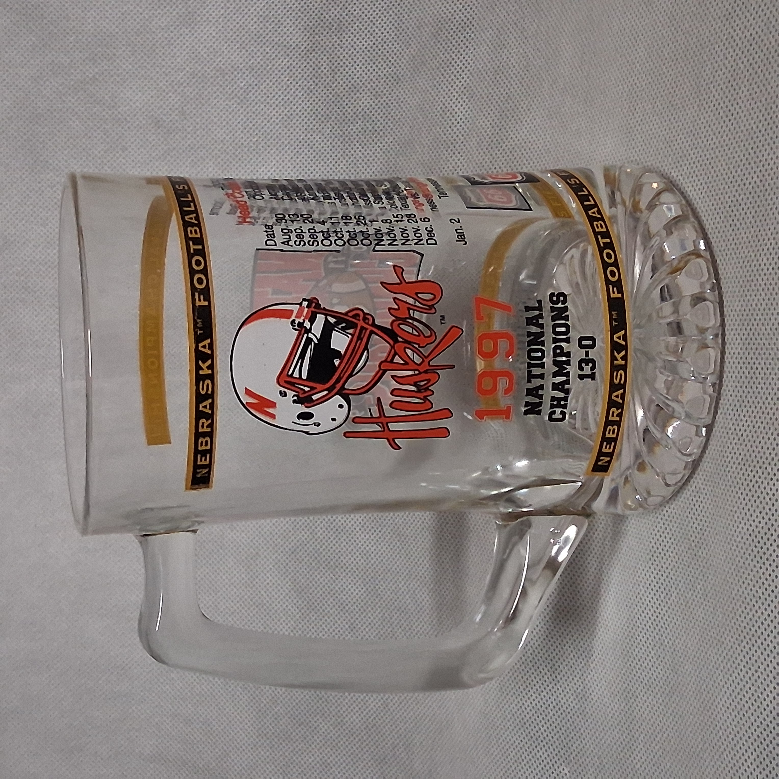 Nebraska Cornhuskers 1997 National Champions Beer Mug Clear Glass 5.5" Tall #39