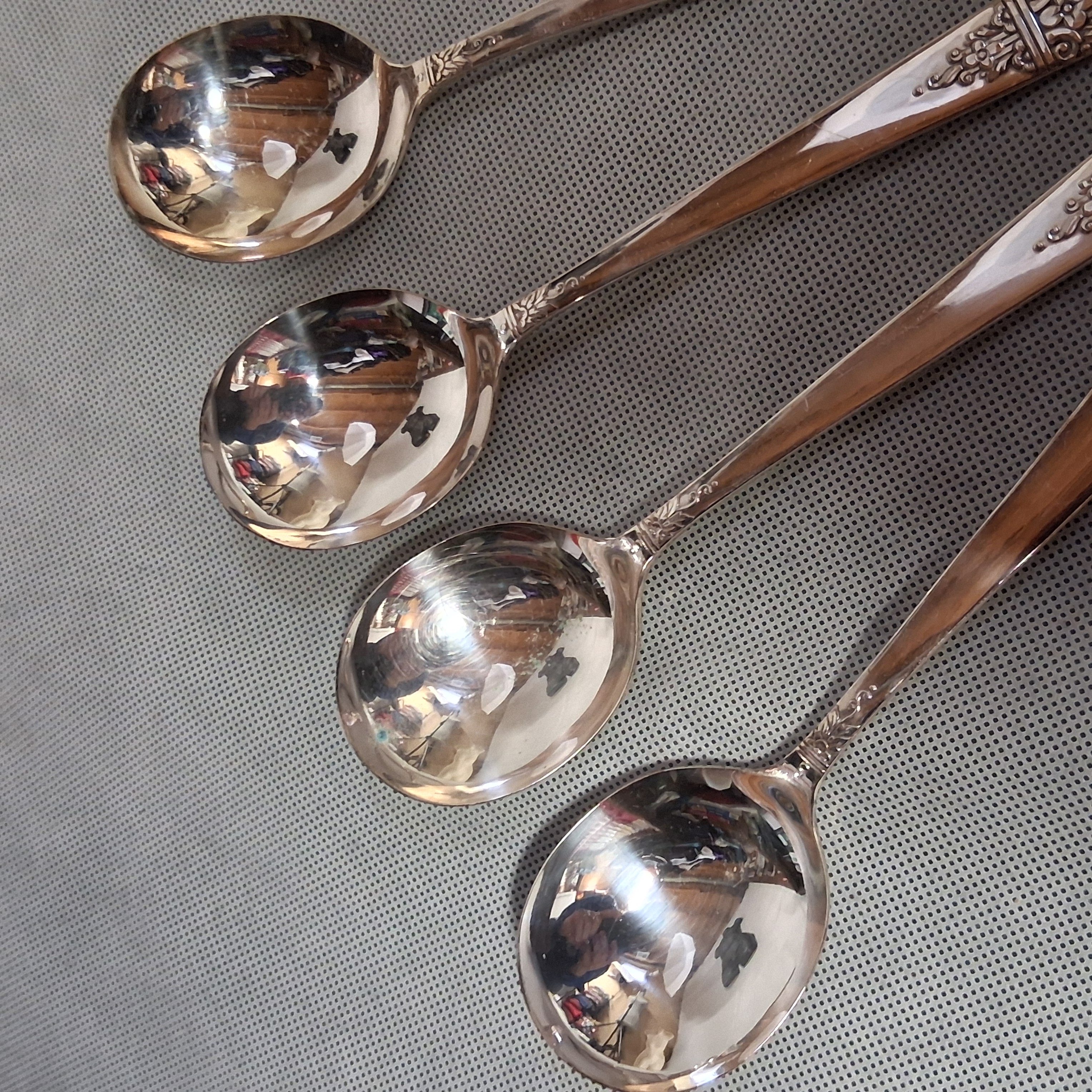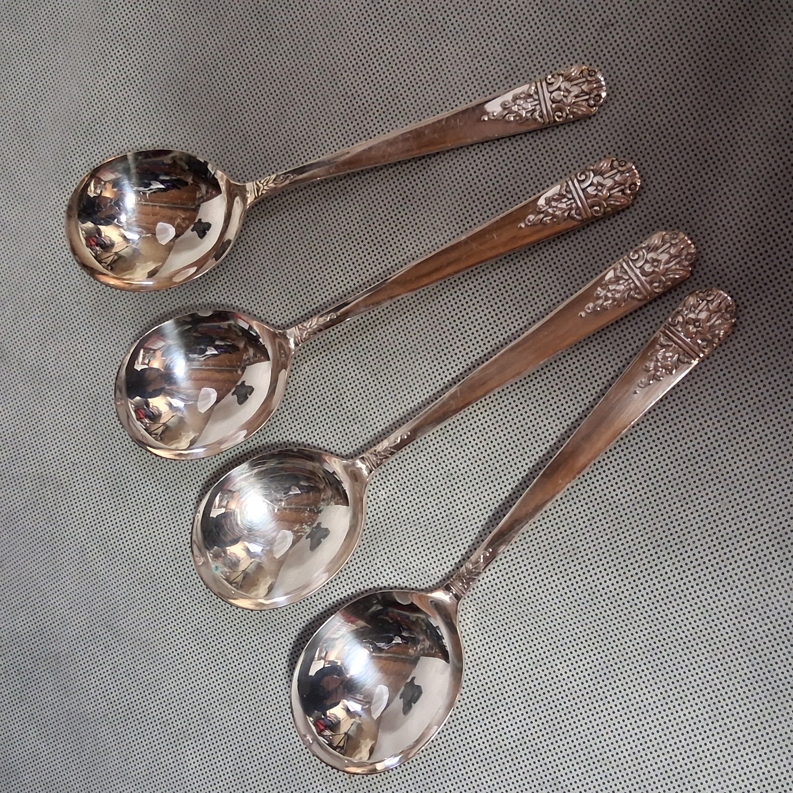 Oneida Margate 1938 Gumbo Round Bowl Soup Spoons 4 Silverplate 7 1/2" Wm Rogers