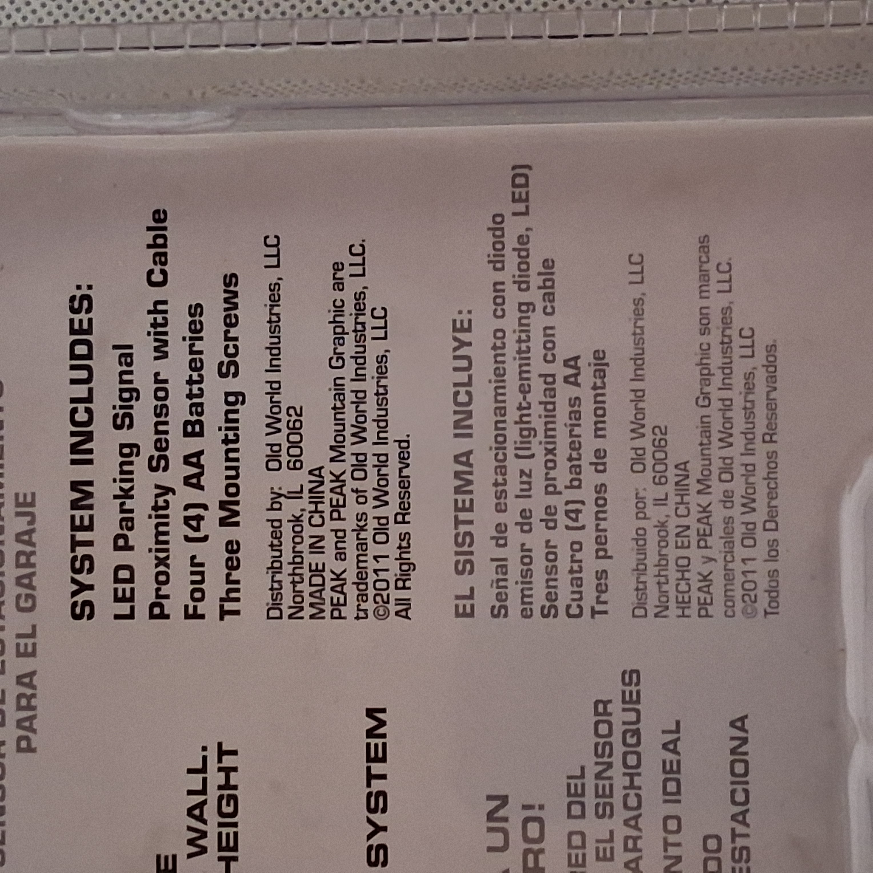 Peak Garage Parking Sensor Kit New In Pkg Sensor Batteries Instructions Hardware