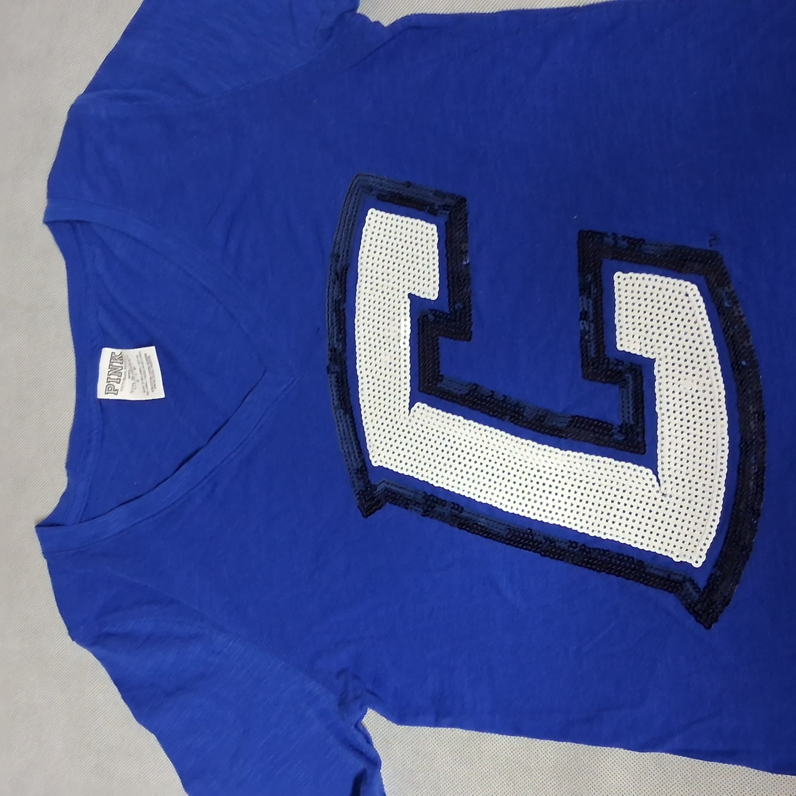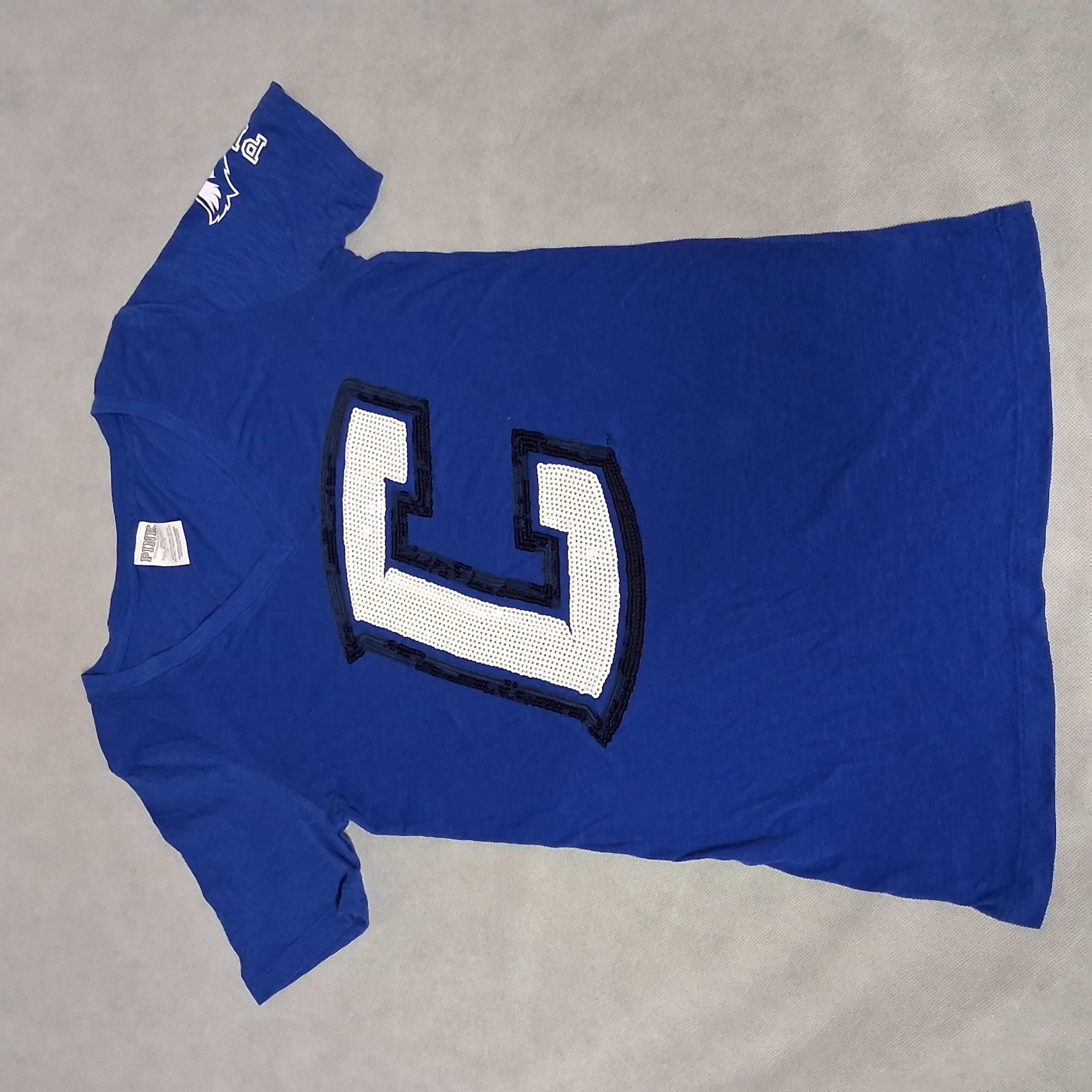 PINK Victoria's Secret Creighton Blue Jays T-Shirt Small Blue Sequins C Logo