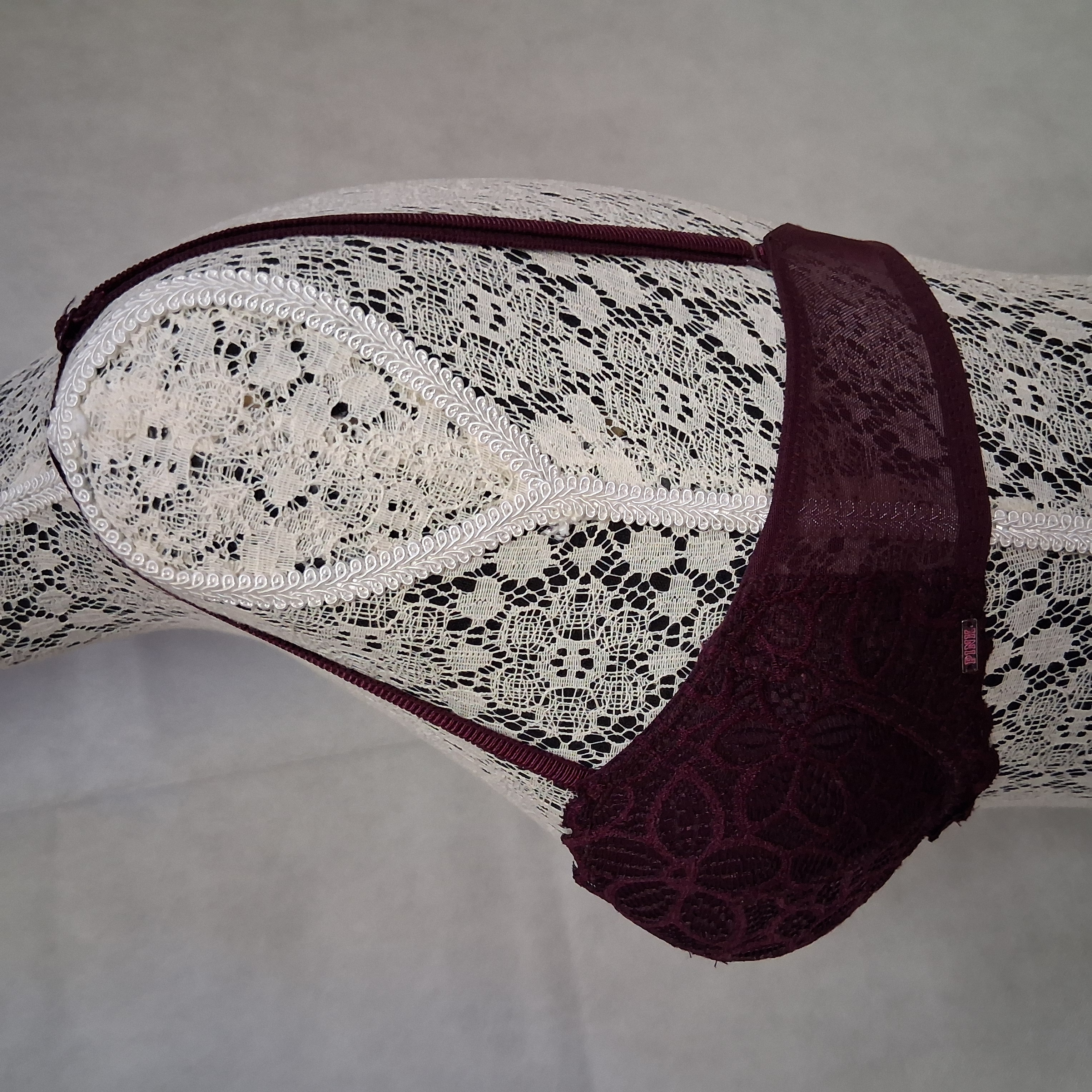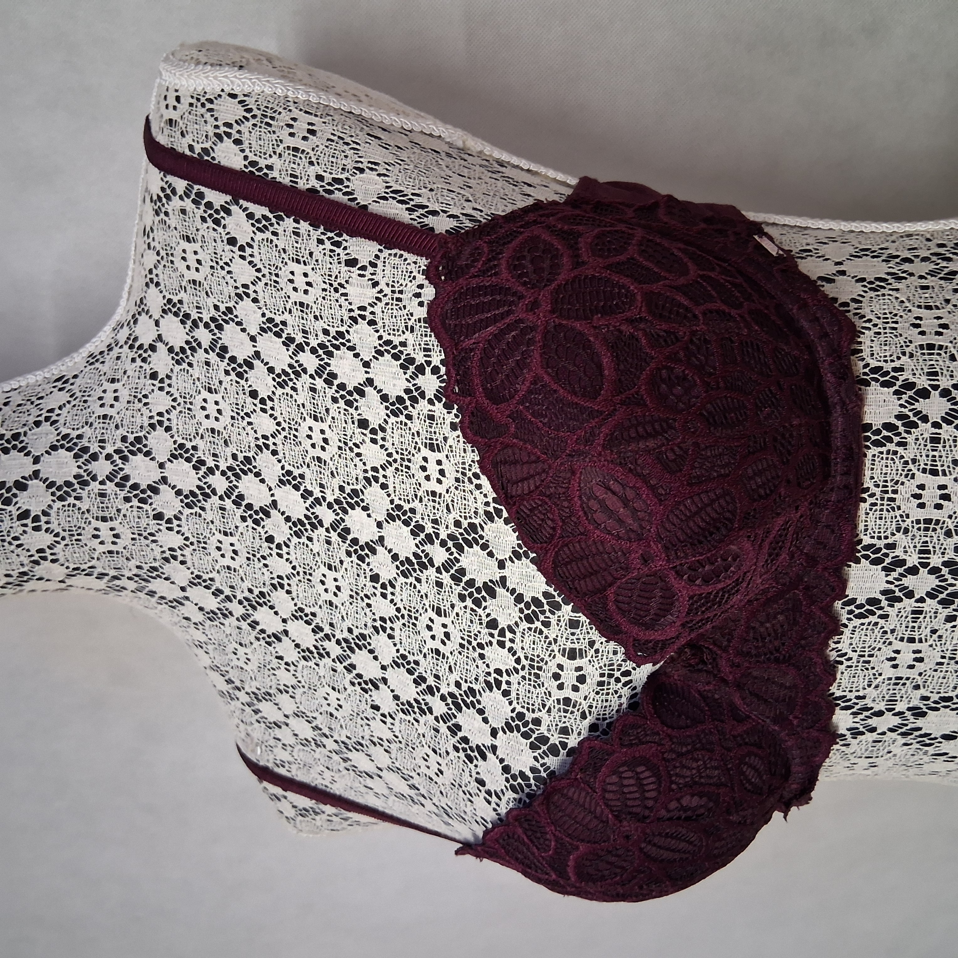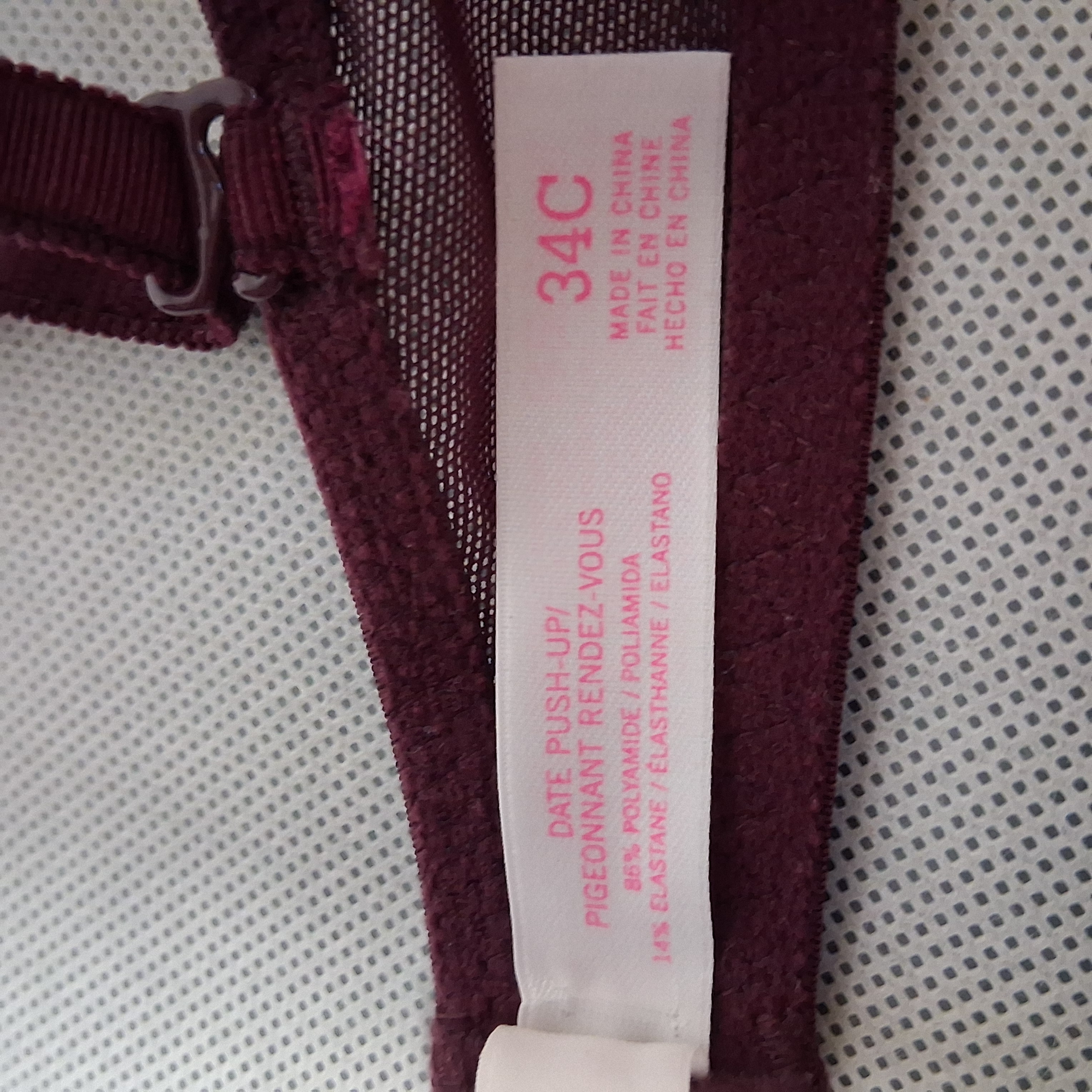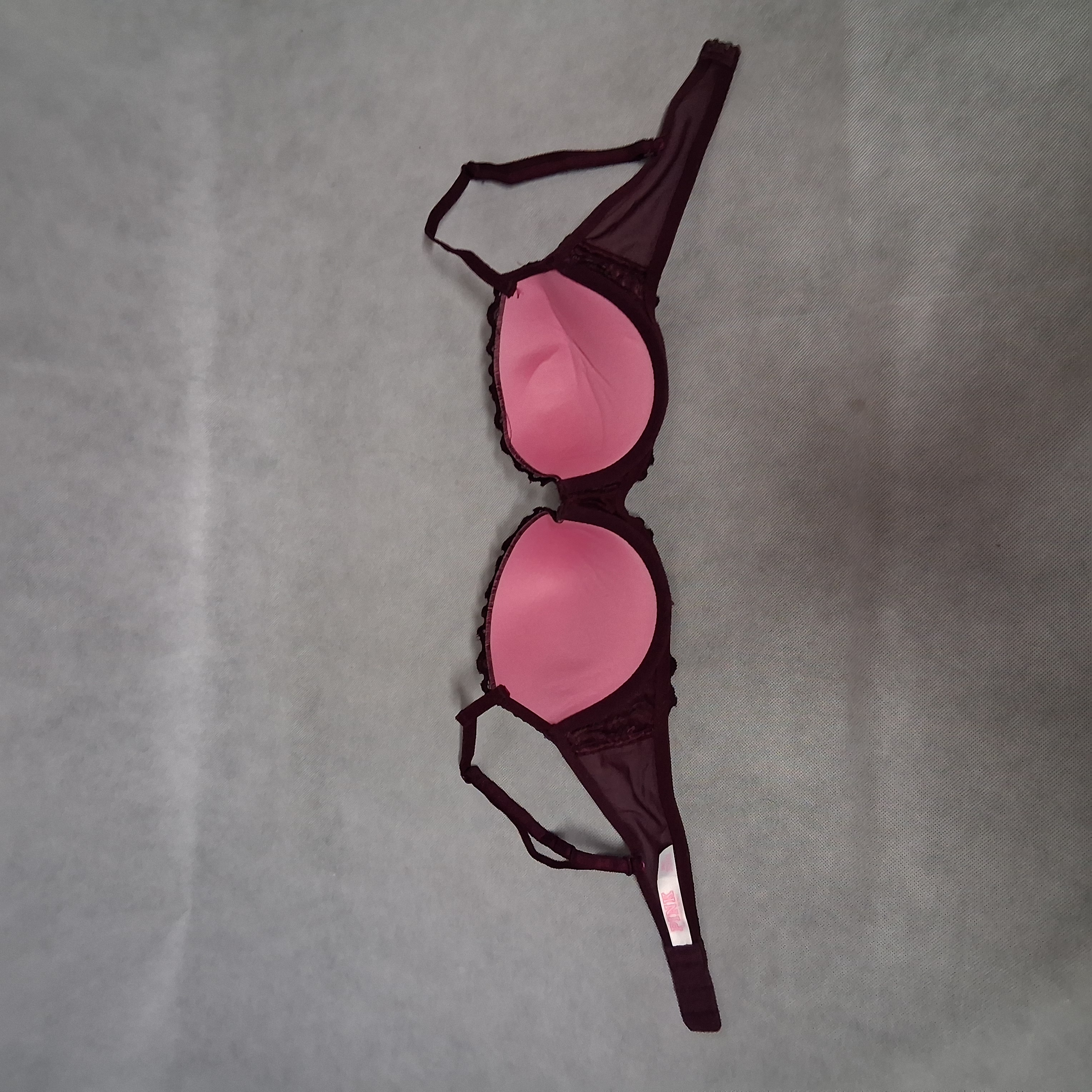 PINK Victoria's Secret Date Push Up Bra 34C Burgundy Lace Padded Cups