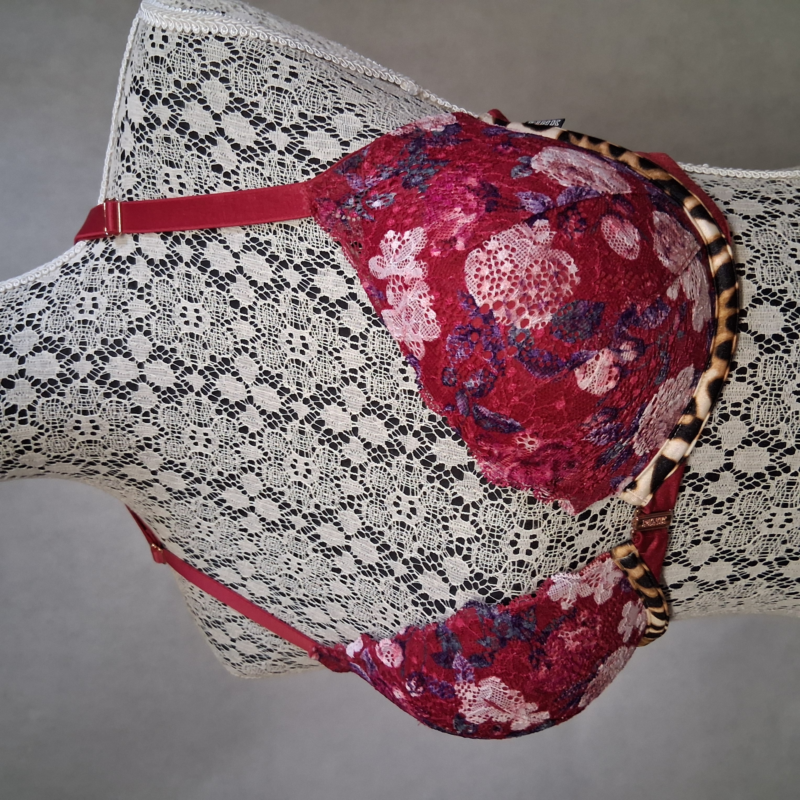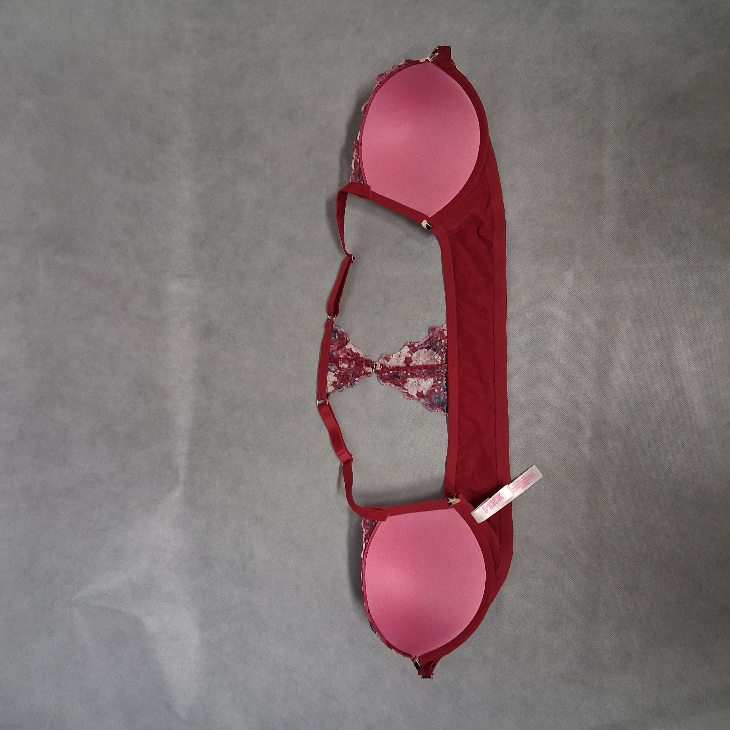 PINK Victoria's Secret Date Push Up Bra 36D Burgundy Floral Racerback Front Hook