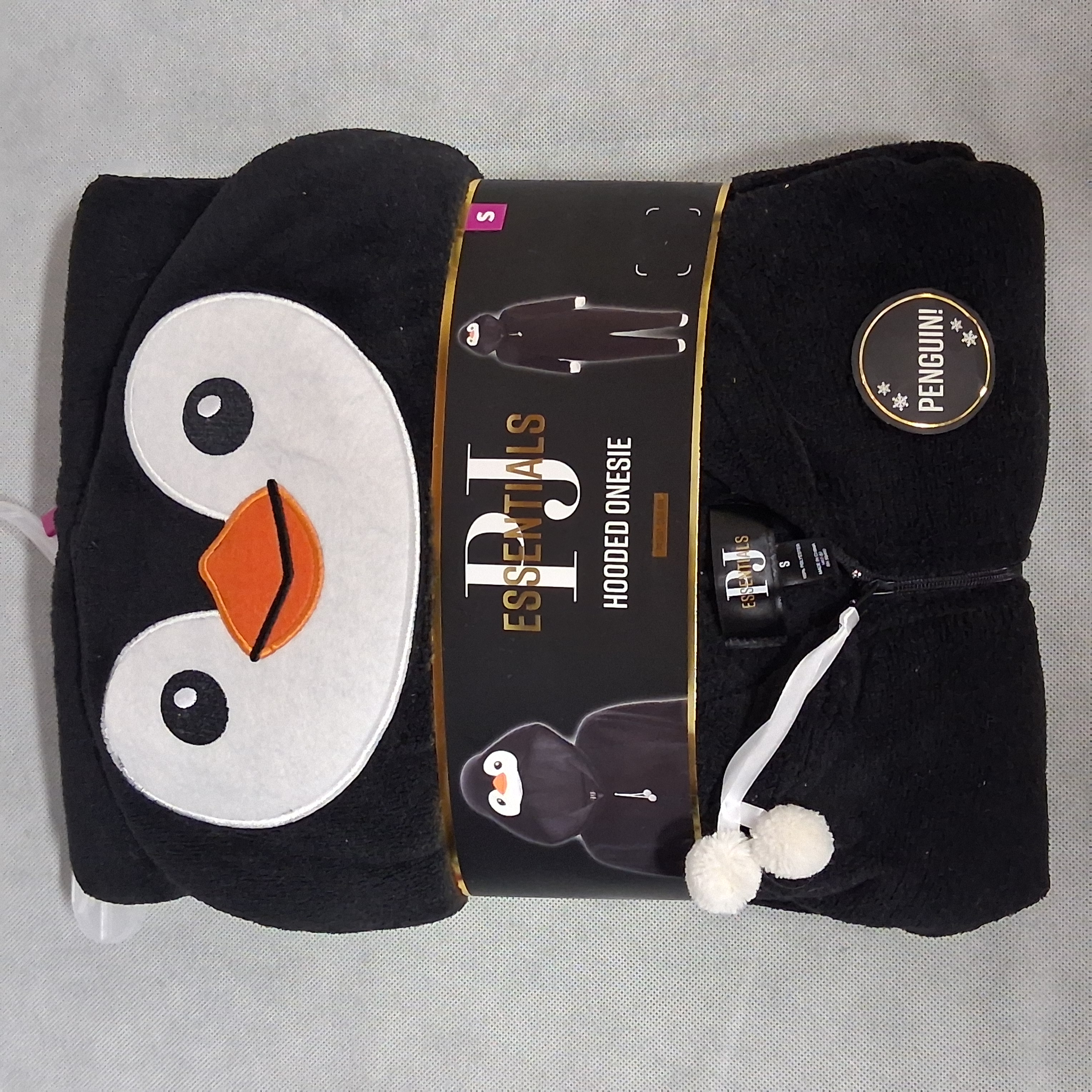 PJ Essentials Hooded Penguin Pajama Small Black Whilte New in Package