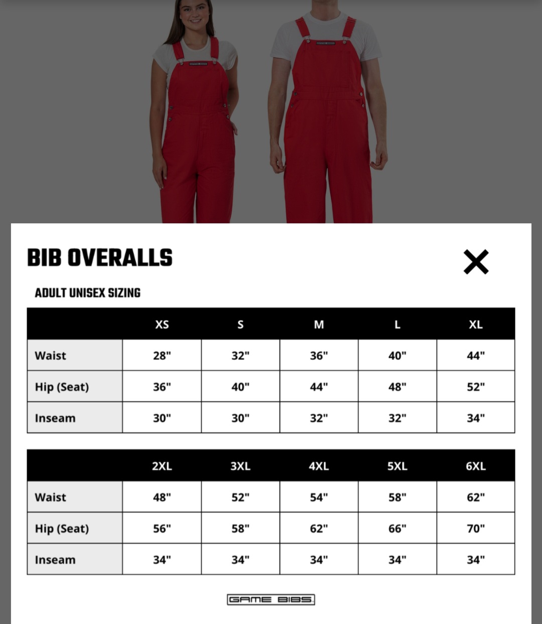 WAIST SIZE IN BIB OVERALLS: