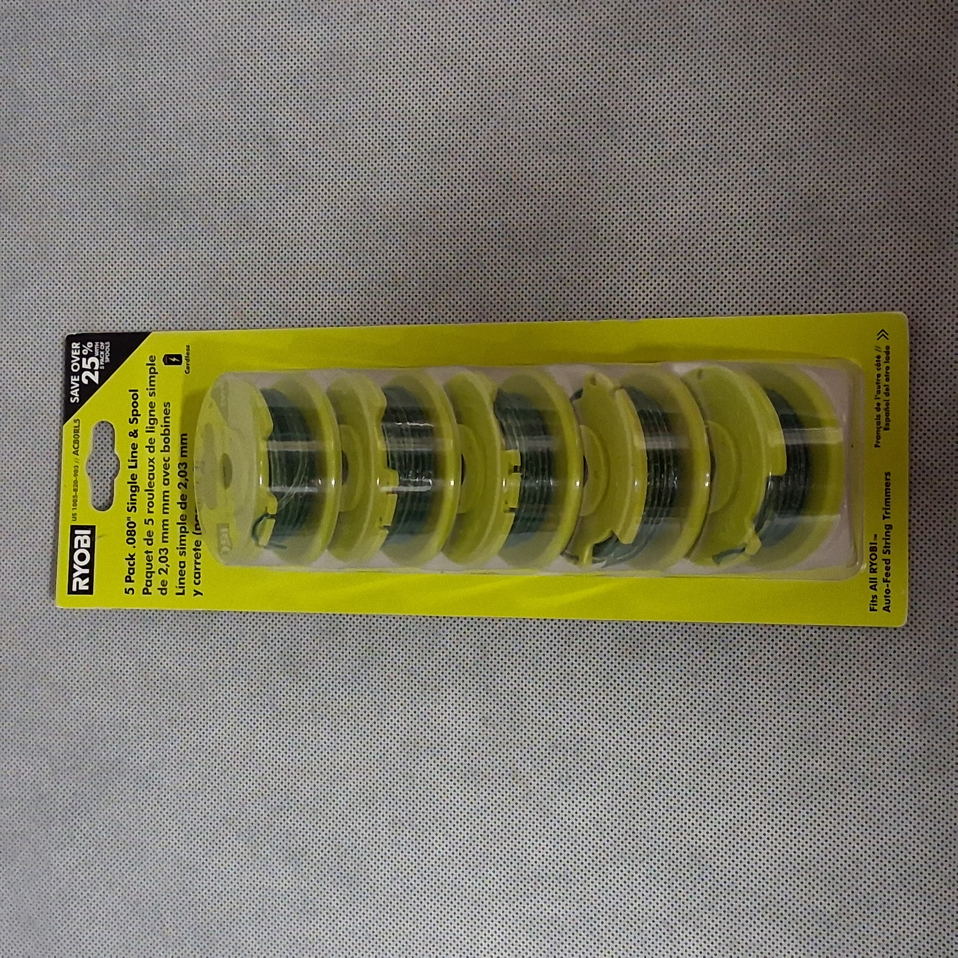 RYOBI .080" Replacement Auto-Feed Line Spools (5-Pack) New Sealed Package