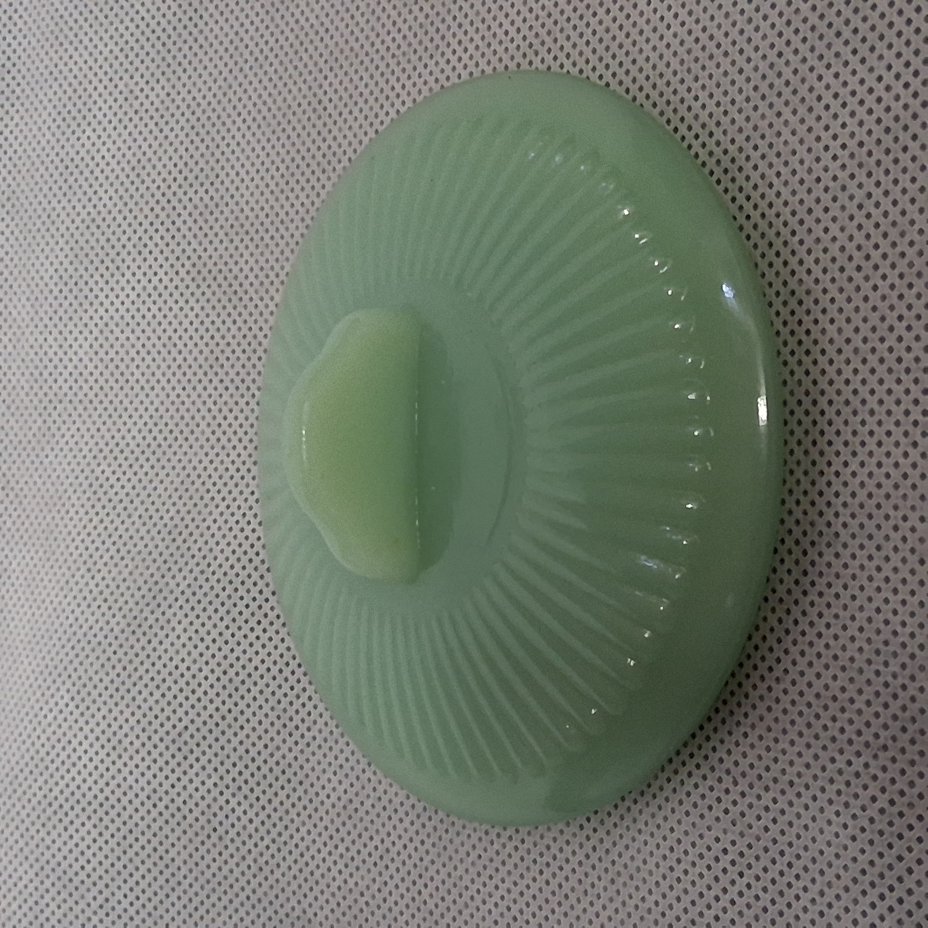 Sugar Bowl Lid Anchor Hocking Fire-King Line Jane Ray Pattern Jadeite Green With Tab Handle Good Cle