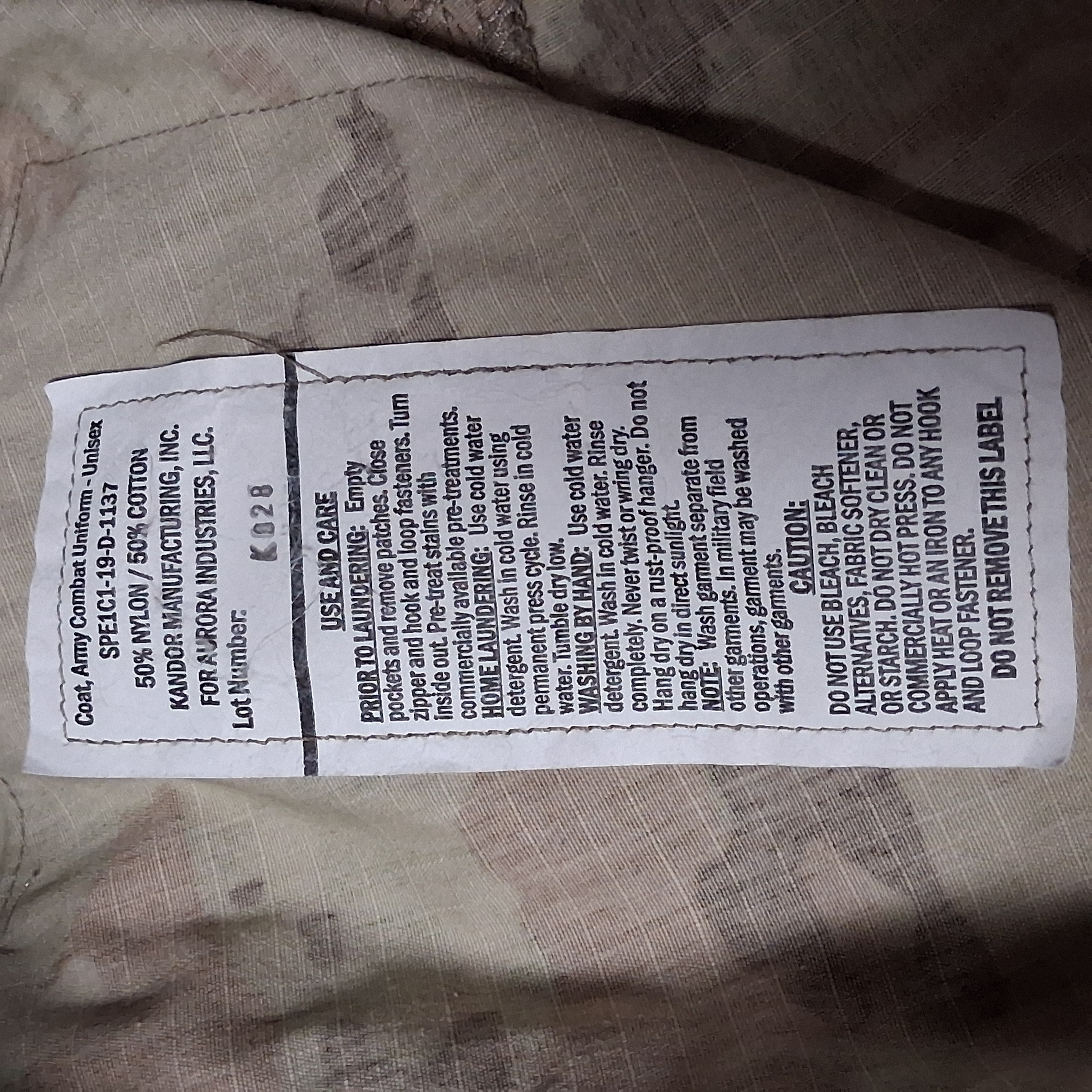US Army Combat Camo Camouflage Coat Large Regular New With Tags 8415-01-623-5552