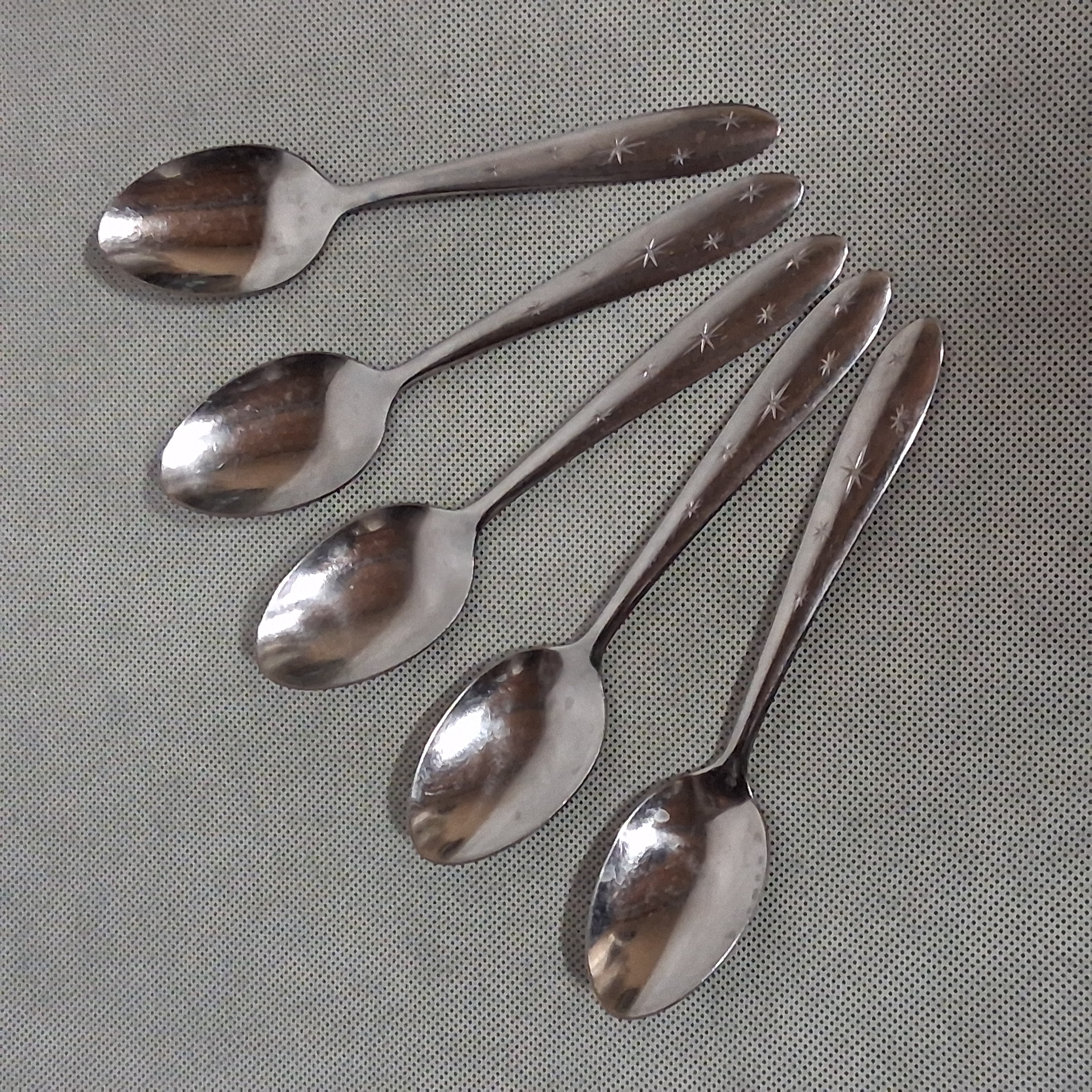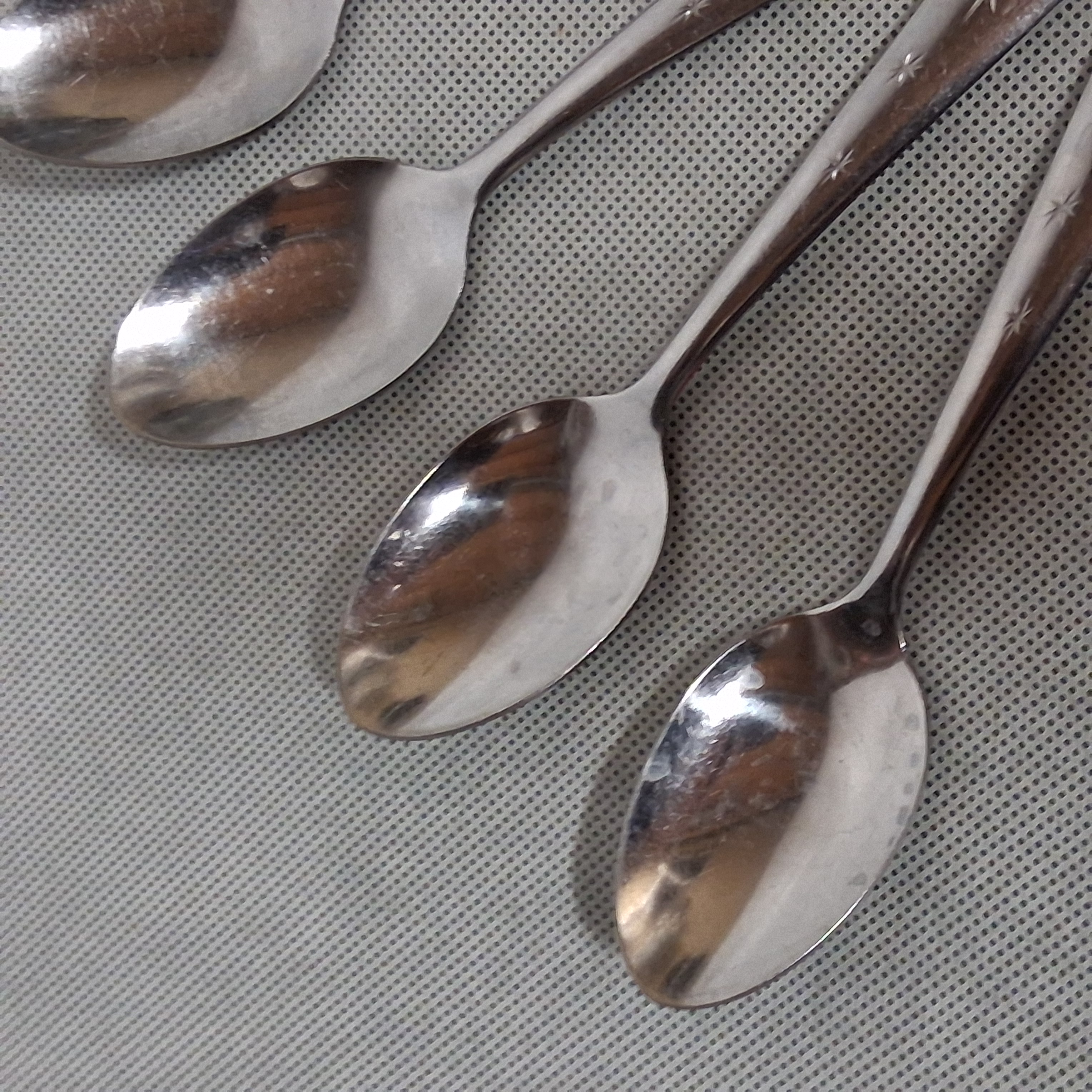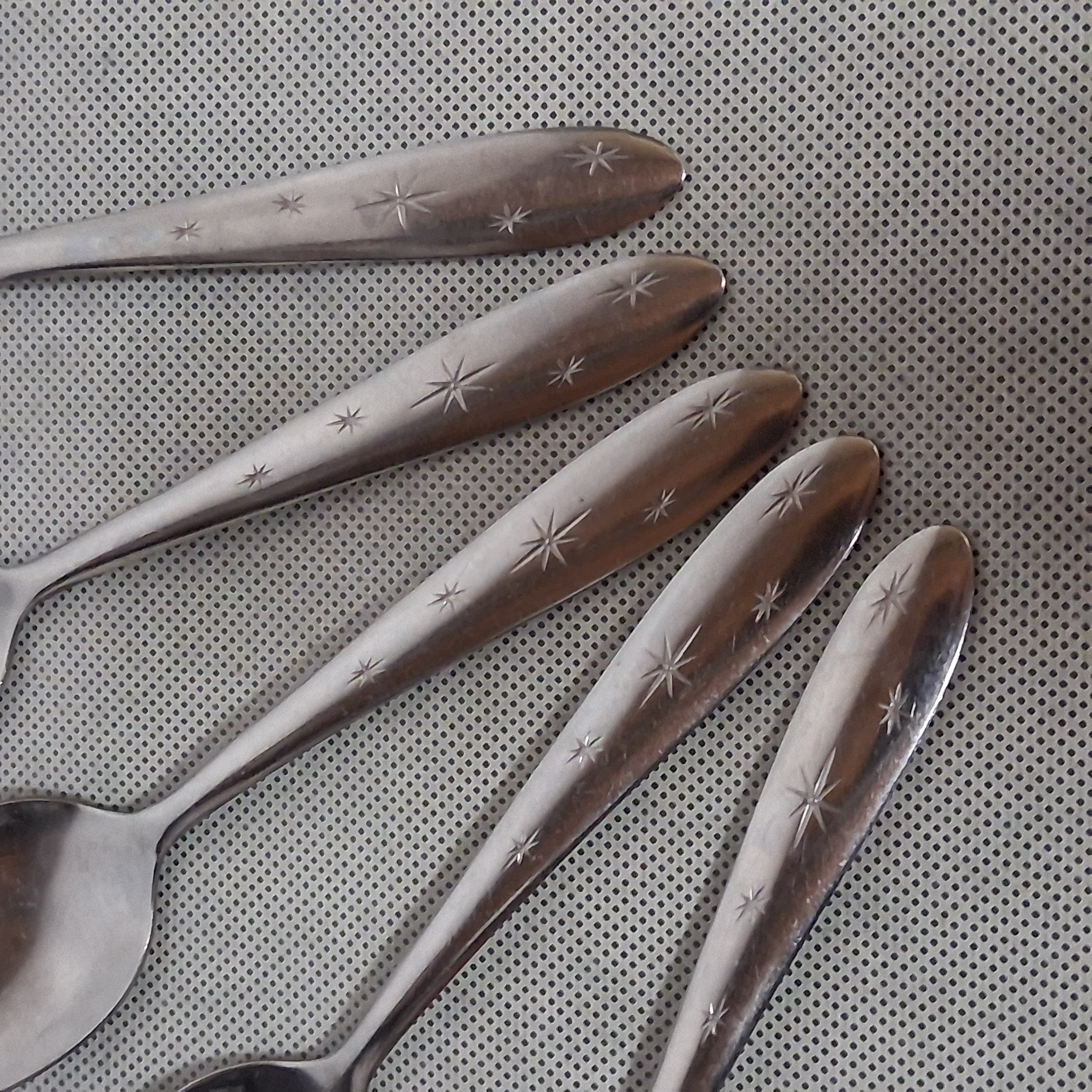 Utica Snow Drop Teaspoons 5 Stainless Steel 6" Atomic Starburst 5 on Handle