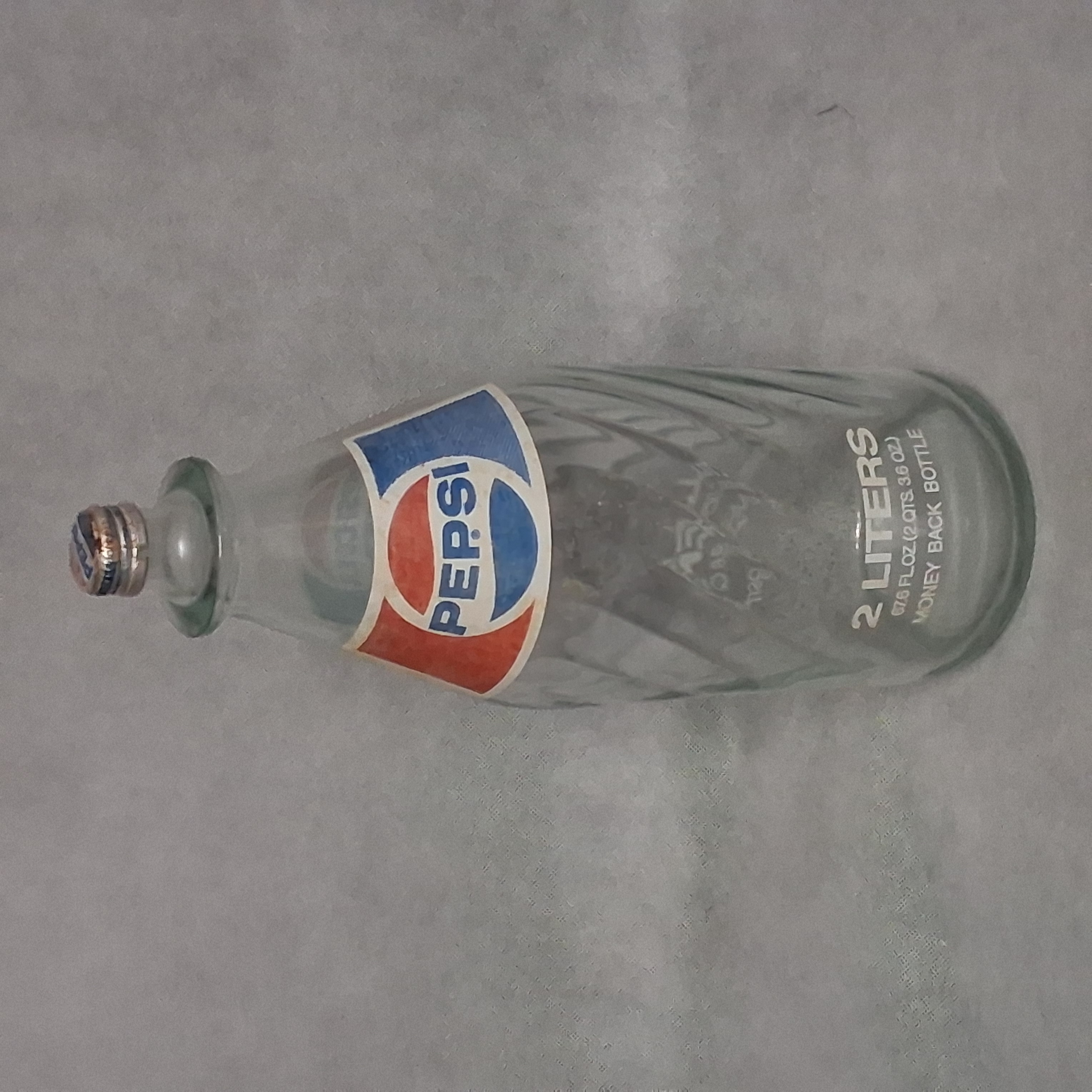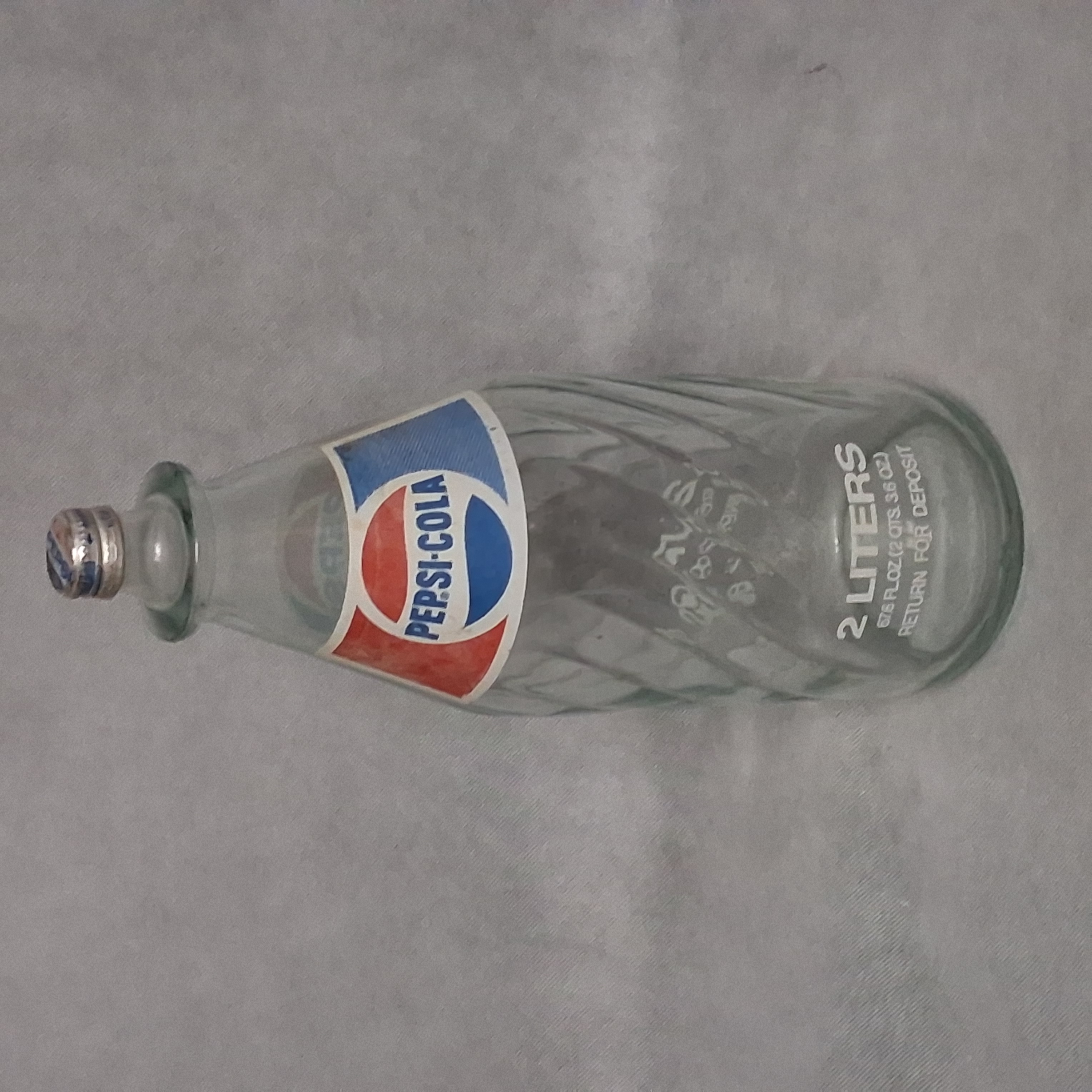 Vintage Pepsi-Cola Spiral Glass Soda Pop Bottle Large 2 Liter With Cap 13 1/2" H