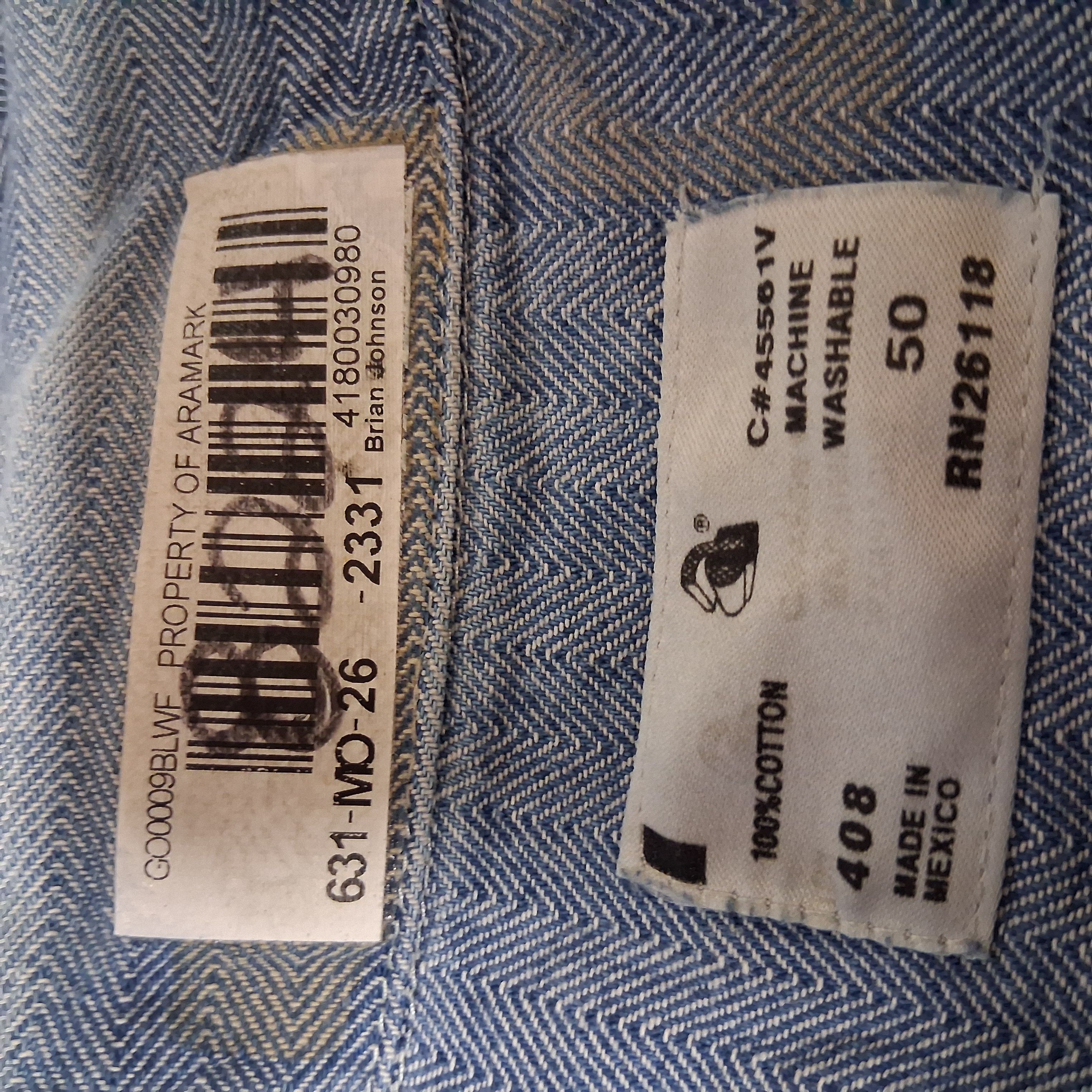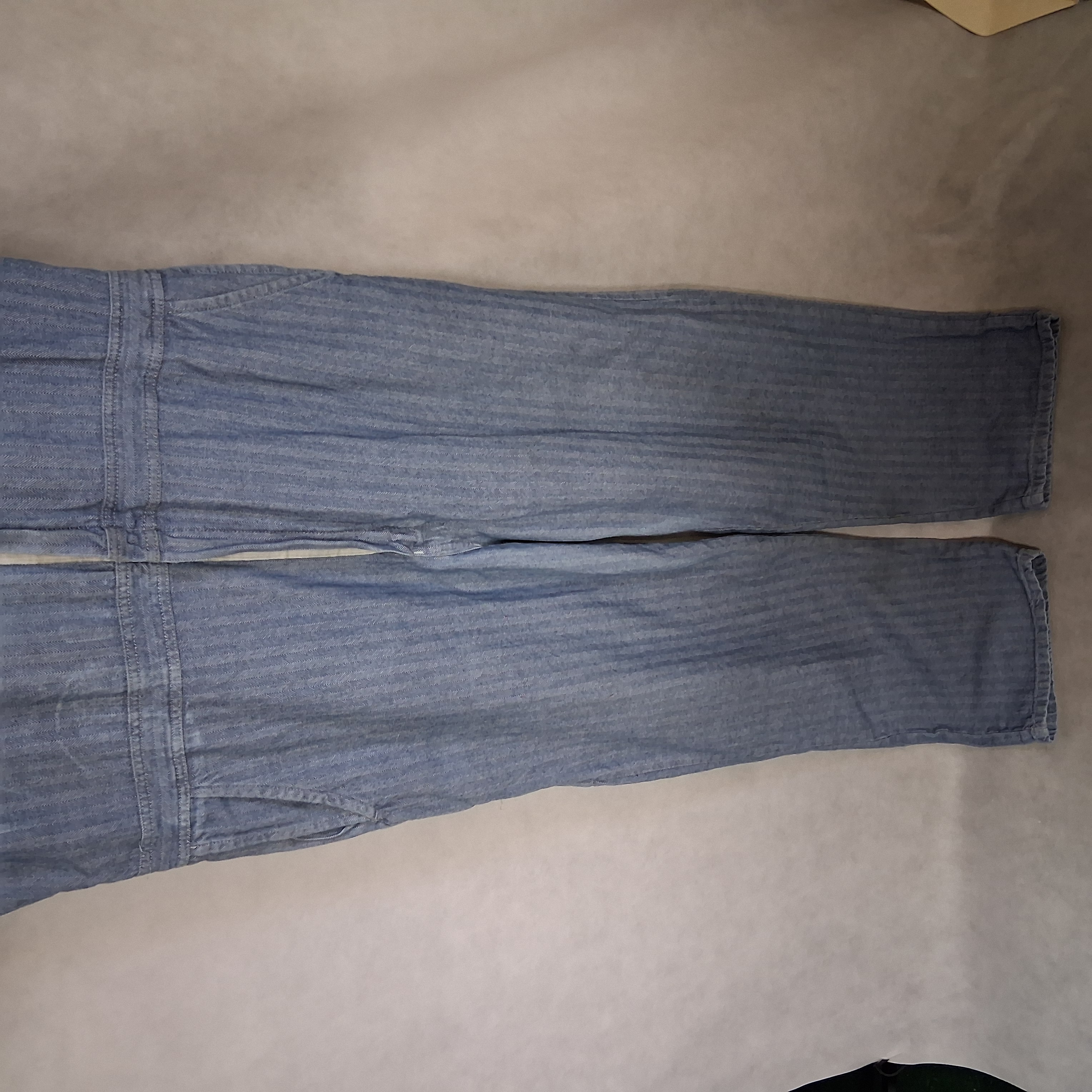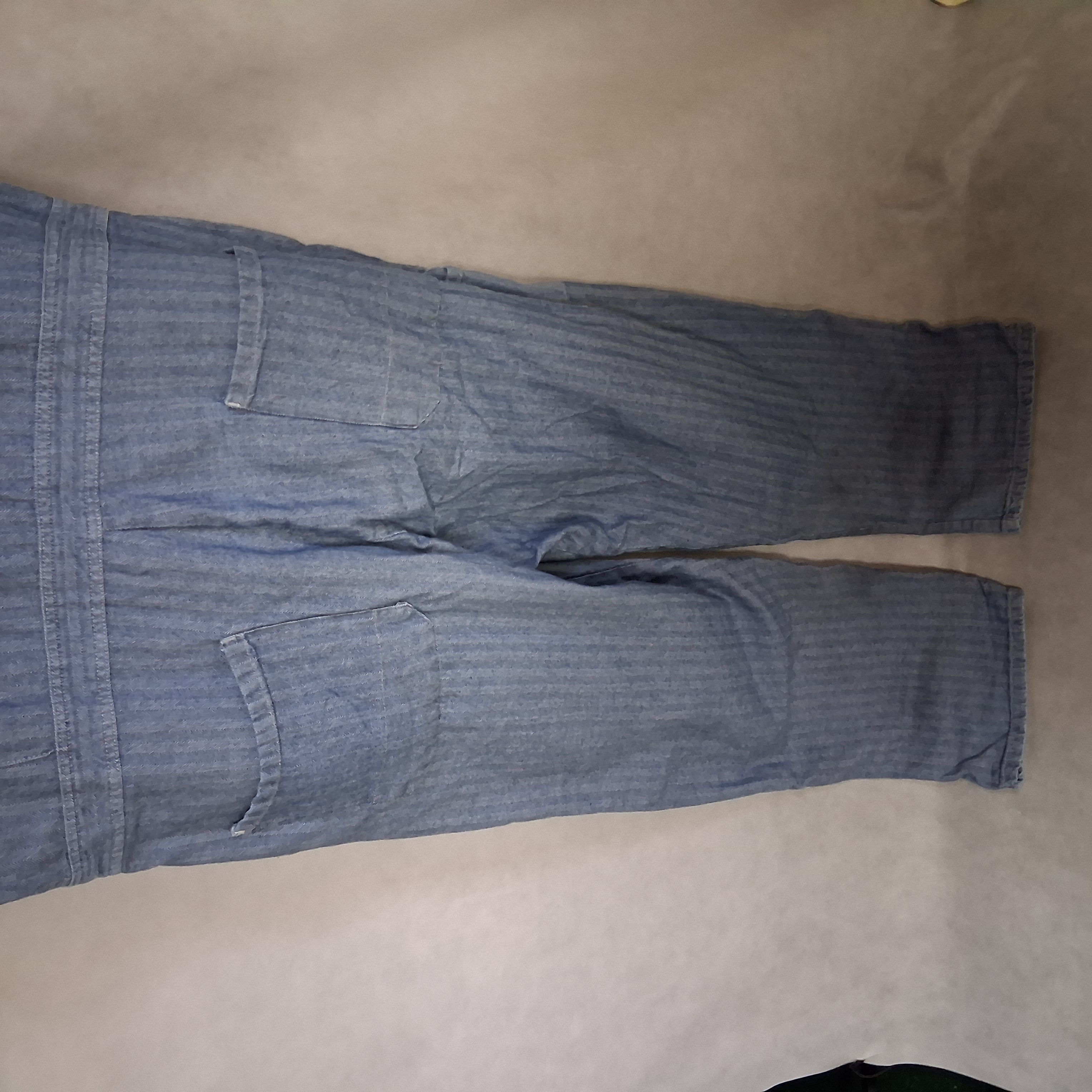 Vtg Aramark Durable Press Overalls Men's 50 Regular Blue White Herringbone Hole