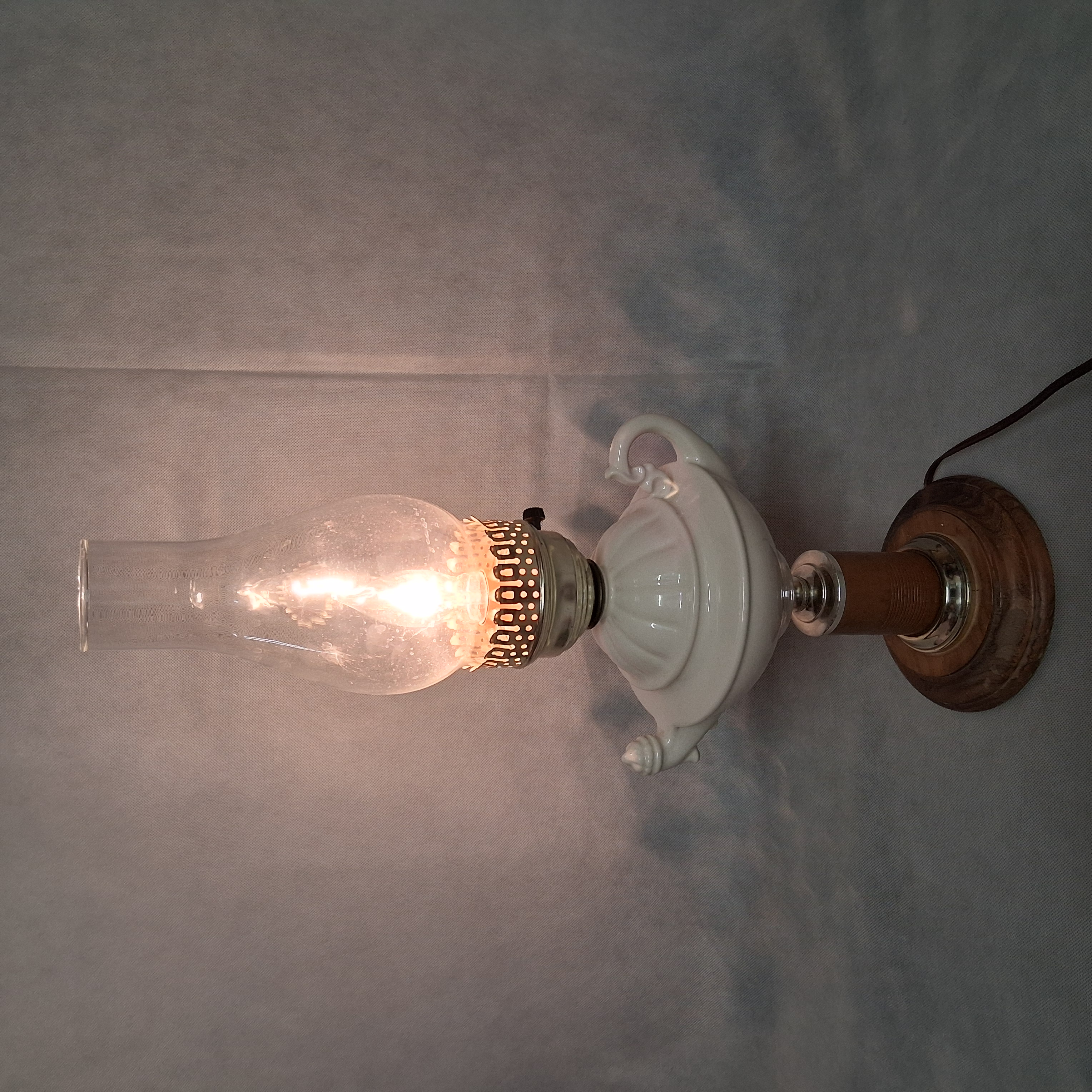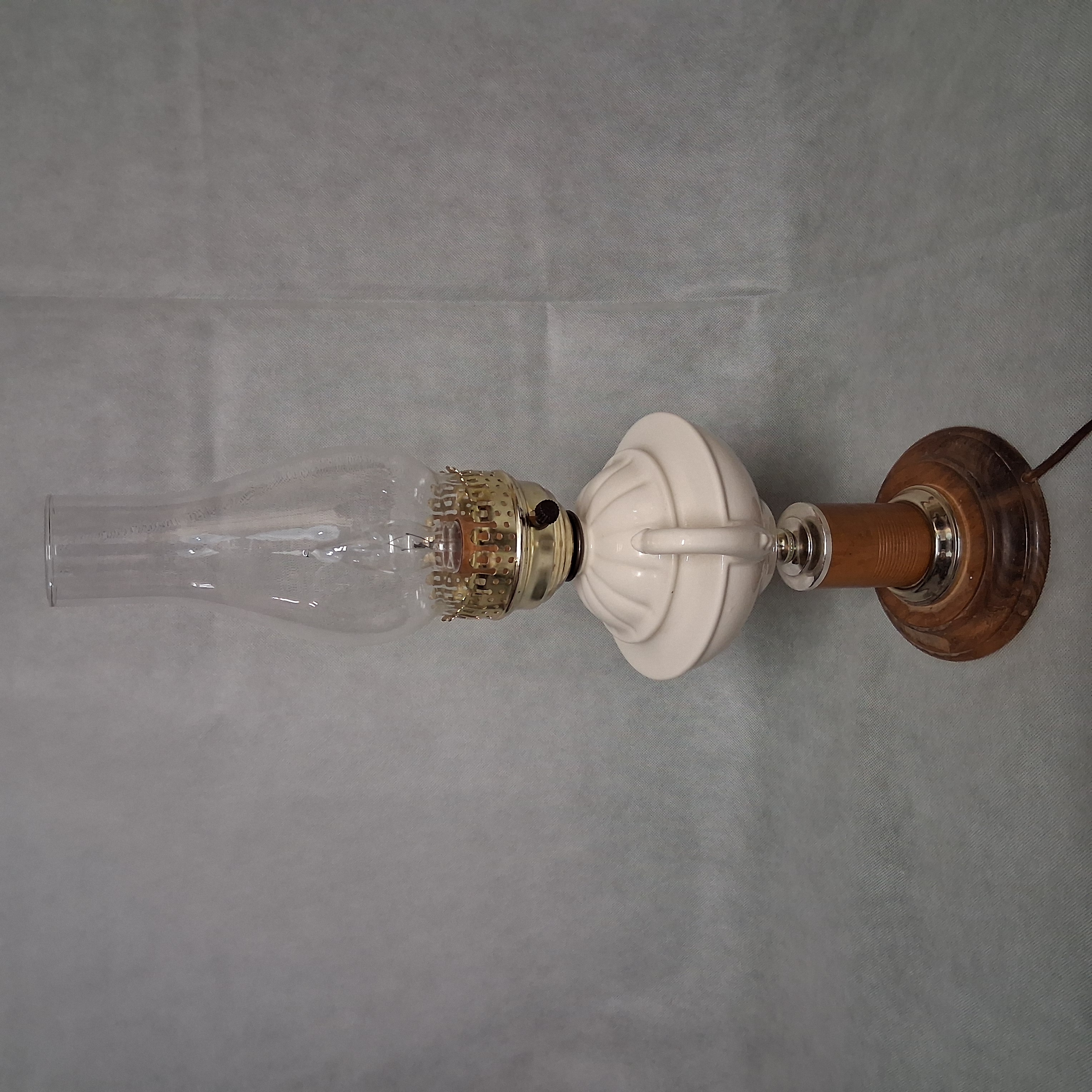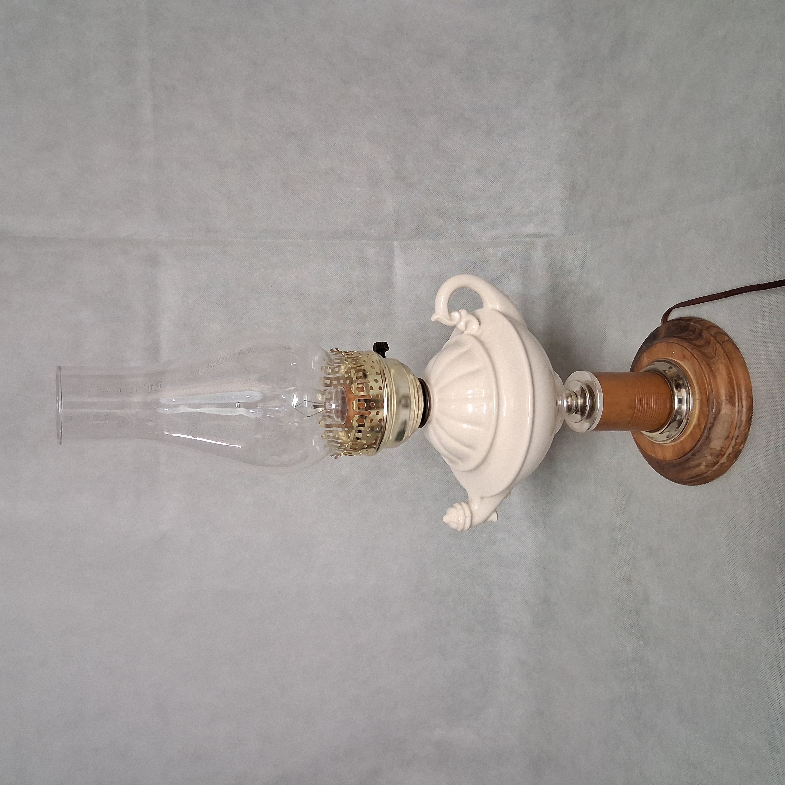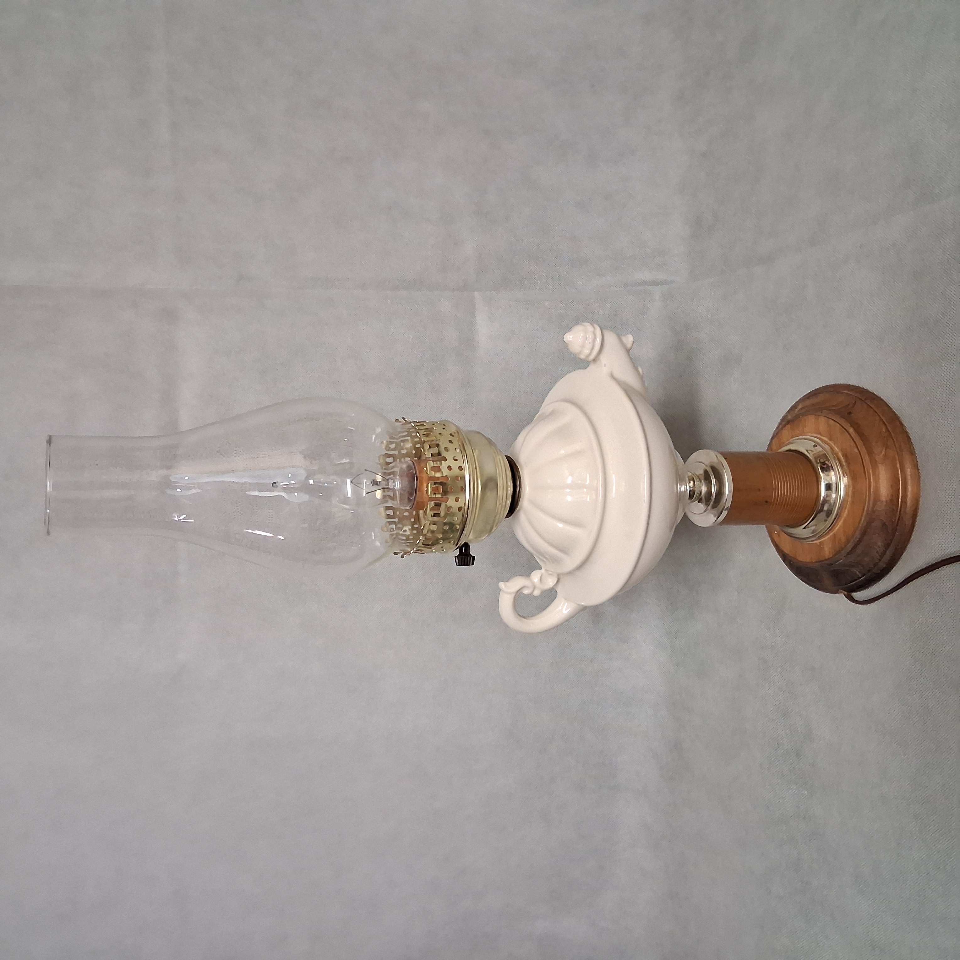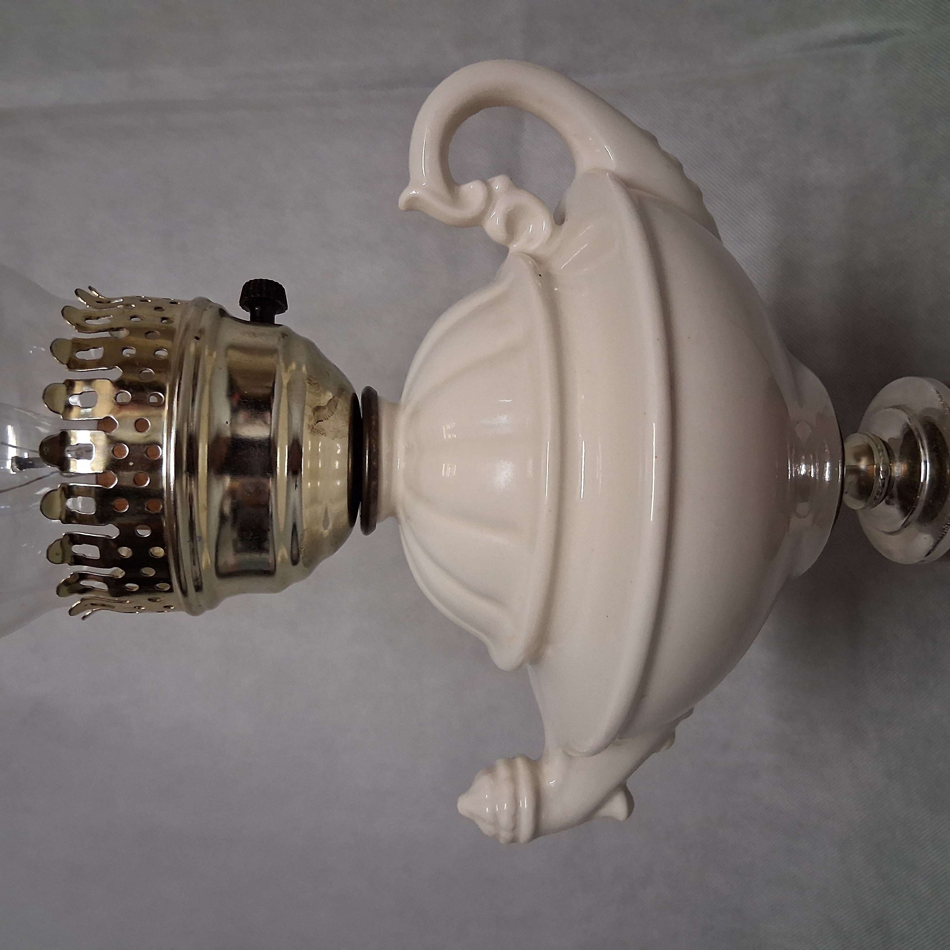 White Ceramic Aladdin Style Table Lamp With Chimney Shade 20.75"