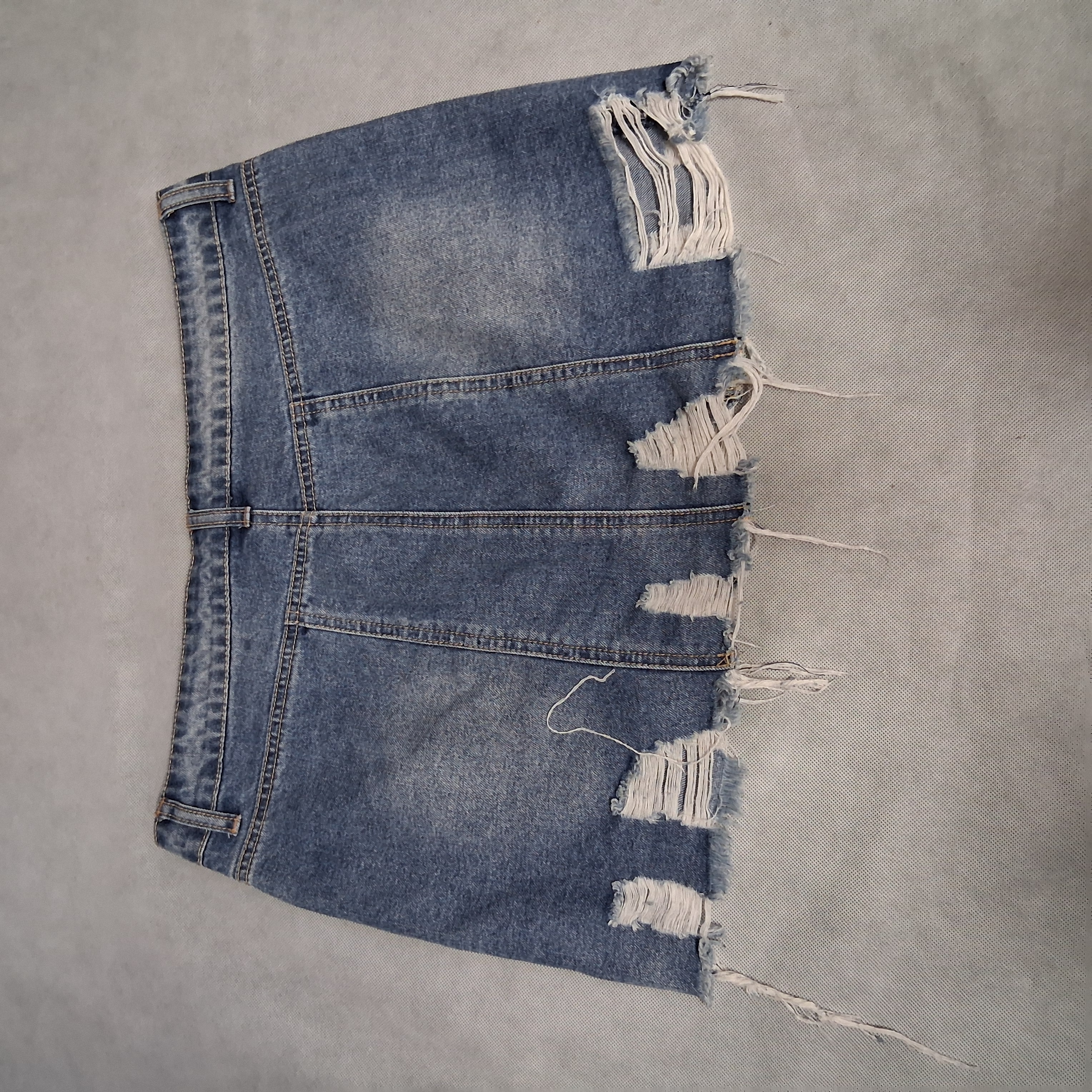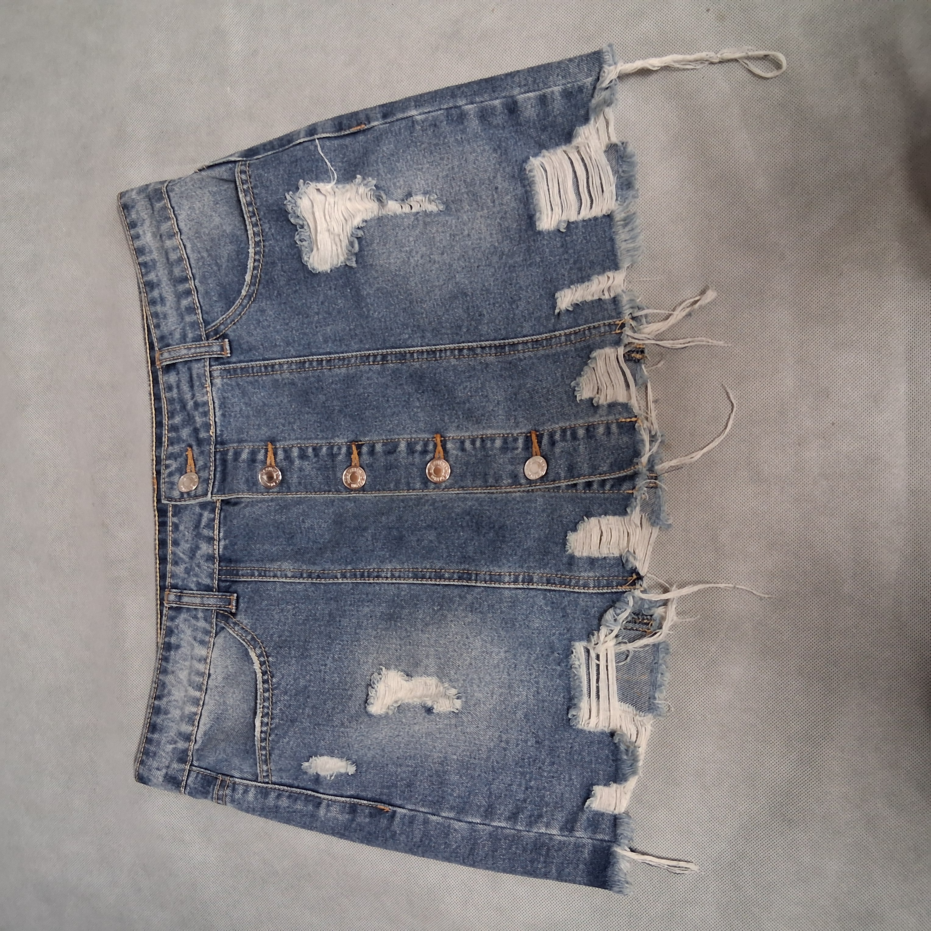 Y2K LIT2 Mini Jean Skirt Large Light Washed Distressed Denim Button Front