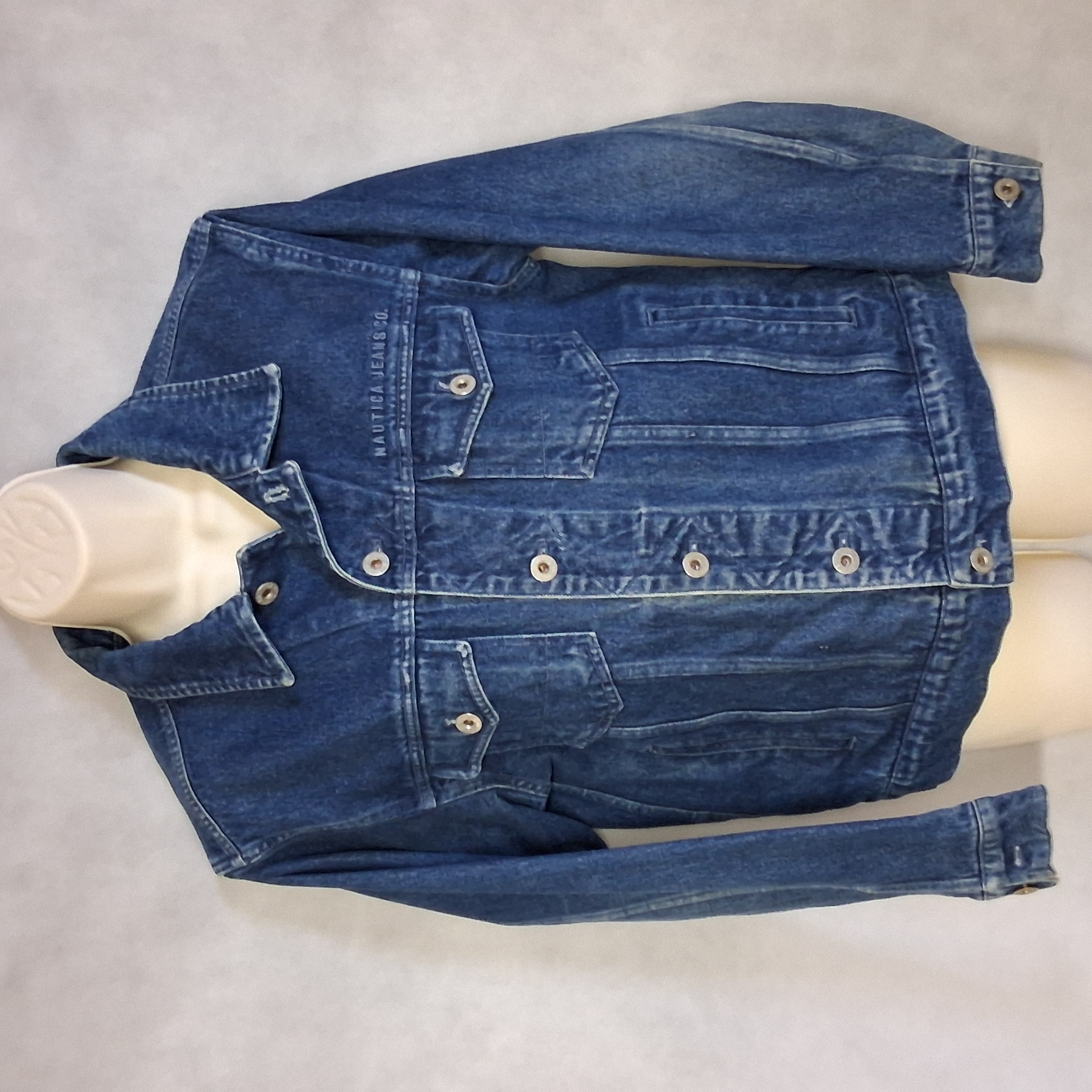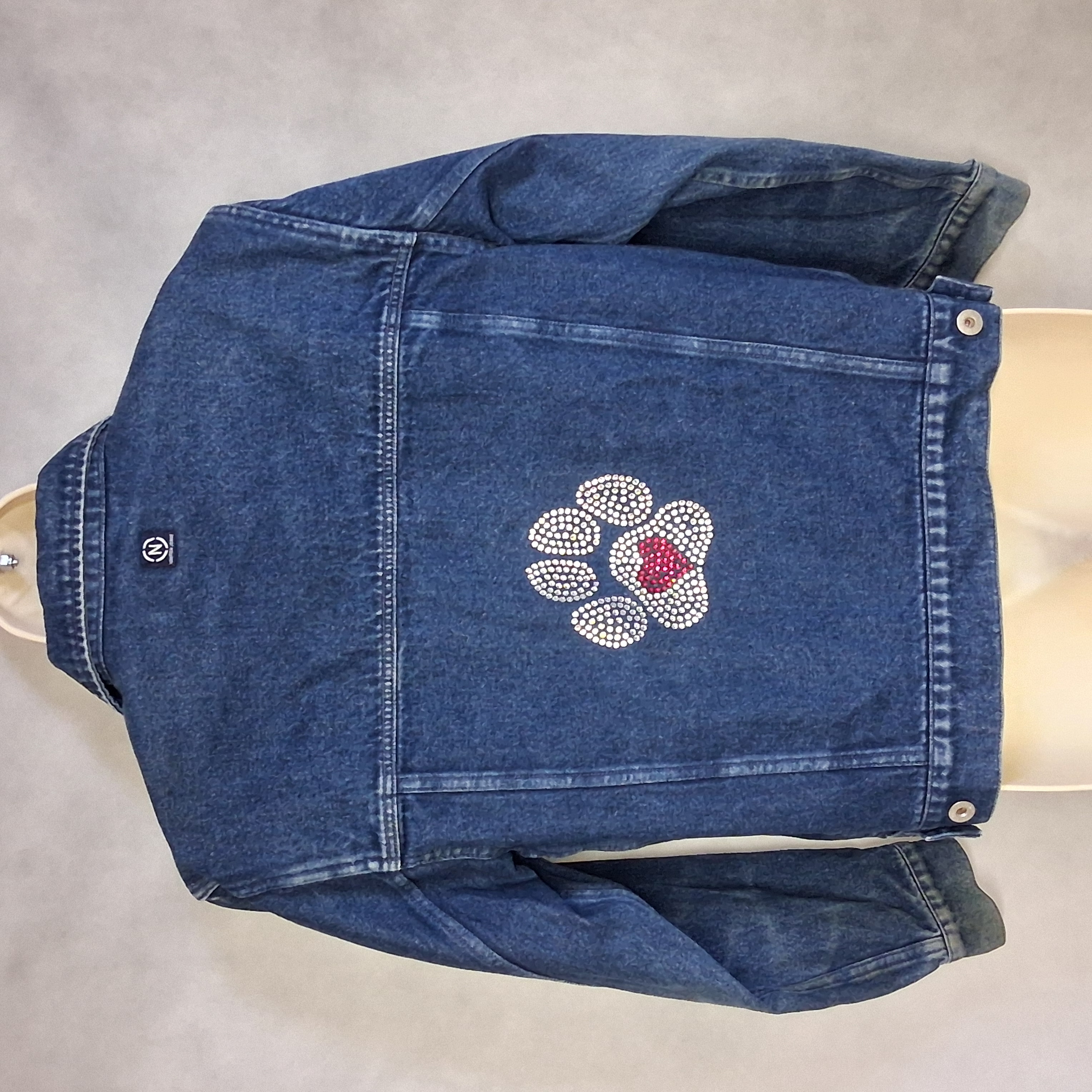 Y2K Nautica Jeans Co Blue Denim Trucker Jacket Women's Medium Rhinestone Paw